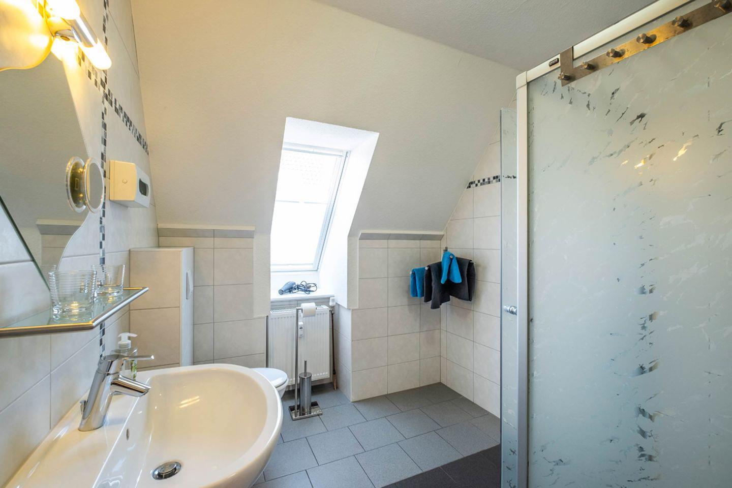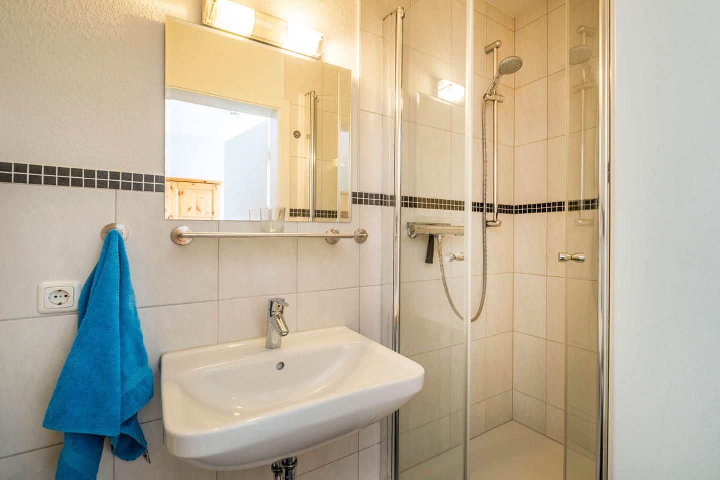 Insgesamt stehen Ihnen vier Zimmer zur Verfügung: Neben den Schlafzimmern gibt es ein großzügiges Wohnzimmer, das mit einer gemütlichen Sofaecke, Sessel, Essbereich und einen Fernsehr zum Verweilen einlädt. Die bodengleiche Dusche in einem der beiden modernen Badezimmer unterstreicht den hohen Komfortstandard. Für den besonderen Start in den Tag oder entspannte Abendstunden bietet sich der eigene Balkon an, auf dem Sie die frische Nordseeluft genießen können.