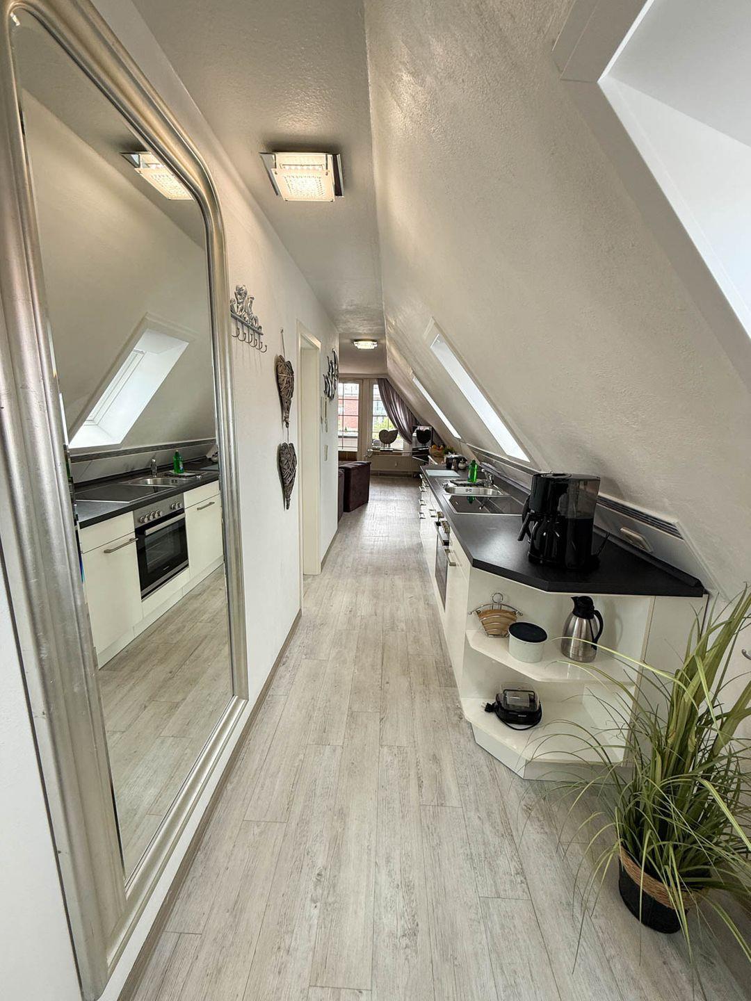 Die Ferienunterkunft „An de Warft Wohnung 5“ befindet sich in attraktiver Lage in Büsum und bietet auf 40 m² eine geschmackvoll gestaltete Umgebung für bis zu zwei Personen. Die Wohnung liegt im 2. Stock eines zweistöckigen Hauses und zeichnet sich durch eine durchdachte Raumaufteilung mit einem separaten Schlafzimmer, einem Badezimmer und einem hellen, offenen Wohnbereich aus.