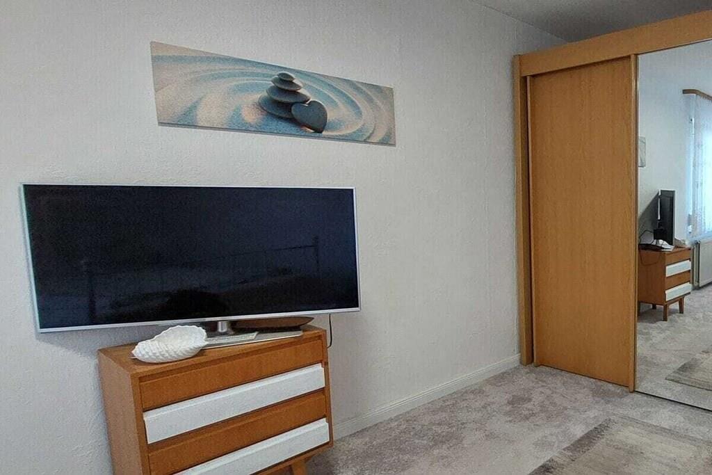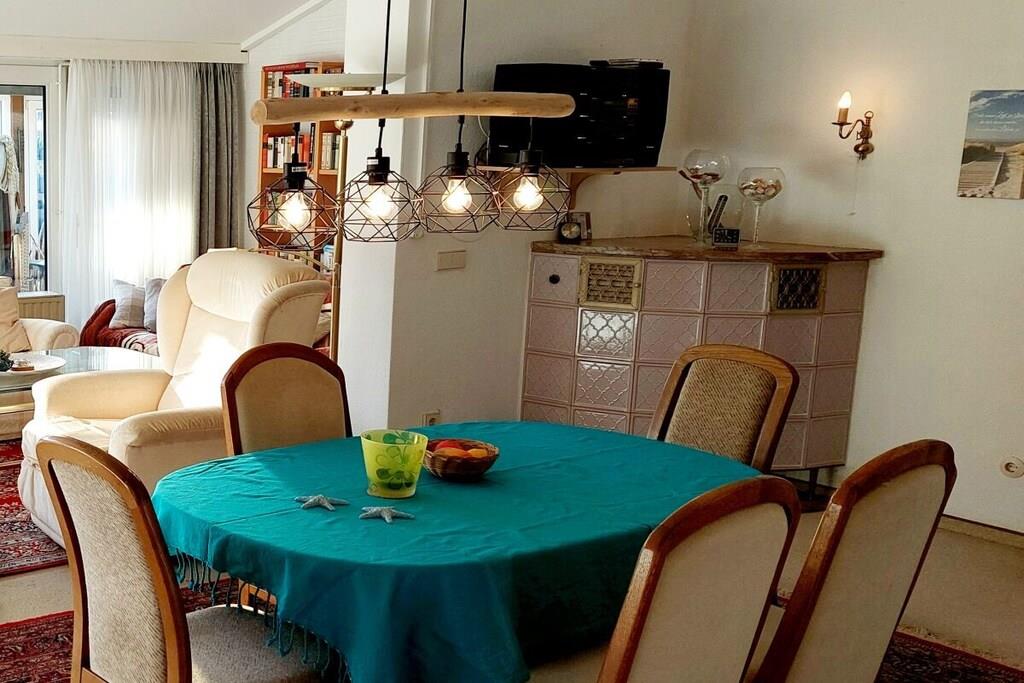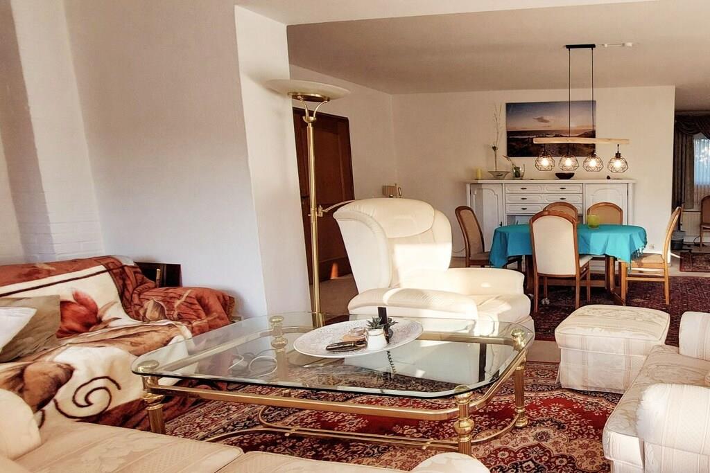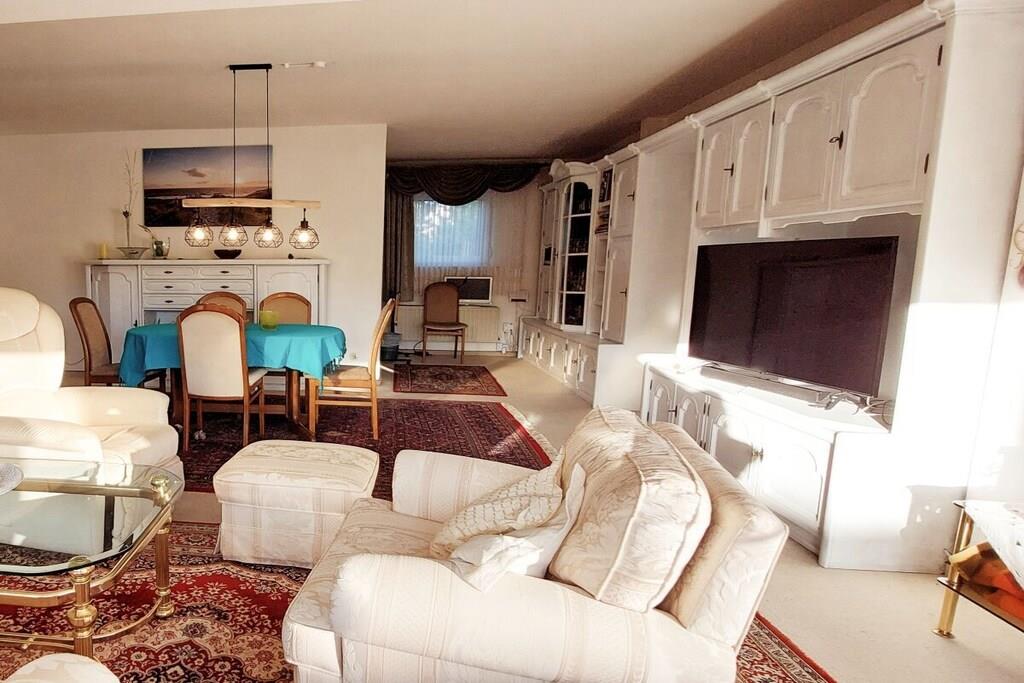 Tilbring din ferie i vores rolige, rummelige ferielejlighed med 3 soveværelser til 5 personer med komfortable madrasser, tilgængelig for kørestolsbrugere, 2 badeværelser (1 badeværelse med badekar, 1 brusebad), køkken med komfur, ovn, mikrobølgeovn, køleskab med fryser, vandkoger, kaffemaskine, brødrister, blender osv. Kosteskab med vaskemaskine Indbygget pengeskab, masser af skabsplads og opbevaringsplads Stue med 3-personers + 2-personers sofa, lænestol, 1 elektrisk TV-lænestol, Smart TV, Wi-Fi, stereoanlæg, bogreoler, stor, indbydende spiseplads Rummelig overdækket, møbleret terrasse, smuk, grøn, blomstrende, hyggelig have med privatliv, kulgrill, tørresnor/stativ Håndklæder, sengelinned fås efter anmodning, nem parkering Minimumspris EURO715