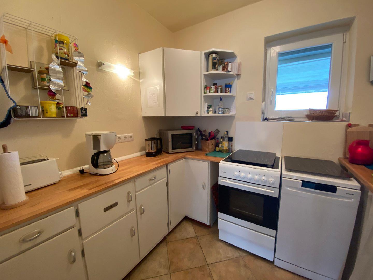Die vier gemütlichen Schlafzimmer sind mit Teppich ausgelegt und schaffen eine behagliche Atmosphäre für erholsame Nächte. Zusätzlich stehen zwei moderne Badezimmer zur Verfügung, für alle Gäste. Eines davon verfügt über ein Bidet. In der offen gestalteten Küche, die mit modernen Geräten wie Herd mit Backofen, Ceranfeld und Geschirrspüler ausgestattet ist. Der angrenzende Essbereich lädt zu gemeinsamen Mahlzeiten ein, während das Wohnzimmer mit einer komfortablen Sofaecke für entspannende Abende sorgt.