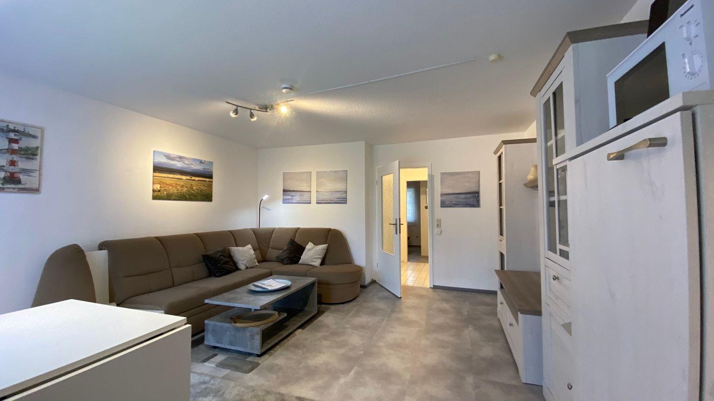 Die hier angebotene Ferienwohnung Nr. 3 befindet sich im Erdgeschoss. Sie hat eine Gesamtwohnfläche von ca. 46 qm und besteht aus Wohnzimmer mit kompletter Küchenzeile