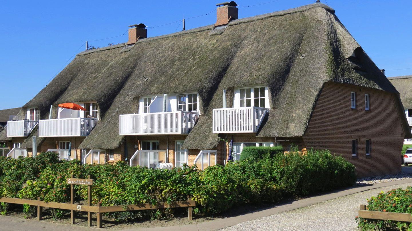 Das "Appartementhaus Seeschlösschen" strahlt durch seine Bauweise und das hohe Reetdach einen eigenen Charme aus.Bis zum Badestrand Büsumer-Deichhausen sind es ca. 80 m.