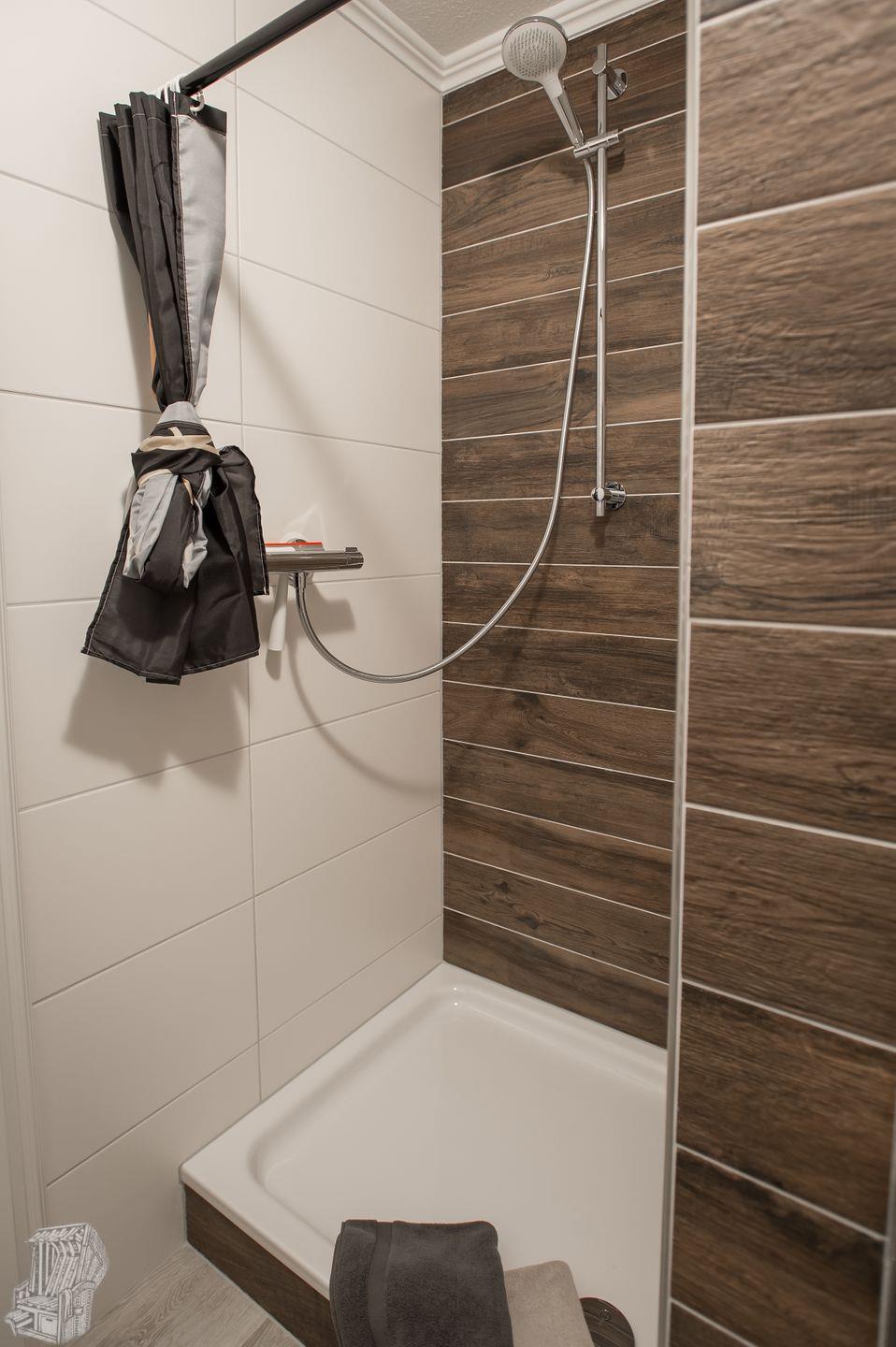 Diese lichtdurchflutete Ferienwohnung besteht aus drei Schlafzimmern, die mit einem warmen Vinylboden ausgestattet sind. Sie bietet Ihnen einen ruhigen Schlaf, während die Aussicht auf die umliegende Landschaft Ihnen eine besondere Verbindung zur Natur ermöglicht. Die moderne Dusche im Badezimmer ist bodengleich und sorgt für einen angenehmen Start in den Tag.