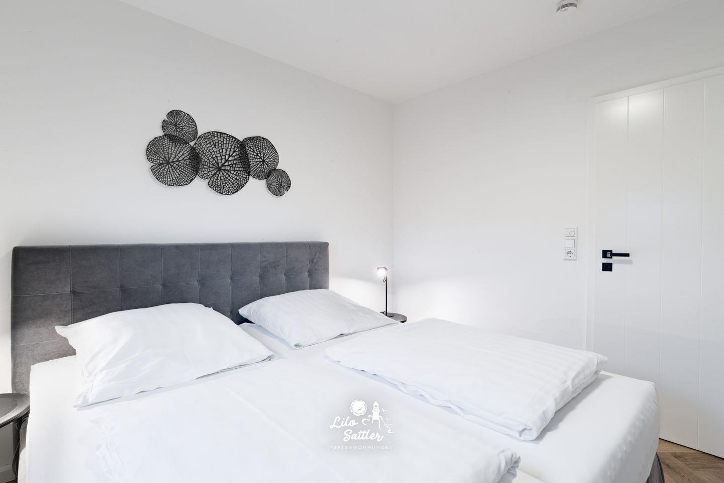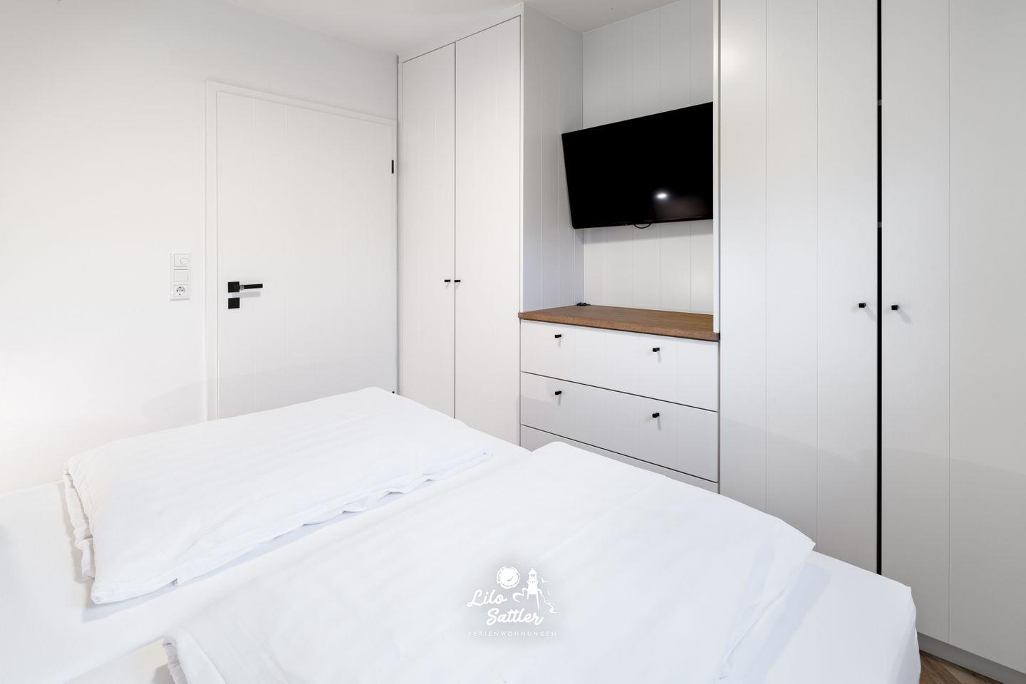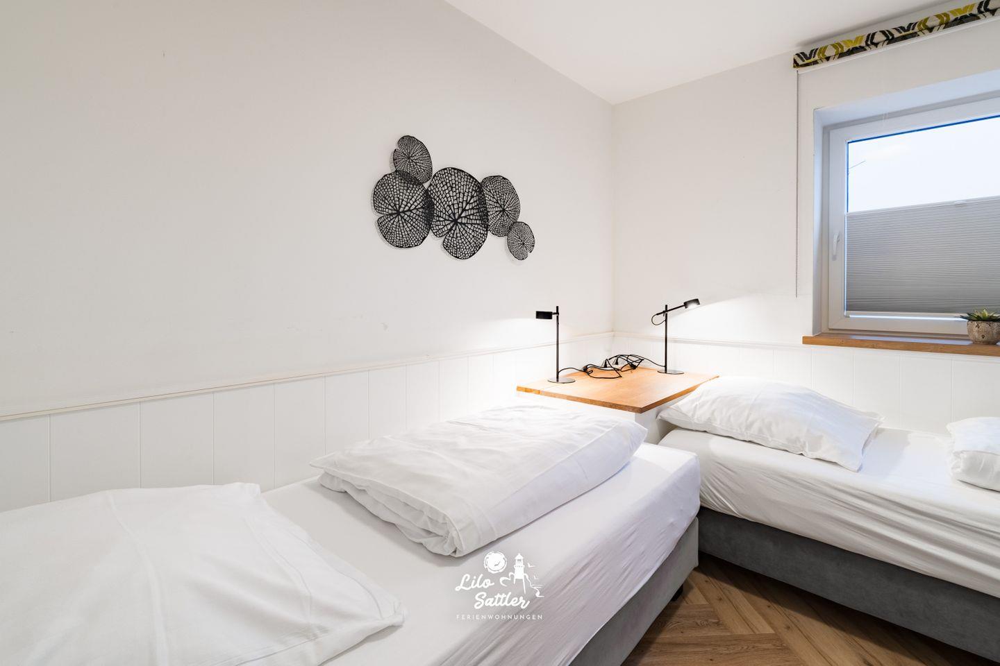 2 Einzelbetten 0,90m breit, Nachttisch, Lampen, Verdunkelungsmöglichkeit, eingebauter Kleiderschrank, Flachbild-Smat-TV,
