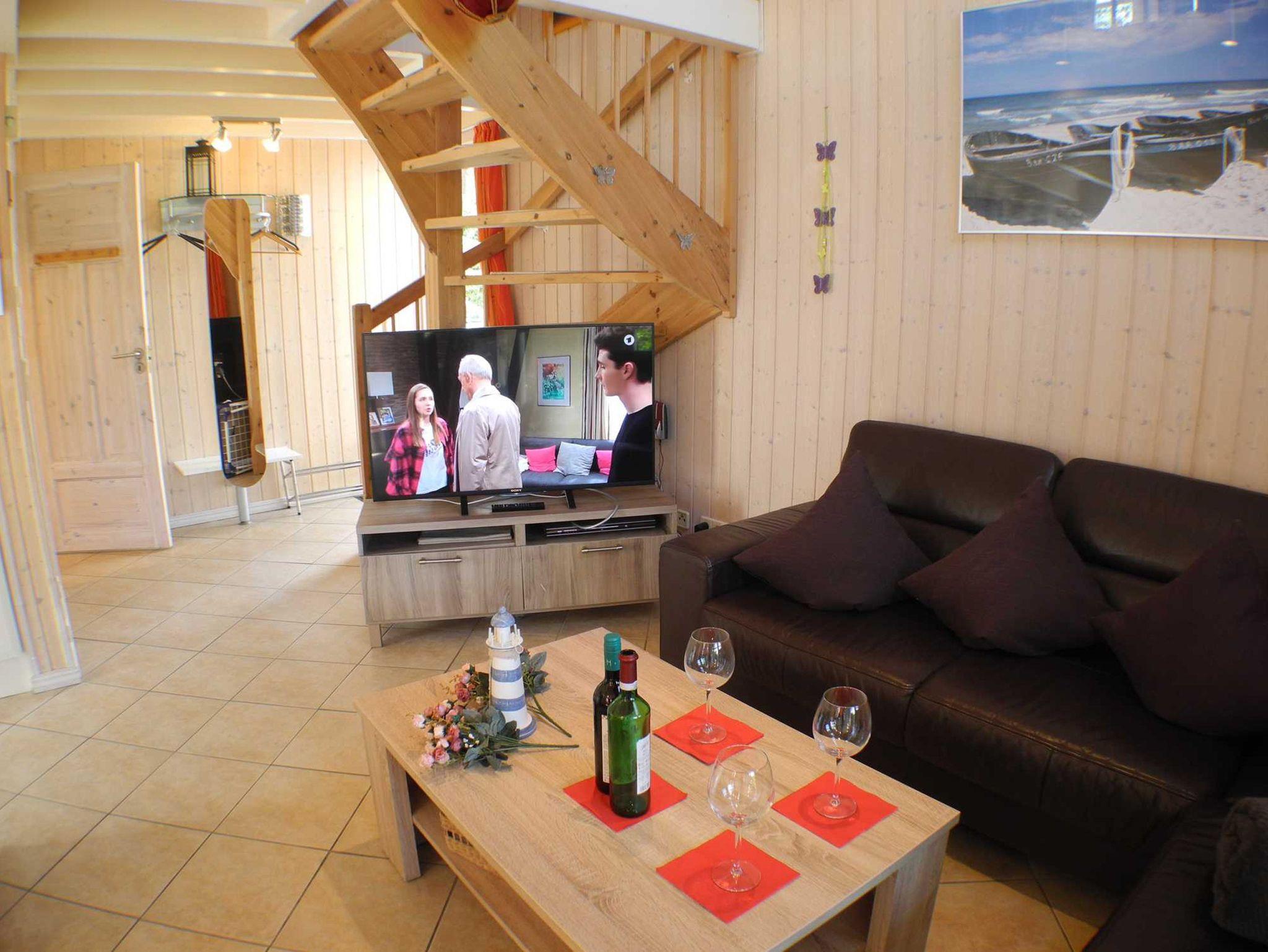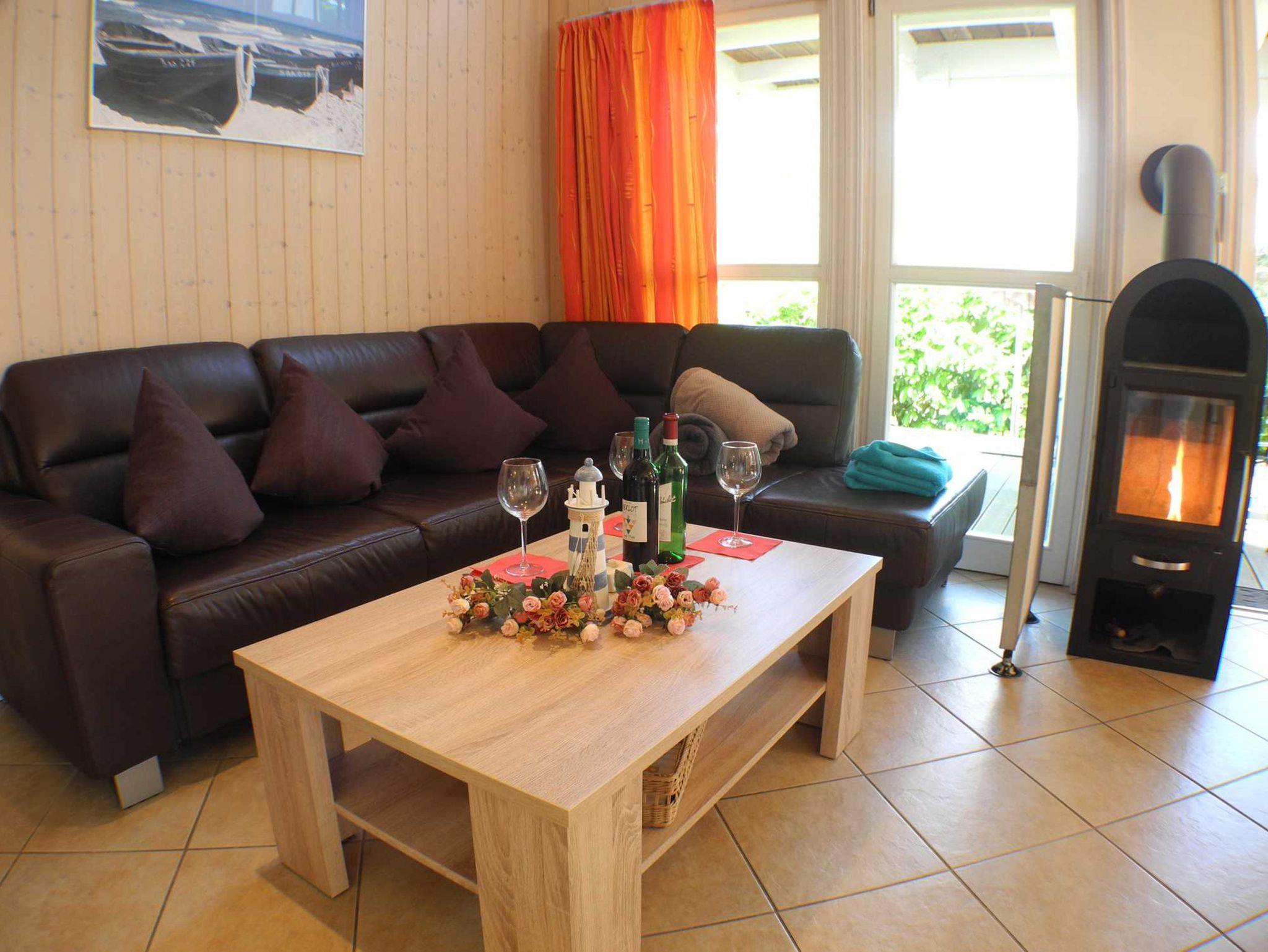 Im Erdgeschoss dominiert der lichtdurchflutete Wohn- und Essbereich mit Kamin und offener Küche. Machen Sie es sich auf der Couch vor dem großformatigen Flatscreen-TV (Smart-TV) gemütlich, schauen Sie eine DVD, lesen Sie ein gutes Buch oder surfen Sie im Internet. W-LAN steht kostenfrei zur Verfügung. Auf der vorgelagerten, nach Südosten ausgerichteten, Terrasse können Sie den Blick auf die Ostsee und die Sonne genießen.