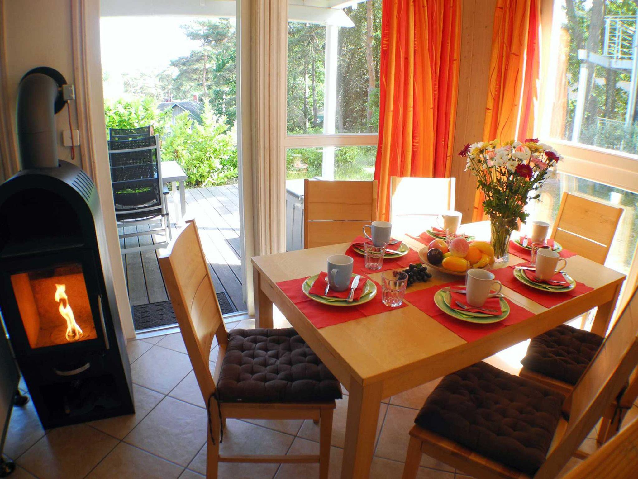 Die Küche bietet mit einem 4-Zonen-Ceranherd inklusive Backofen und Dunstabzug, einer Kühl-/Gefrierkombi, Mikrowelle, Geschirrspüler sowie Kaffeemaschine, Wasserkocher und Toaster beste Voraussetzungen zum Kochen, Braten und Backen. Das nötige Koch- und Essgeschirr ist selbstverständlich ebenfalls vorhanden. Bis zum nächsten Bäcker oder zum Einkaufsmarkt sind es nur wenige Gehminuten. Speisen können Sie wahlweise am großen Esstisch drinnen oder aber auf der möblierten Terrasse an der frischen Ostseeluft.