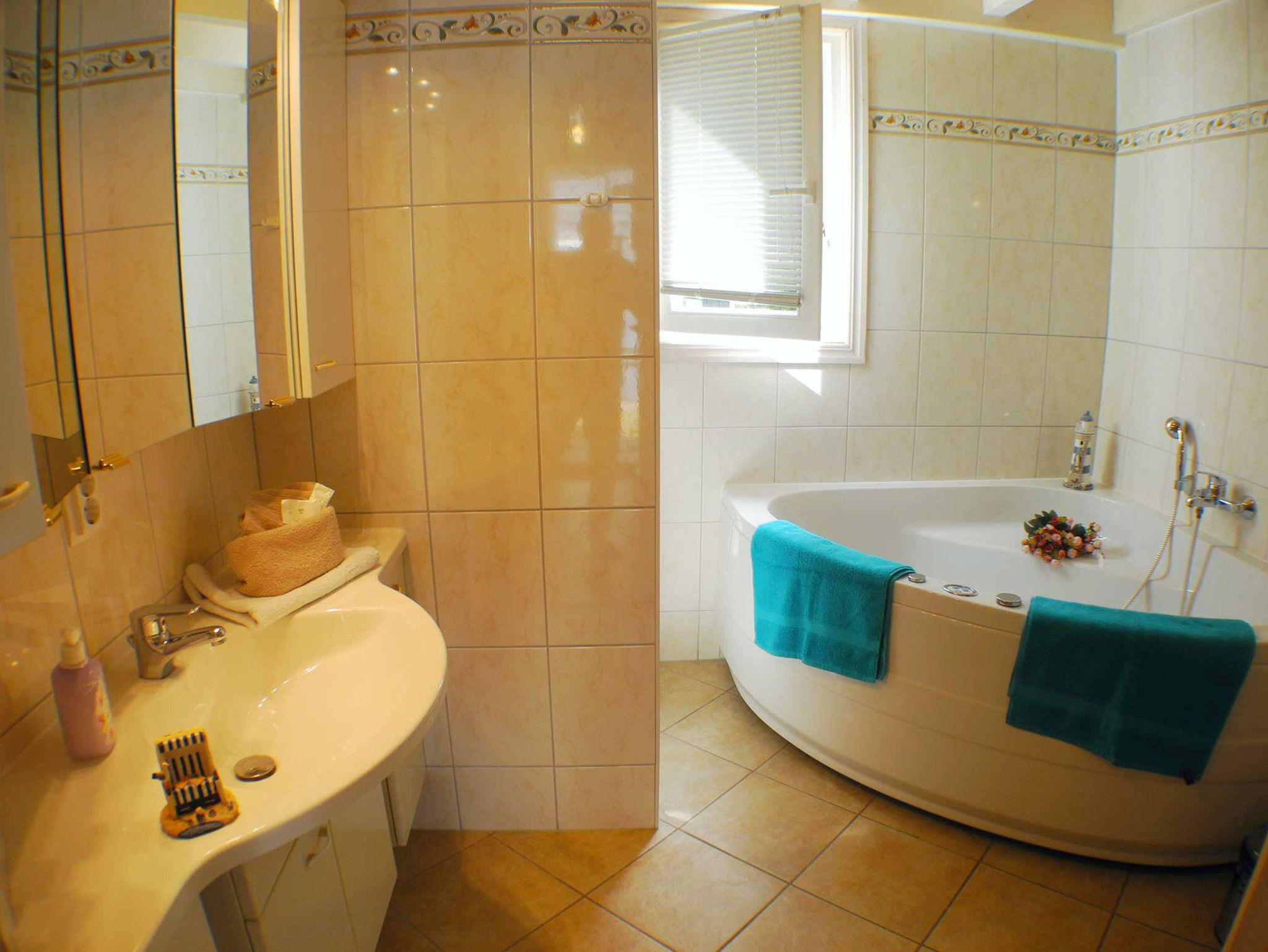 Im Erdgeschoss finden Sie außerdem ein großes Badezimmer mit einem Whirlpool, Dusche/WC, beleuchtetem Waschtisch und Ihrer ganz privaten Sauna. Perfekt, um nach einem erfrischenden Strandspaziergang zu relaxen!