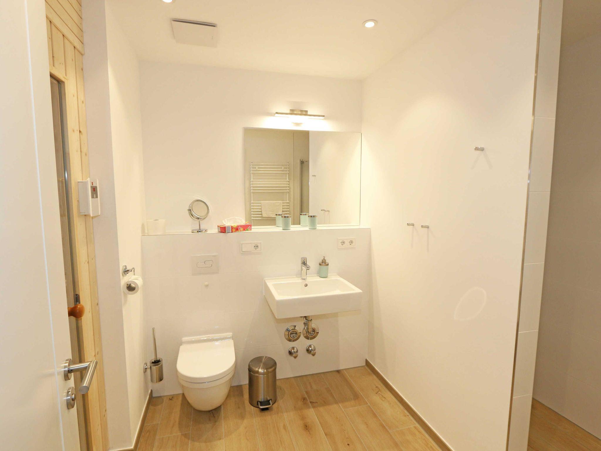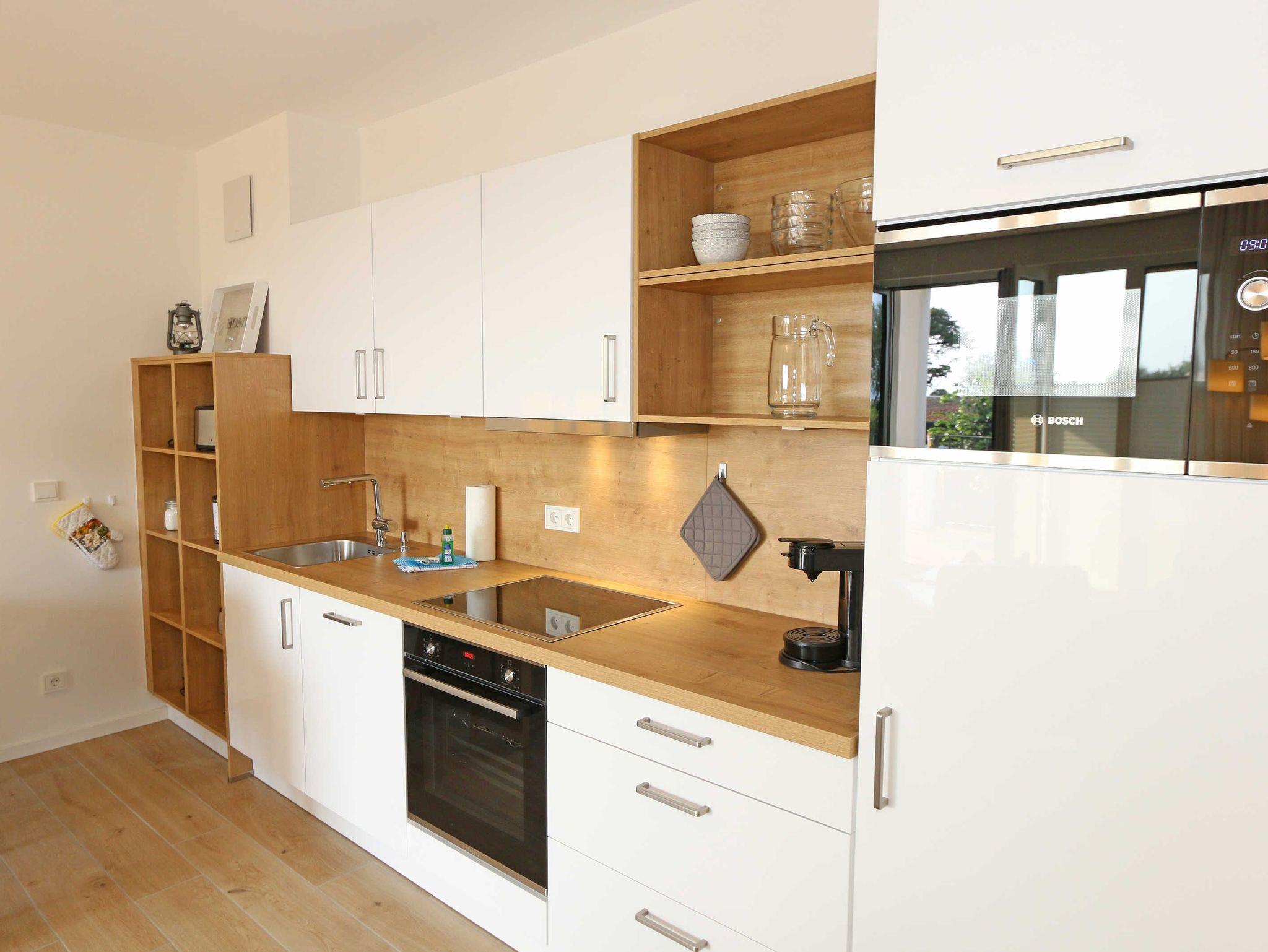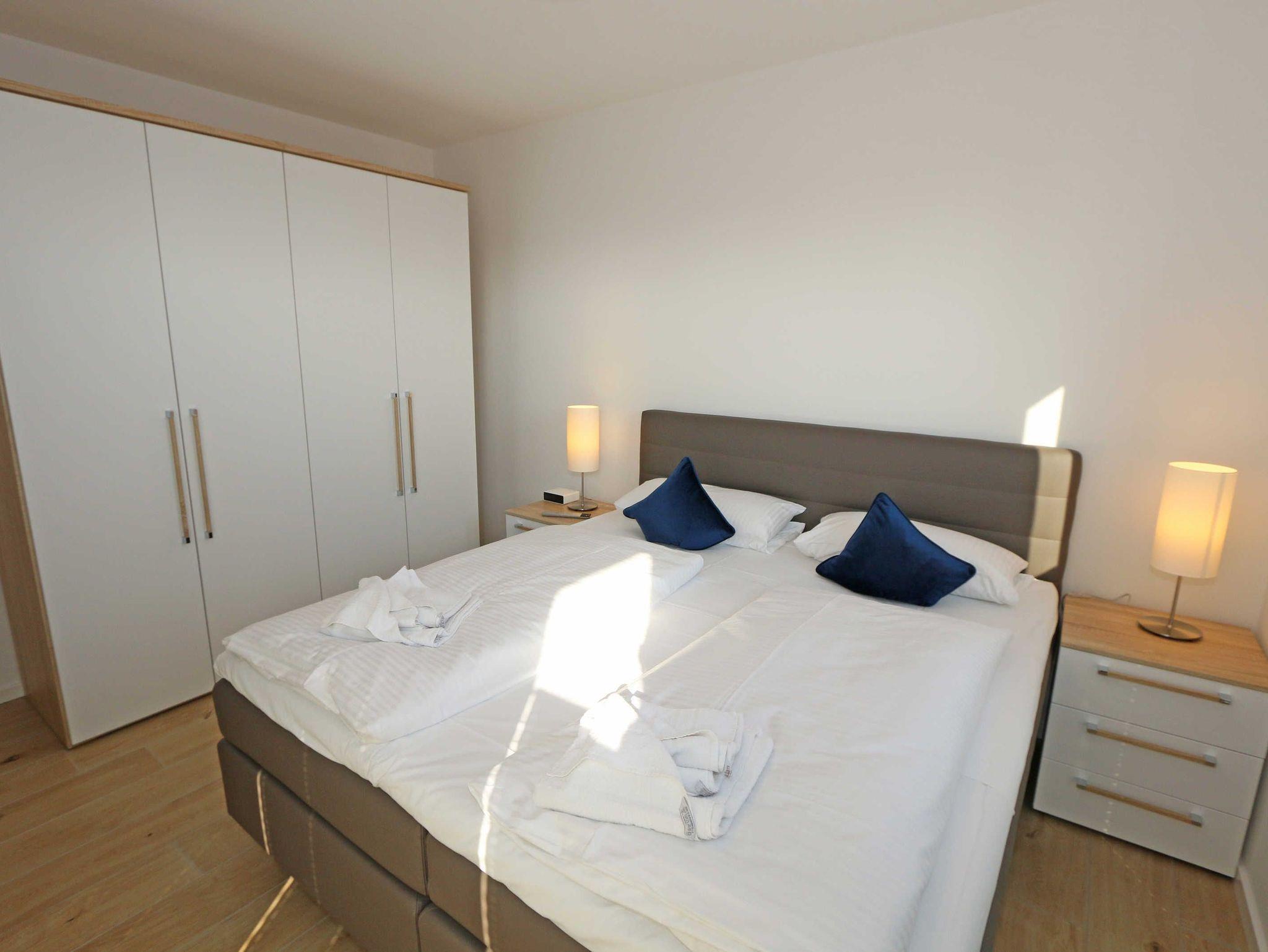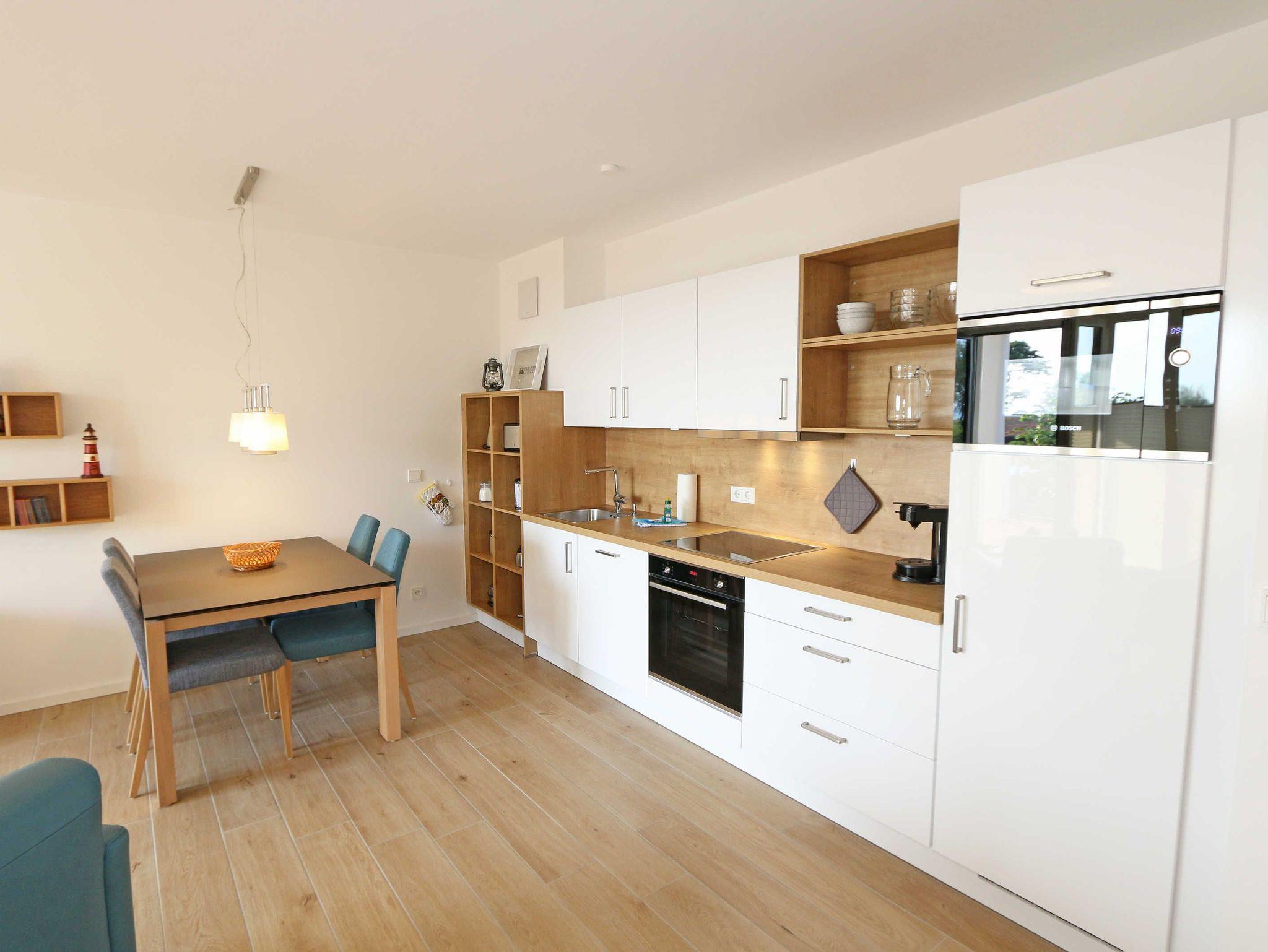 Die stilvoll und komfortabel eingerichtete Nichtraucherferienwohnung „Morgensonne“ befindet sich in der 1. Etage des Hauses. Es erwartet Sie eine 2 Raumwohnung mit einer Gesamtfläche von ca. 62 qm, welche Sie bequem mit dem Fahrstuhl erreichen können. Die Wohnung ist mit viel Liebe zum Detail ausgestattet und für maximal 2 Personen. Der offene Wohnbereich ist mit modernen Möbeln ausgestattet und verfügt über einen Couchtisch mit einem Sessel, Stehlampe, einem Sideboard und einer bequemen Ledercouch in modischen Farben. Für die Unterhaltung steht Ihnen ein Smart-TV von Loewe mit Blu-Ray-Player zur Verfügung ebenso wie eine kleine Auswahl an Urlaubslektüre und Musik-CD`s. Auch auf einen kostenlosen Internetanschluss (WLAN) müssen Sie nicht verzichten. Auf dem nach Osten zum Meer hin ausgerichteten und überdachten Balkon stehen Ihnen eine Sitzgarnitur mit Sonnenschirm für ein gemütliches Frühstück in der Morgensonne oder ein Glas Wein am Abend zur Verfügung. Dabei genießen Sie einen wundervollen Blick auf die Strandpromenade und die Ostsee. Die hochwertig eingerichtete Einbauküchenzeile besitzt Bosch-Hausgeräte mit Induktionskochfeld, Backofen, Kühlschrank mit Gefrierkombination, Mikrowelle, Toaster, Wasserkocher, Kombi Pad Kaffeemaschine mit Thermoskanne von Senseo, Eierkocher und verschiedenen Küchenutensilien. Der Essbereich schließt sich an und besteht aus einem Esstisch und gepolsterten Stühlen. Für einen erholsamen Schlaf steht Ihnen ein Boxspringbett (1,80m x 2,00m) zur Verfügung, mit durchgehendem Topper in Komforthöhe. Nachttischablagen mit Wandleuchten, ein großzügiger Kleiderschrank und ein Smart-TV ergänzen die Ausstattung im Schlafzimmer. Im Wohn ? und im Schlafzimmer gibt es außerdem einen Sichtschutz mit Faltjalousien, eine Verdunkelung mit Vorhängen sowie Insektenschutzgitter für einen erholsamen Schlaf. Von hier gelangen Sie auch auf Ihren Balkon. Im innenliegenden Bad finden Sie einen Waschtisch, ein Wandspiegel, eine ebenerdige Regendusche, ein WC, ein Fön, ein Handtuchtrockner und ein Kosmetikspiegel. Zur Entspannung nach dem Bad im Meer oder an kühlen Tag trägt die Infrarotsauna bei. Der Flurbereich ist mit einem Ganzkörperspiegel ausgestattet. Alle Räume haben geflieste Böden. Eine Fußbodenheizung sorgt an kühleren Tagen für wohlige Wärme. In einem separaten Abstellraum im Eingangsbereich befindet sich ein Staubsauger, ein Wäscheständer und div. Reinigungsutensilien. Zudem können Sie hier auch Ihre Koffer oder Badeutensilien aufbewahren. Ihre eigenen oder gemieteten Fahrräder können Sie in einen Fahrradständer im begrünten Außenbereich abstellen. In der Tiefgarage (Einfahrtshöhe 2,00m) steht Ihnen ein PKW-Abstellplatz (Nr. 15/Morgensonne) zur Verfügung. Im Untergeschoss des Gebäudes befindet sich ein weiterer Wellnessbereich mit einer Gemeinschaftssauna und einem Ruheraum. Ein Waschraum mit Waschmaschinen und Wäschetrockner stehen gegen Bezahlung zur Verfügung. Haustiere sind nicht erlaubt. Die Erstausstattung eines Wäschepaketes (komplette Bettwäsche, 1 Duschhandtuch, 2 kleine Handtücher) können Sie bis 14 Tage vor der Anreise gegen einen Aufpreis dazu buchen oder durch eigene ergänzen. Ab 2 gebuchten Paketen erhalten Sie einmalig 1 Geschirrtuch und einen Duschvorleger dazu.