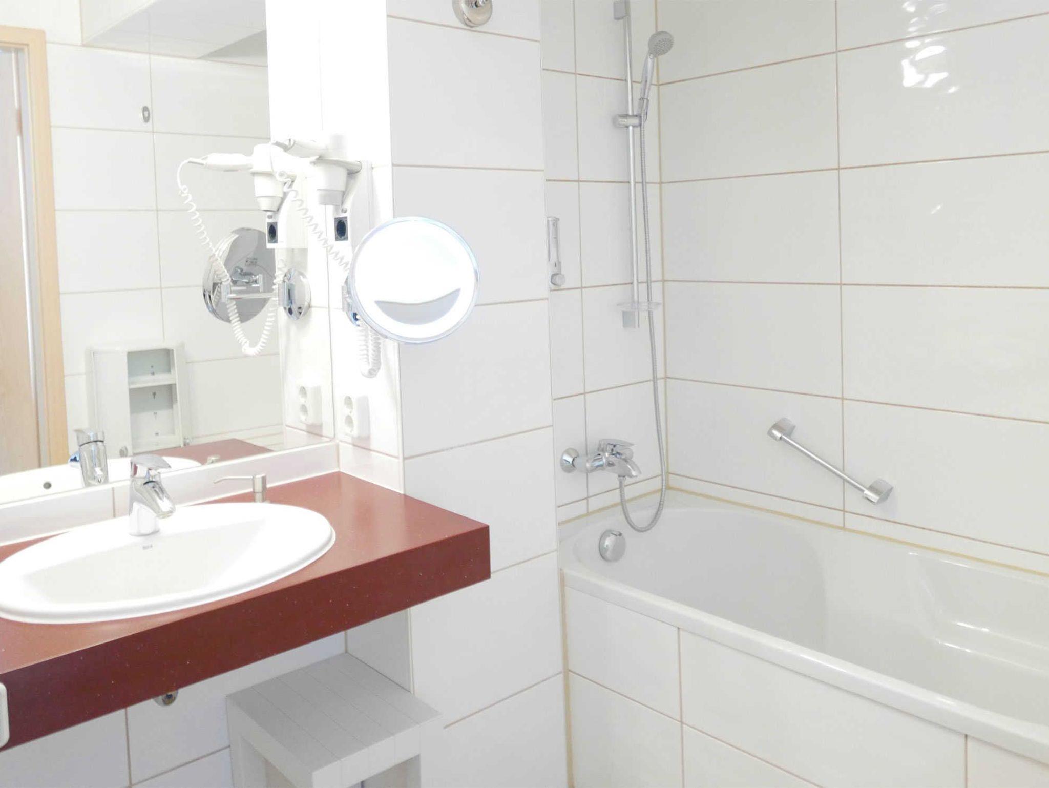 Ein Bügeleisen mit Brett, ein Babybett sowie ein Kinderhochstuhl sind zugegen. Aufzug, WLAN sind ebenfalls vorhanden. Ein PKW-Außenstellplatz/Tiefgaragenstellplatz (ggf. kostenpflichtig) gehört zu Ihrer Wohnung oder kann gemietet werden.