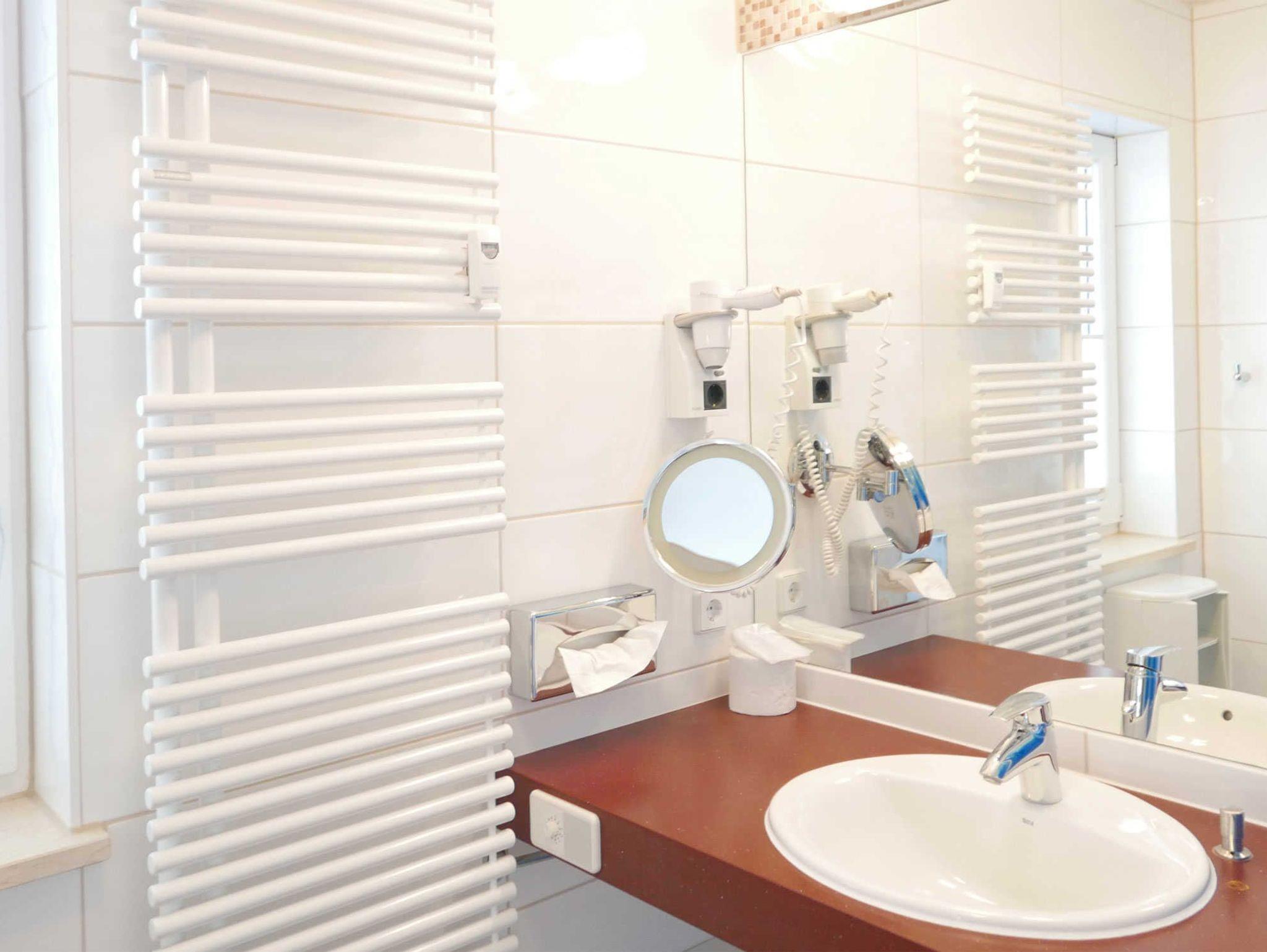 Ein Badezimmer verfügt über eine Dusche, das andere Badezimmer über eine rollstuhlfreundliche Dusche.