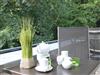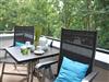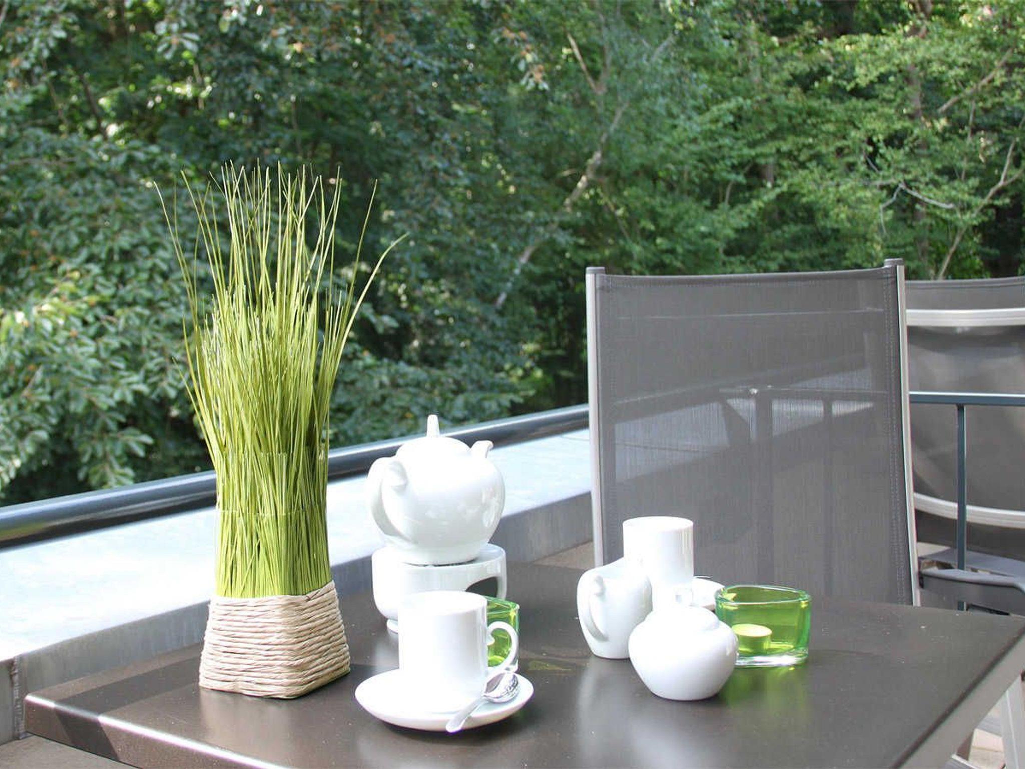 Der Balkon mit Blick ins Grüne verfügt über zwei Sitzplätze.