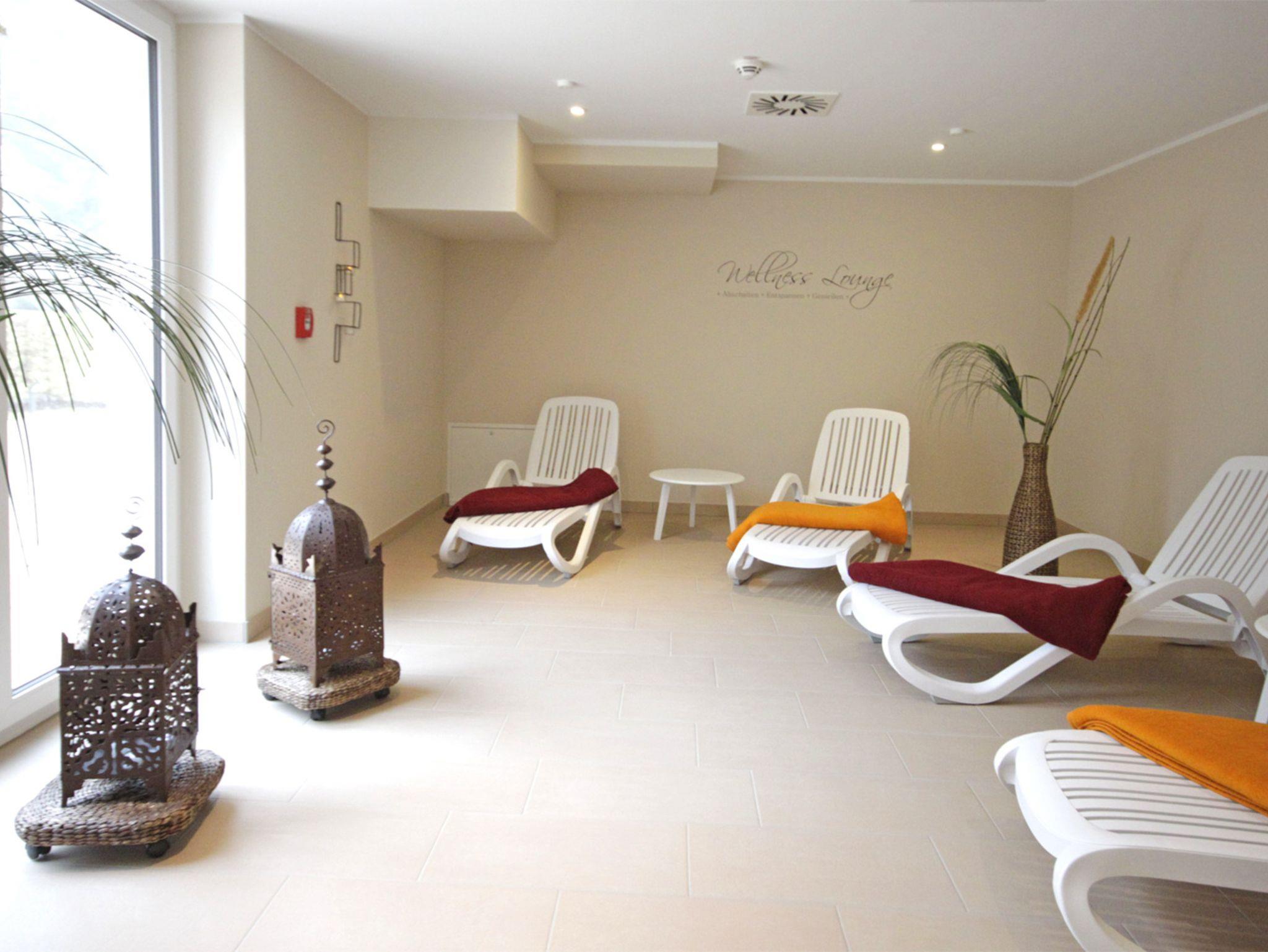 Von hier haben Sie einen direkten Zugang zum Strand. Das Haus ist mit einem Lift, einer Tiefgarage und einem großen Wellnessbereich mit Schwimmbad (ca. 8,00 m x 4,00 m - 1,35 m tief), zwei Saunen (eine finnische Sauna/eine Bio-Sauna) und einem Massagebereich ausgestattet. Der Wellnessbereich ist ganzjährig geöffnet. Bei Ankunft werden Sie an der Rezeption empfangen. Allen Gästen steht die modern eingerichtete Lobby zur Verfügung.