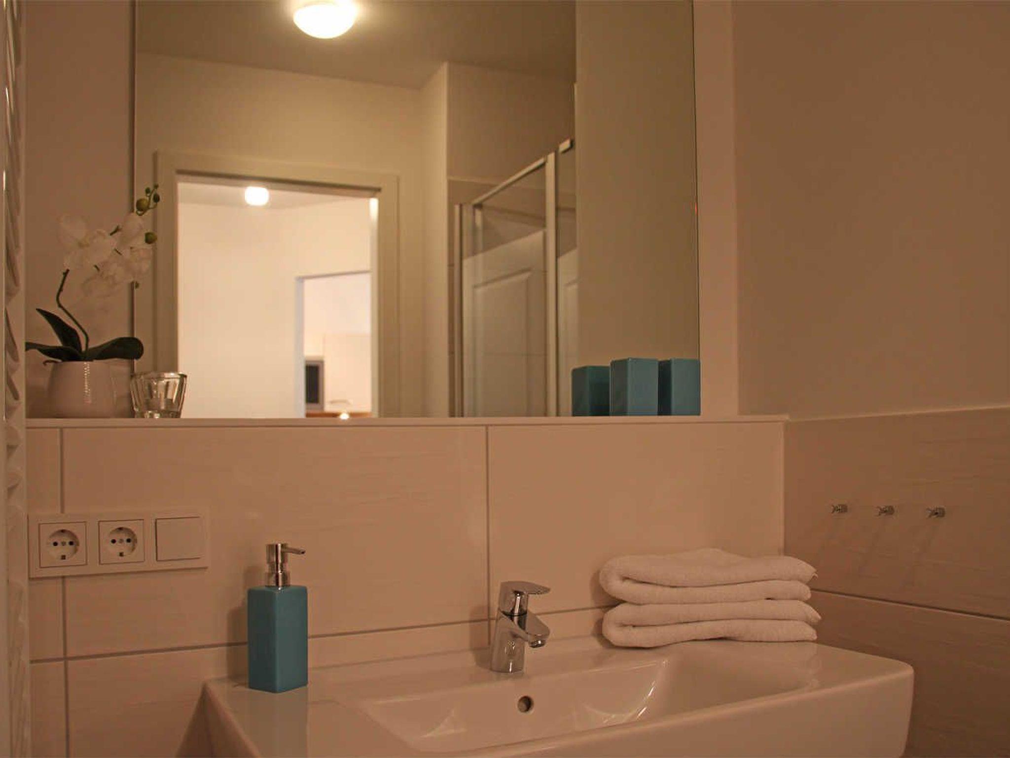 Die Wohnung ist bequem mit dem Fahrstuhl erreichbar; die Dusche im Bad ist ebenerdig.