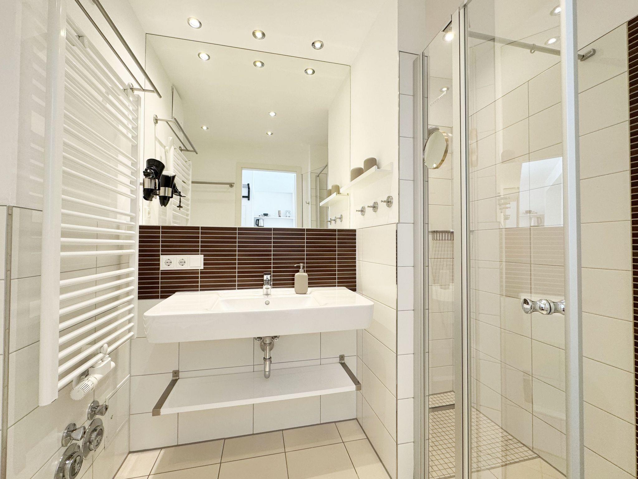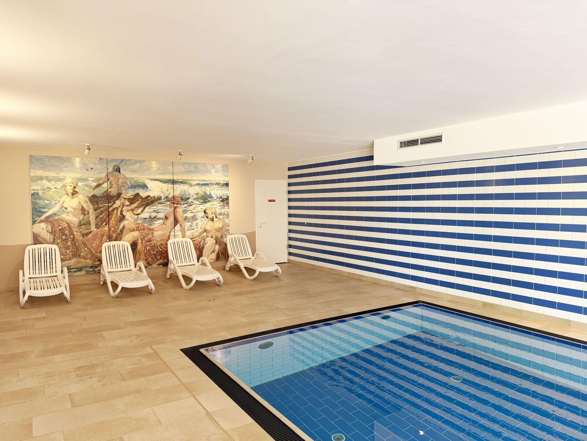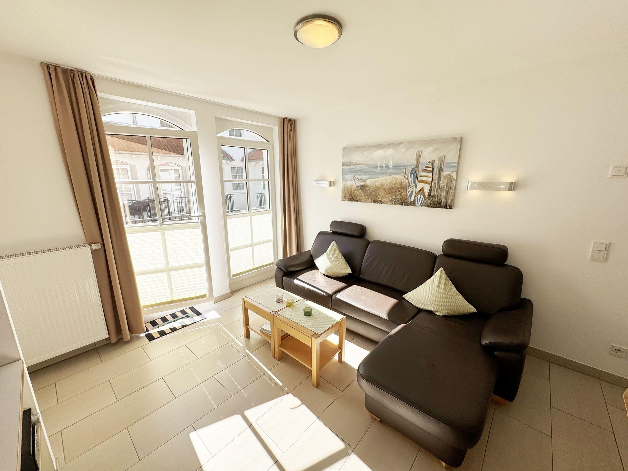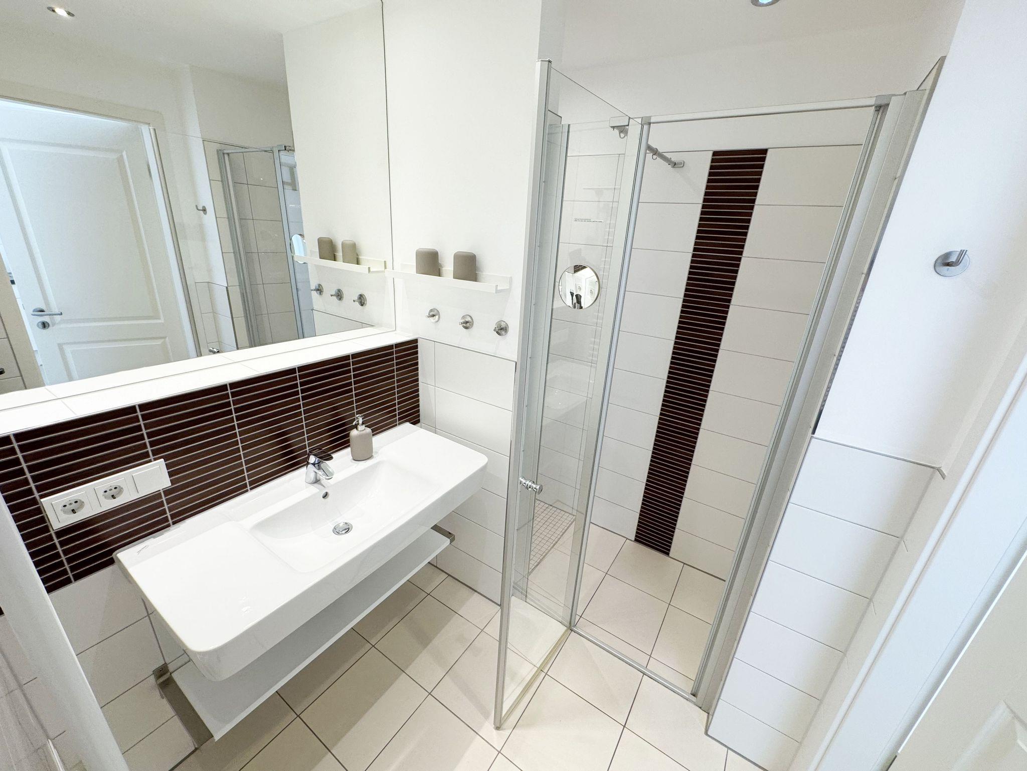 Ihre Nichtraucher-Ferienwohnung ist mit viel Liebe zum Detail ausgestattet und eingerichtet. Sie wohnen in einer ca. 40 m² großen 2-Zimmerwohnung, die ideal für 2 Personen ist (Aufbettungsmöglichkeit im Wohnbereich für eine 3. Person). Die Wohnung A 2.11 befindet sich in der 2. Etage und ist per Fahrstuhl bequem zu erreichen. In der Wohnung finden Sie einen kombinierten Wohn-/Koch- und Essbereich. Die integrierte Küchenzeile lässt mit Backofen, Ceranfeld, Spülmaschine, Kühlschrank mit Gefrierfach, Kaffeemaschine, Wasserkocher, Toaster und anderen praktischen Helfern keine Wünsche offen. Im Wohnbereich sind weiterhin eine Essecke sowie eine gemütliche Couch (1,20 m x 2,00 m) mit Ottomane, Couchtisch, Smart-TV, Blu-Ray-Player und Mini-Stereoanlage vorhanden. Auch auf einen Internetanschluss (WLAN/LAN) müssen Sie nicht verzichten. Dieser ist für Sie inklusive. Der Balkon ist vom Wohn-/Essbereich begehbar und komplett möbliert. Von hier aus haben Sie einen Blick in Richtung Inselparadies. Das Schlafzimmer ist mit einem Doppelbett (1,60 m x 2,00 m) mit verstellbaren Lattenrosten (Kopfteil), Nachttischkonsolen sowie einem offenen Kleiderschrank ausgestattet. Der Wohn- und Schlafraum kann abgedunkelt werden. Das Bad verfügt über eine ebenerdige Dusche, Waschbecken, Fön, WC und Handtuchheizkörper. Ein eigener PKW-Stellplatz Nr. 31 (Einfahrtshöhe 2,00m) befindet sich in der Tiefgarage des Hauses. Im Keller des Hauses haben Sie die Möglichkeit eine Waschmaschine/Trockner gegen Gebühr zu nutzen. Haustiere sind nicht erlaubt. Mit dem Fahrstuhl des Hauses A gelangen sie in das Untergeschoss der Meeresblickanlage, wo Sie ein großzügiger und heller Wellnessbereich erwartet. Hier können sie in einem Pool kleine Bahnen schwimmen, in 2 Saunen Ihren Kreislauf in Schwung bringen, in einem dazugehörigen Ruheraum Ihren Körper wieder beruhigen, in einer Schneckendusche sowie weiteren Duschen das kühle Nass genießen und auf einer Außenterrasse mit Außendusche die frische Luft einatmen. Die Erstausstattung eines Wäschepaketes (komplette Bettwäsche, 1 Duschhandtuch, 2 kleine Handtücher) können Sie bis 14 Tage vor Anreise gegen einen Aufpreis dazu buchen oder durch eigene ergänzen. Ab 2 gebuchten Paketen erhalten Sie einmalig 1 Geschirrhandtuch und 1 Duschvorleger hinzu.