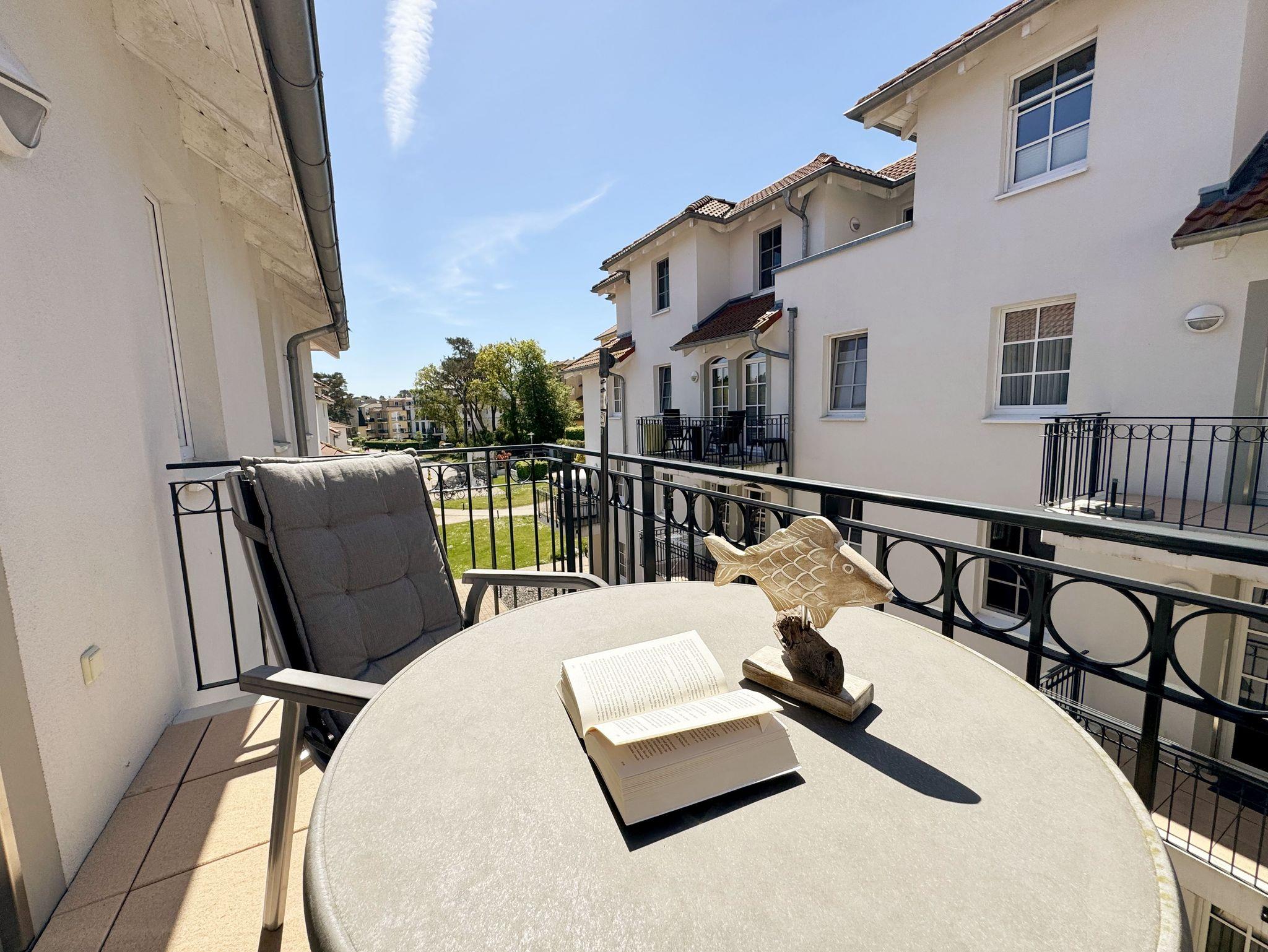 Unmittelbar am Kurpark des Ostseebades Baabe, umgeben von Kiefern befindet sich die neue Appartementanlage Meeresblick. Die Ferienanlage besteht aus 3 freistehenden Häusern und ist nur ca. 80 Meter vom feinen Sandstrand entfernt. An die hiesige Bäderarchitektur angelehnt fügt sich die Meeresblickanlage wohltuend in die Umgebung ein. Die Ferienwohnungen verfügen über einen hohen Komfort und lassen Ihren Urlaubstraum wahr werden. Im Haupthaus befindet sich ein Wellnessbereich mit Innenpool, Sauna und Ruheraum (inklusive) der zur Entspannung einlädt. Eine hauseigene Tiefgarage sorgt dafür, dass Ihr PKW sicher untergebracht ist. Cafés und Restaurants laden in der Anlage zum Verweilen ein. Ein weiteres Highlight ist der Müther Schalenbau (Restaurant Inselparadies Baabe), welches saniert, restauriert und in die Meeresblickanlage liebevoll integriert wurde. Die Wohnung (A 2.11) befindet sich im Haupthaus A im 2. Obergeschoss und verfügt über einen Balkon mit Blick Richtung Inselparadies.