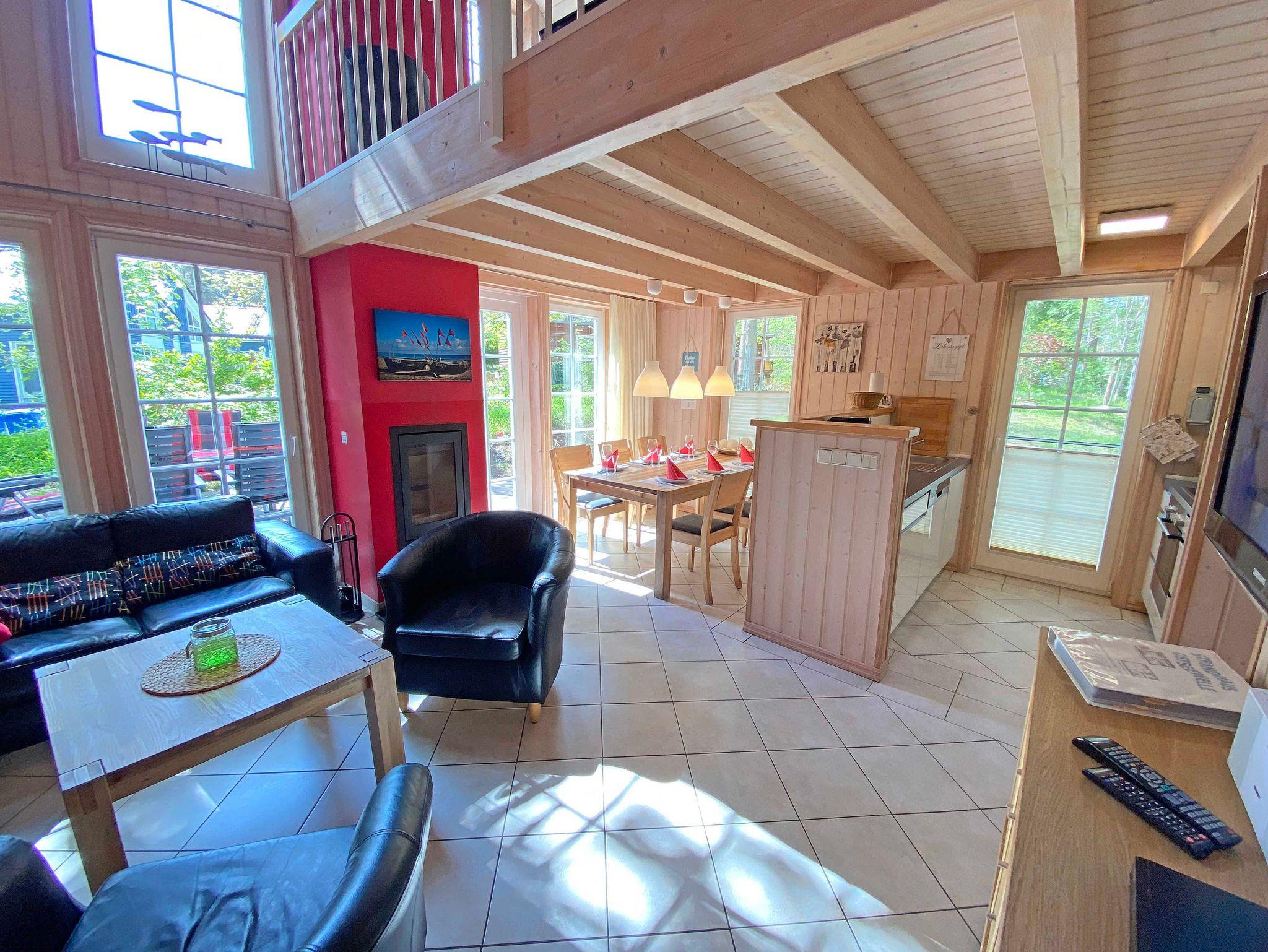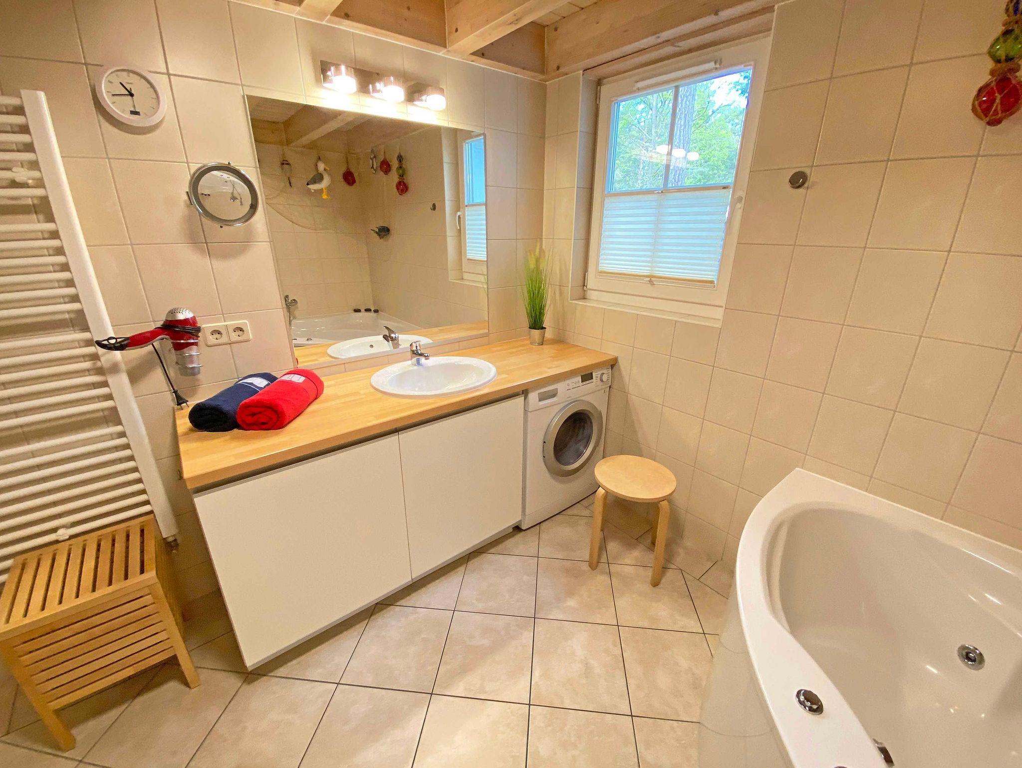 Das liebevoll eingerichtete ca. 85 qm große Nichtraucher Strandhaus „Ostseewelle“ im skandinavischen Stil mit Kamin und Sauna ist optimal geeignet für 6 Erwachsene und 1 Kleinkind bis 3 Jahre im Kinderreisebett. Durch einen kleinen Eingangsflur mit Garderobe und Schuhregalen betreten Sie Ihr Strandhaus. Im Erdgeschoss befindet sich der Wohn-/Essbereich mit gemütlicher Ledercouchecke, 2 Sesseln, Highboard mit Smart-TV, Blu-Ray-Player, Mini-Stereoanlage mit USB-Anschluss sowie ein Philips DAB Radio. Auch auf einen Internetzugang (WLAN) brauchen Sie nicht verzichten. Dieser ist für Sie inklusive. Wer es abends gern noch ein bisschen gemütlicher mag, der zündet den Kamin im Wohnraum an und lässt den Tag bei einem Glas Wein ausklingen. Dem Wohnbereich angeschlossen ist die Einbauküche, die mit allen Geräten ausgestattet ist, wie Sie es von zu Hause kennen: Geschirrspüler, Kühlschrank mit Gefrierfach, Ceranherd mit Backofen, Mikrowelle, Kaffeemaschine, SENSEO Kaffeemaschine, Wasserkocher, Toaster, Mixer und ambitionierte Hobbyköche finden eine große Auswahl an Küchenutensilien. Der große Esstisch bietet Platz für 6 Personen. Vom Wohnbereich gibt es einen direkten Zugang zur sonnigen Terrasse (Süd/Ost), welche mit bequemen Terrassenmöbeln ausgestattet ist. Zum Grillen können Sie den Elektrogrill nutzen. Im kleinen Abstellraum unter der Treppe finden Sie die Stuhlauflagen und einige Reinigungsutensilien. Das freundlich eingerichtete Schlafzimmer im Erdgeschoss ist mit 2 Boxspringbetten (0,90 m x 2,00 m), Nachttischkonsolen, Leseleuchten und Kleiderschrank ausgestattet. Das große Bad auf gleicher Ebene verfügt über eine Dusche, Sauna und einen Whirlpool welches Ihr „Wellnessbereich“ zum Verwöhnen ist! Auch ein Waschplatz, WC und Fön gehören dazu. Eine Waschmaschine/Trockner für die kleine Wäsche ist ebenfalls im Bad. Über eine Holztreppe erreichen Sie das lichtdurchflutete Obergeschoss. Auf der Galerie gibt es einen Tisch - Kicker für gesellige „Fußballspiele“ und eine Leseecke mit Sesseln. Zwei weitere Schlafzimmer mit Boxspringbetten (1 SZ mit Doppelbett 1,80 m x 2,00 m, 1 SZ mit zwei Einzelbetten 0,90 m x 2,00 m), Kleiderschränken, ein TV-Flachbild, Ablagen mit Leseleuchten sowie ein zweites großes Tageslicht-Bad mit Dusche, WC, Waschplatz, Kosmetikspiegel sind ebenfalls im Obergeschoss untergebracht. Das Haus verfügt im gefliesten Erdgeschoss über eine Fußbodenheizung. Das mit Teppichboden belegte OG ist mit individuell einstellbaren Wandheizkörpern ausgerüstet. Alle Räume haben Insektenschutzgitter. Für die kleinen Gäste halten wir 1x Hochstuhl, 1x Kinderreisebett und eine Treppenschutztür (im Obergeschoss) bereit. Auf dem Grundstück steht unseren Gästen ein PKW-Stellplatz (Nr. 02) zur Verfügung. Ihre geliehenen oder mitgebrachten Fahrräder können Sie am Haus (einbetonierter Fahrradbügel) abstellen und anschließen. 2 Haustiere sind mit eigenen Schlafplätzen gegen eine Gebühr gern gesehene Gäste. Die Erstausstattung eines Wäschepaketes (komplette Bettwäsche, 1 Duschhandtuch, 2 kleine Handtücher) können Sie bis 14 Tage vor Anreise gegen einen Aufpreis dazu buchen oder durch eigene ergänzen. Ab 2 gebuchten Paketen erhalten Sie einmalig 1 Geschirrtuch und einen Duschvorleger dazu.