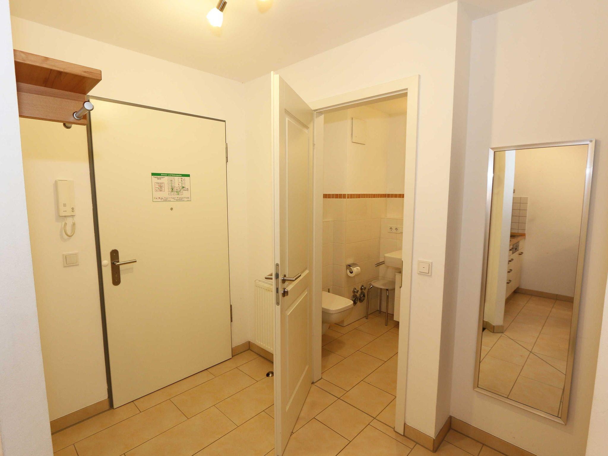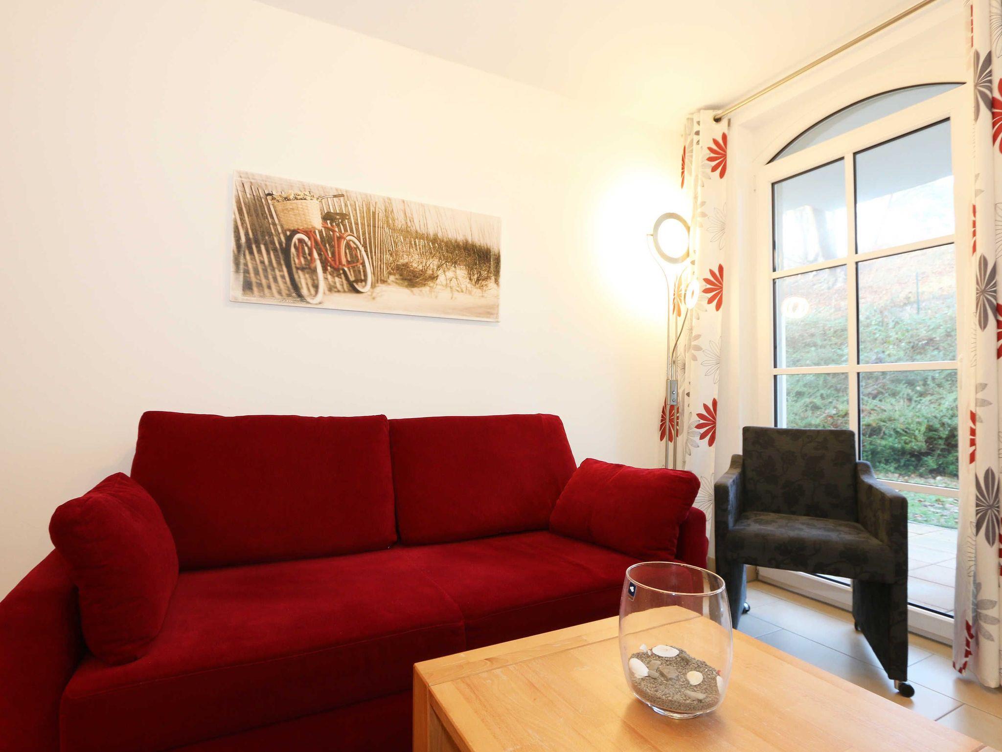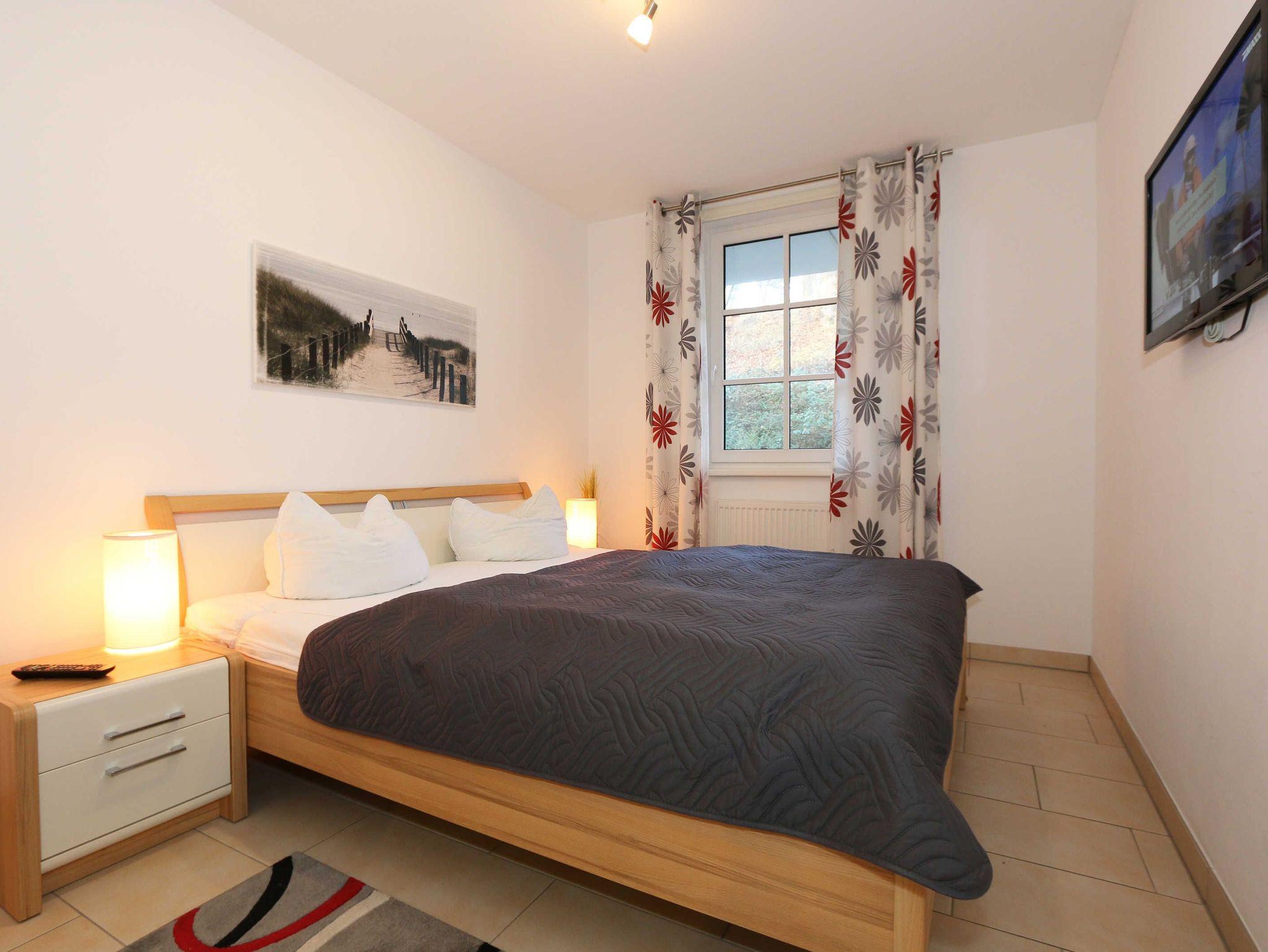 Ihre Nichtraucher-Ferienwohnung ist mit viel Liebe zum Detail ausgestattet und eingerichtet. Sie wohnen in einer ca. 40 m² großen 2-Zimmerwohnung, die für max. 2 Erwachsene + 1 Kleinkind bis 3 Jahre im Kinderreisebett ausgelegt ist. Die Wohnung A 0.14 befindet sich im Erdgeschoss und ist per Fahrstuhl aus der Tiefgarage bequem zu erreichen. In der Wohnung finden Sie einen kombinierten Wohn-/Koch- und Essbereich. Die integrierte Küchenzeile lässt mit Mikrowelle mit Grillfunktion, Ceranfeld, Spülmaschine, Kühlschrank mit Gefrierfach, Kaffeemaschine, Wasserkocher, Toaster und anderen praktischen Helfern keine Wünsche offen. Im Wohnbereich ist weiterhin eine Essecke sowie eine gemütliche Couch, Couchtisch, Leselampe, Smart-TV und Mini-Stereoanlage mit USB-Anschluss vorhanden. Auch auf einen Internetanschluss (WLAN/LAN) müssen Sie nicht verzichten. Dieser ist für Sie inklusive. Die Terrasse ist vom Wohn-/Essbereich begehbar und möbliert. Von der windgeschützten Terrasse (Nord/West) blickt man durch den Kiefernbaumbestand seitlich in Richtung Meer. Das Schlafzimmer ist mit einem Doppelbett (1,80 m x 2,00 m) mit verstellbaren Lattenrosten (Kopfteil), Nachttischkonsolen, einem Smart-TV, Insektenschutzgitter sowie einem Kleiderschrank ausgestattet. Der Wohn- und Schlafraum kann abgedunkelt werden. Das Bad verfügt über eine ebenerdige Dusche, Waschbecken, Fön, Kosmetikspiegel, WC und Handtuchheizkörper. Ein Kinderhochstuhl und ein Kinderreisebett (ohne Zusatzmatratze, ohne Bett Inlett) stehen Ihnen inklusive zur Verfügung. Ein eigener PKW-Stellplatz (Nr.50, Einfahrtshöhe 2,00m) befindet sich in der Tiefgarage des Hauses. Im Keller des Hauses haben Sie die Möglichkeit eine Waschmaschine/Trockner gegen Gebühr zu nutzen. Haustiere sind nicht erlaubt. Mit dem Fahrstuhl des Hauses A gelangen sie in das Untergeschoss der Meeresblickanlage, wo Sie ein großzügiger und heller Wellnessbereich erwartet. Hier können sie in einem Pool kleine Bahnen schwimmen, in 2 Saunen Ihren Kreislauf in Schwung bringen, in einem dazugehörigen Ruheraum Ihren Körper wieder beruhigen, in einer Schneckendusche sowie weiteren Duschen das kühle Nass genießen und auf einer Außenterrasse mit Außendusche die frische Luft einatmen. Die Erstausstattung eines Wäschepaketes (komplette Bettwäsche, 1 Duschhandtuch, 2 kleine Handtücher) können Sie bis 14 Tage vor Anreise gegen einen Aufpreis dazu buchen oder durch eigene ergänzen. Ab 2 gebuchten Paketen erhalten Sie einmalig 1 Geschirrhandtuch und 1 Duschvorleger hinzu.