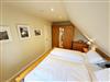 Die 70 qm große Doppelhaushälfte (Nichtraucher) für 2 bis 5 Personen und 1 Kleinkind bis 3 Jahre im Kinderreisebett, wurde mit viel Liebe zum Detail ausgestattet und eingerichtet. Die Haushälfte verläuft über 2 Etagen und besteht im Erdgeschoss aus einem großzügigen Wohn-/Essbereich mit einer vollausgestatteten Küchenzeile sowie einem Gäste-WC. Im Obergeschoss finden Sie 2 separate Schlafräume, das große Badezimmer und einen Abstellraum. Der helle Wohnbereich mit Couchecke (Aufbettungsmöglichkeit für eine 5. Person/1,30m x 1,90m), Couchtisch, Leselampe, ein Bücherregal mit kleiner Buchauswahl, ein großer Smart-TV im TV-Schrank mit DVD-Player und eine kleine Musikanlage sorgen für Ihre Unterhaltungsmöglichkeiten. Ein kostenfreier WLAN-Zugang (250 Mbit/S) steht Ihnen auch zur Verfügung. Die angrenzende Küchenecke lässt mit einem Backofen, Ceran-Kochfeld, Geschirrspüler, Kühlschrank mit Eisfach, Kaffeemaschine, Senseo Padmaschine, Wasserkocher, Toaster, weiteren praktischen Helfern sowie einen Essplatz mit 5 Stühlen keine Wünsche offen. Auf gleicher Ebene finden Sie auch das Gäste-WC. Von der bestuhlten Terrasse (Süd/West) mit Strandkorb gelangen Sie in einen separaten Abstellraum mit Waschmaschine/Trockner (inklusive), Bügelbrett, Bügeleisen, Staubsauger und Reinigungsutensilien. Im Obergeschoss befinden sich beide Schlafzimmer. Das größere verfügt über ein Doppelbett (2,00 m x 2,00 m), Nachttischkonsolen, einen Kleiderschrank und eine Kommode mit Flachbild-TV. Das kleinere Schlafzimmer wird durch 2 Einzelbetten (á 0,90 m x 2,00 m) und eine Kommode mit Flachbild-TV abgerundet. Alle Betten wurden mit Komfort Kaltschaum - Matratzen und verstellbaren Lattenroste ausgestattet sowie Insektenschutzgittern. Das großzügige Tageslichtbad wird durch eine Dusche, WC, Waschtisch mit Spiegelschrank, Kosmetikspiegel, Fön und Badezimmermöbel komplettiert. Alle Räumlichkeiten können durch Rollläden verdunkelt werden. Hochwertige Steinzeugfliesen wurden im Erdgeschoss verlegt und im Bad sowie in den Schlafräumen massive Holzdielen. Einen PKW-Stellplatz finden Sie im Carport, wo auch bei Bedarf dahinter ein 2. Stellplatz genutzt werden kann. Ein verschlossener Abstellraum für Ihre mitgebrachten oder geliehenen Fahrräder befindet sich am Carport. Haustiere sind nicht erlaubt. Die Erstausstattung eines Wäschepaketes (komplette Bettwäsche, 1 Duschhandtuch, 1 kleines Handtuch) können Sie bis 14 Tage vor Anreise gegen einen Aufpreis dazu buchen oder durch eigene ergänzen. Ab 2 gebuchten Paketen erhalten Sie einmalig 1 Geschirrhandtuch und 1 Duschvorleger hinzu.