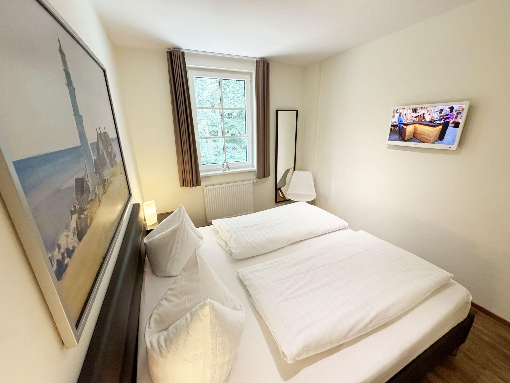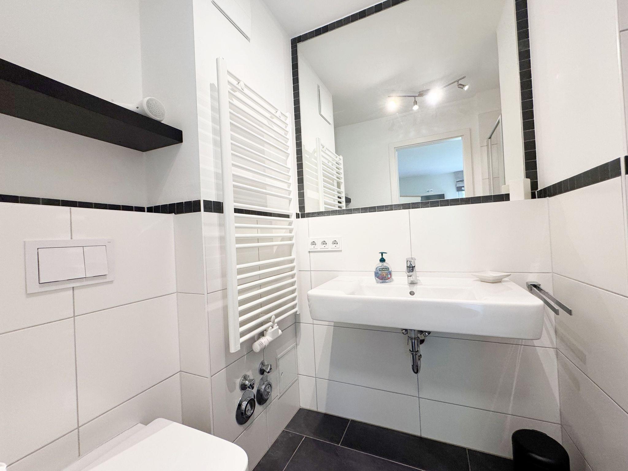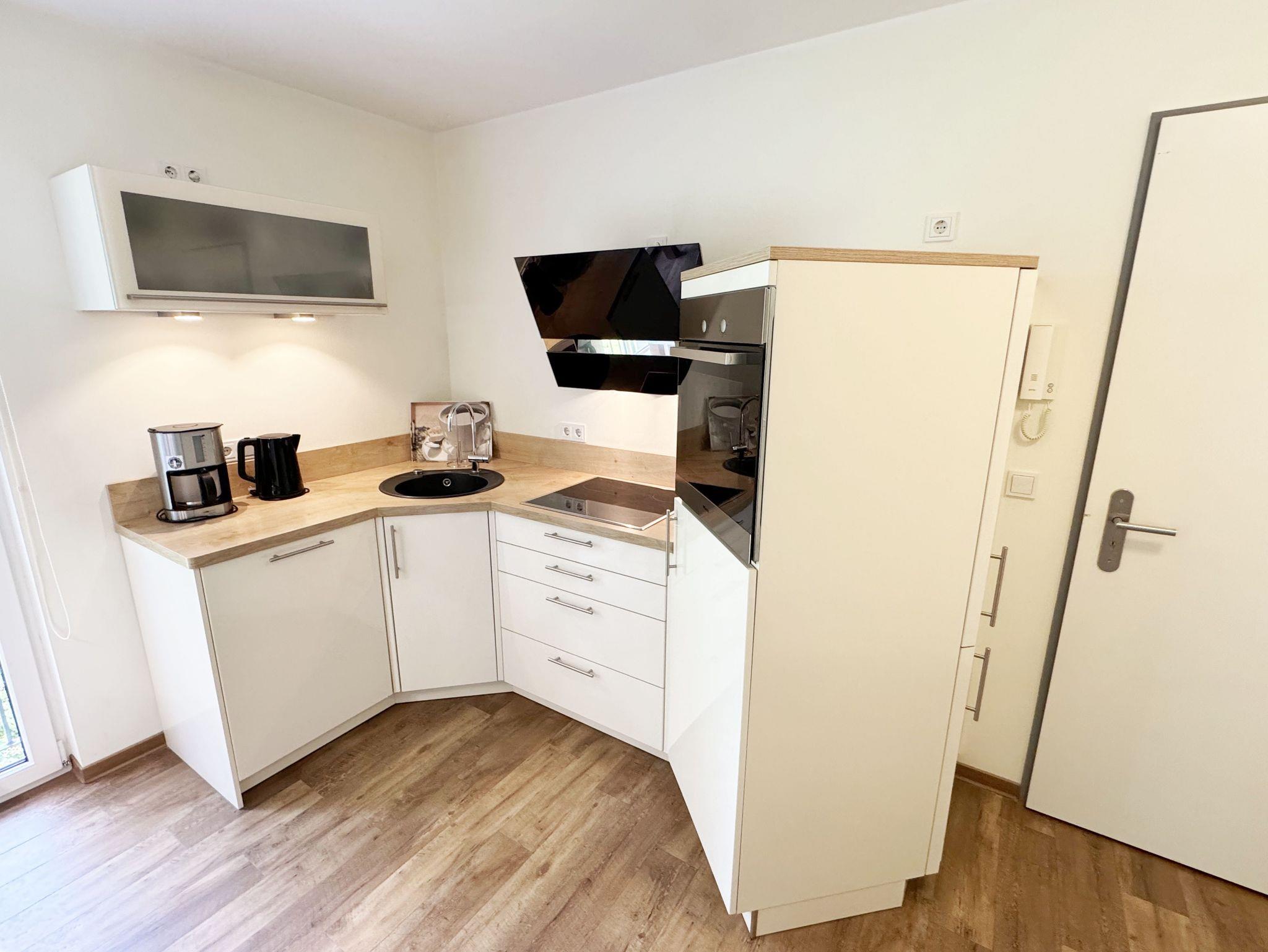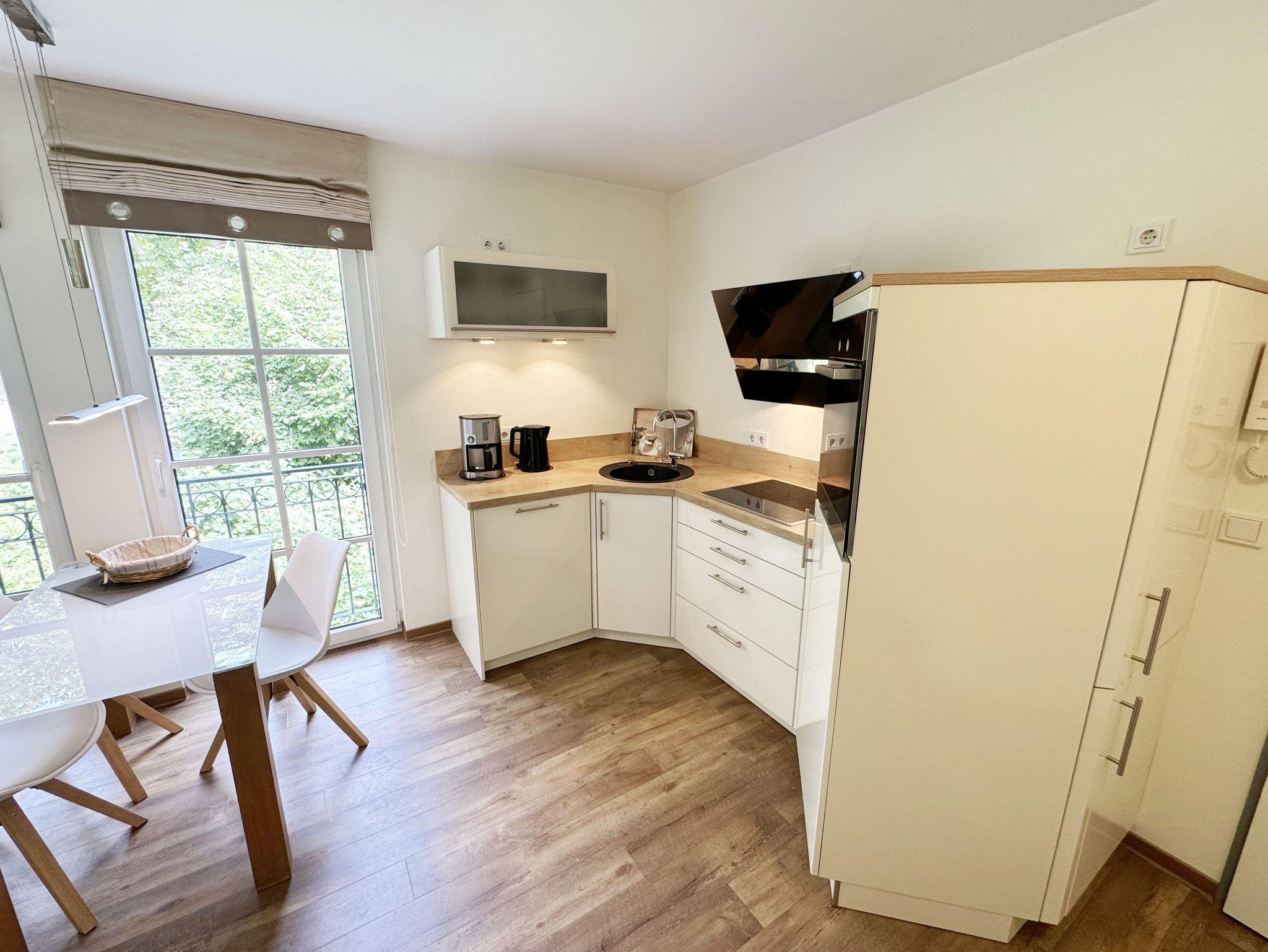 Die lichtdurchflutete 2-Zimmer-Ferienwohnung „Sernetta“ bietet auf ca. 39 m² ein behagliches Zuhause für bis zu 3 Personen ? ideal für Paare oder kleine Familien. Die Nichtraucherwohnung befindet sich im 3. Obergeschoss des gepflegten Apartmenthauses Meeresblick und ist bequem mit dem Fahrstuhl erreichbar. Die moderne Eckwohnung überzeugt mit einer durchdachten Raumaufteilung und passender Ausstattung. Der gemütliche Wohnbereich mit einer Schlafcouch (Aufbettungsmöglichkeit für 3. Person, 1,80m x 2,00m), einem Couchtisch, einer Stehlampe, einer Vitrine, einem LED-TV, einer Radio/CD-Anlage und WLAN lädt zum Entspannen ein. Zum angrenzenden offenen Wohn-/Essbereich befindet sich eine hochwertige Einbauküche mit einem Cerankochfeld, einem Backofen, einem Geschirrspüler, einem Kühlschrank mit Gefrierfach, einer Kaffeemaschine, einem Wasserkocher, einem Toaster, einem Eierkocher sowie viele Küchenhelfer. Abgerundet werden beide Bereiche durch einen Essplatz am Fenster mit Blick ins Grüne. Der zur Südseite ausgerichtete und bestuhlte Einzelbalkon mit Marmortisch ist direkt vom Wohnbereich zugänglich und bietet ruhige sonnige Ausblicke. Das separate Schlafzimmer verfügt über ein komfortables Doppelbett (1,80m x 2,00m), Nachttischablagen mit Beleuchtung, einen Ganzkörperspiegel, einen großen Kleiderschrank mit integrierten Schubladen sowie einen zweiten LED-TV. Verdunkelnde Vorhänge sorgen für erholsame Nächte. Im innenliegenden Badezimmer erwartet Sie eine ebenerdige Dusche, ein großzügiger Waschplatz mit Spiegel, ein WC, einen Fön sowie praktische Ablagemöglichkeiten. In allen Räumen wurde ein ausgewählter Vinylboden verlegt, der ein hygienisches und angenehmes Wohngefühl vermittelt. Ein Haustier ist gegen einen Aufpreis und eigenen Schlafplatz ein gern gesehener Gast. Ein eigener PKW-Stellplatz (Nr.61, Einfahrtshöhe 2,00m) befindet sich in der Tiefgarage des Hauses, welcher sich direkt am Eingang der Tiefgarage befindet. Im Keller des Hauses haben Sie die Möglichkeit eine Waschmaschine/Trockner gegen Gebühr zu nutzen. Mit dem Fahrstuhl des Hauses A gelangen sie in das Untergeschoss der Meeresblickanlage, wo Sie ein großzügiger und heller Wellnessbereich erwartet. Hier können sie in einem Pool kleine Bahnen schwimmen, in 2 Saunen Ihren Kreislauf in Schwung bringen, in einem dazugehörigen Ruheraum Ihren Körper wieder beruhigen, in einer Schneckendusche sowie weiteren Duschen das kühle Nass genießen und auf einer Außenterrasse mit Außendusche die frische Luft einatmen. Die Erstausstattung eines Wäschepaketes (komplette Bettwäsche, 1 Duschhandtuch, 2 kleine Handtücher) können Sie bis 14 Tage vor Anreise gegen einen Aufpreis dazu buchen oder durch eigenes Ergänzen. Ab 2 gebuchten Paketen erhalten Sie einmalig 1 Geschirrhandtuch und 1 Duschvorleger hinzu.