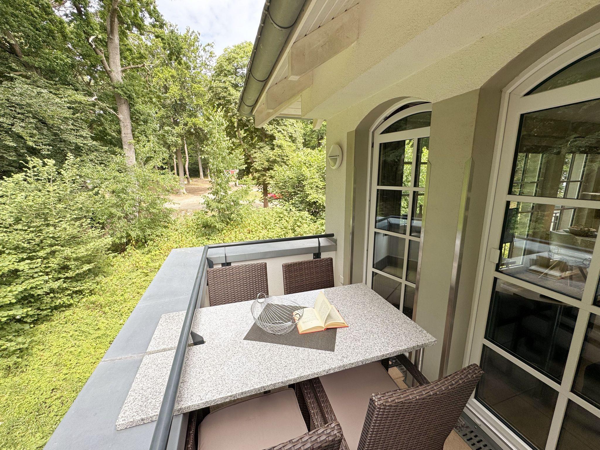 Herzlich Willkommen im Haus Meeresblick ? einer modernen Appartementanlage im charmanten Ostseebad Baabe. Eingebettet in den idyllischen Küstenwald und direkt am Kurpark gelegen, genießen Sie hier Urlaub in bester Lage ? nur ca. 80 Meter vom feinsandigen Strand der Ostsee entfernt. Die Anlage besteht aus drei freistehenden Häusern, die sich harmonisch in die traditionelle Bäderarchitektur der Region einfügen. In unmittelbarer Nähe vom Haus befinden sich kleine Geschäfte, eine Eisdiele, ein Souvenirshop sowie Cafés und Restaurants. Frische Brötchen für ein entspanntes Frühstück sind saisonal ebenfalls vor Ort erhältlich. In den Sommermonaten erwarten Sie im nahegelegenen Kurpark abwechslungsreiche Veranstaltungen und am Strand stehen von April bis Oktober Strandkörbe zur Miete bereit.