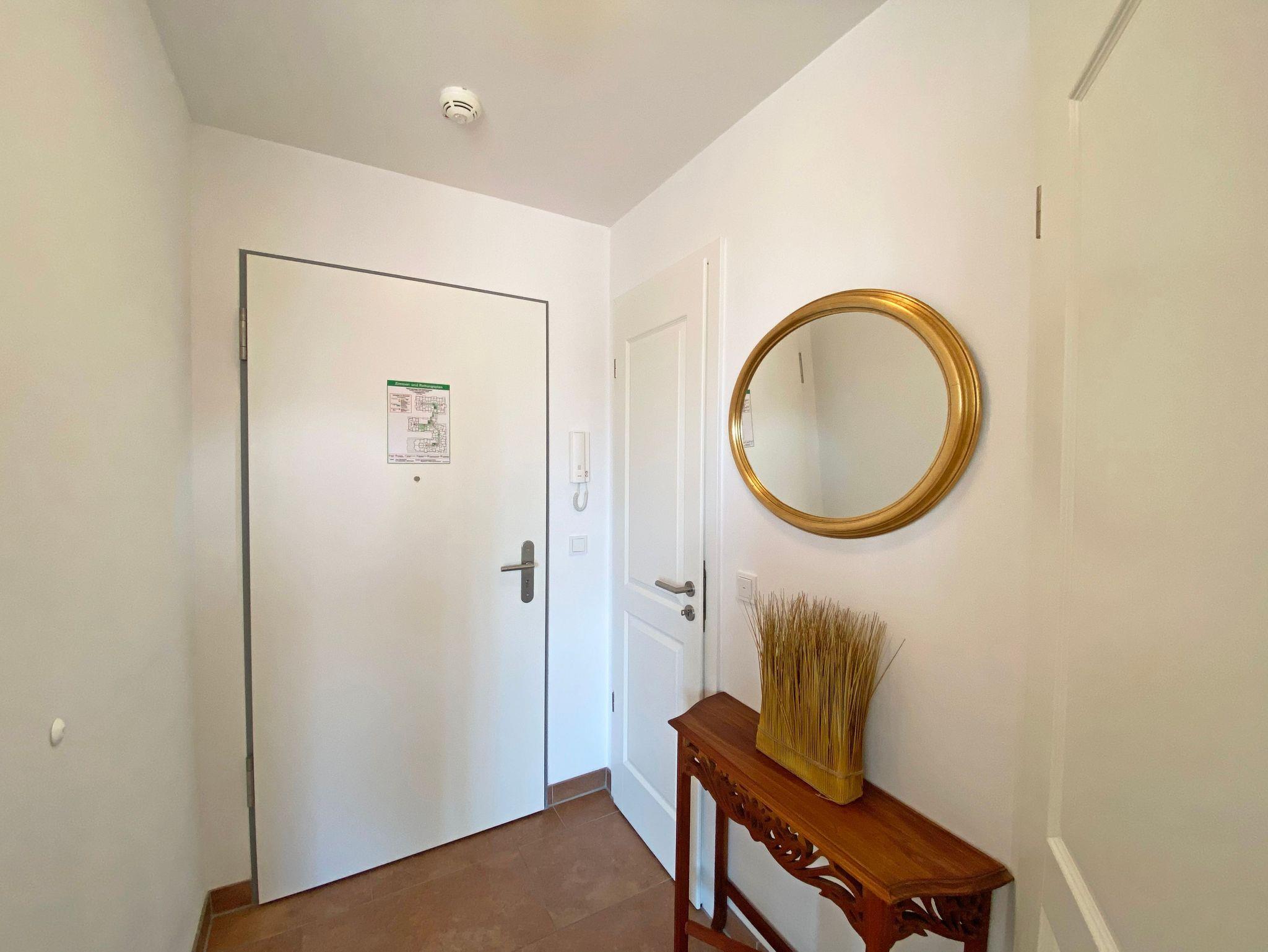 Unser geräumiges ca. 48 qm großes Nichtraucher-Appartement „Ostseekiesel“ befindet sich in der 3. Etage und ist für max. 2 Erwachsene + 1 Kleinkind bis 3 Jahre im Kinderreisebett geeignet. Sie finden hier einen kombinierten Wohn- und Essbereich mit offener Küchenzeile. Diese ist voll ausgestattet mit Cerankochfeld, Backofen, Spülmaschine, Kühl-/Gefrierkombination, Mikrowelle, eine Kaffeemaschine, eine Tassimo Kapselmaschine, ein Toaster, ein Wasserkocher sowie weiteren diversen Küchenutensilien. Der lichtdurchflutete und offene Wohnbereich mit seinen großen Fensterfronten bietet Ihnen eine gemütliche Eckcouch + Hocker, eine Leselampe, ein Regal mit Urlaubslektüre sowie Gesellschaftsspiele, ein TV-Board mit LED-TV, eine Musikanlage mit DAB-Radio von Teufel sowie einen WLAN-Anschluss, welcher für Sie inklusive ist. Von hier gelangen Sie auf den bestuhlten Balkon, welcher Richtung Südosten ausgerichtet ist. Im Schlafzimmer befindet sich ein Doppelbett (1,80m x 2,00m), Nachttischablagen sowie einen großen Kleiderschrank. Für einen ruhigen Schlaf sorgen eine Verdunklungsmöglichkeit sowie ein Insektenschutzgitter. Das innenliegende Badezimmer wird durch eine ebenerdige Dusche, einen Waschtisch, ein WC, einen Handtuchtrockner, einen Kosmetikspiegel und einen Fön abgerundet. Im kleinen zusätzlichen Abstellraum befinden sich zusätzlich nützliche Utensilien wie z.B. Reinigungsutensilien sowie ein Wäscheständer. Für unsere kleinen Gäste steht Ihnen ein Kinderreisebett (ohne Matratze) sowie ein Hochstuhl inklusive zur Verfügung. Haustiere sind in der Wohnung nicht erlaubt. Eine Waschmaschine und ein Trockner stehen Ihnen im Keller des Hauses gegen eine Gebühr zu Verfügung. Mit dem Fahrstuhl des Hauses A gelangen sie in das Untergeschoss der Meeresblickanlage, wo Sie ein großzügiger und heller Wellnessbereich erwartet. Hier können sie in einem Pool kleine Bahnen schwimmen, in 2 Saunen Ihren Kreislauf in Schwung bringen, in einem dazugehörigen Ruheraum Ihren Körper wieder beruhigen, in einer Schneckendusche sowie weiteren Duschen das kühle Nass genießen und auf einer Außenterrasse mit Außendusche die frische Luft einatmen. Ein PKW-Stellplatz (Nr.118, Einfahrtshöhe 2,00m) ist für Sie in der Tiefgarage reserviert. Die Erstausstattung eines Wäschepaketes (komplette Bettwäsche, 1 Duschhandtuch, 2 kleine Handtücher) können Sie bis 14 Tage vor Anreise gegen einen Aufpreis dazu buchen oder durch eigene ergänzen. Ab 2 gebuchten Paketen erhalten Sie einmalig 1 Geschirrhandtuch und 1 Duschvorleger hinzu.