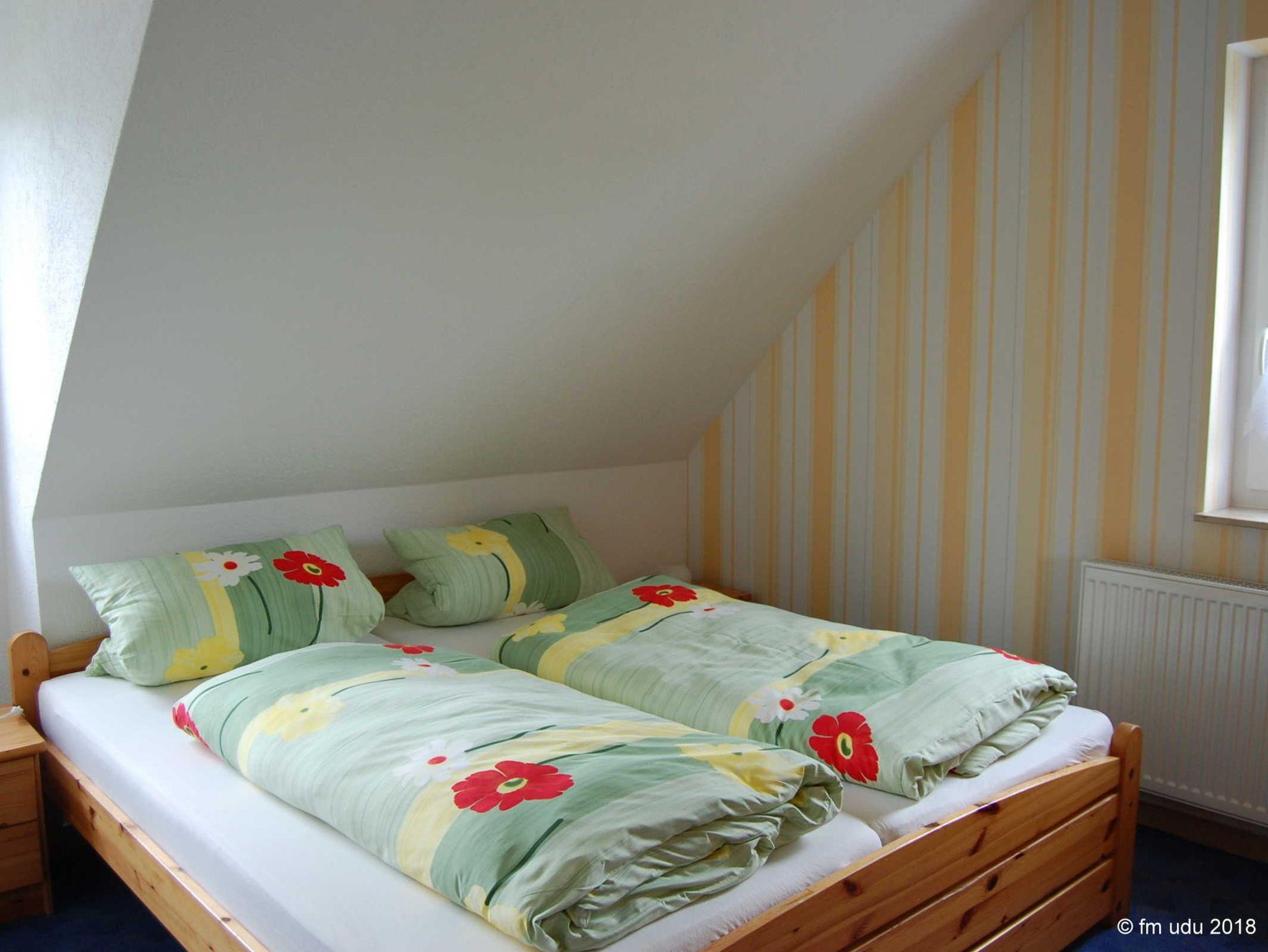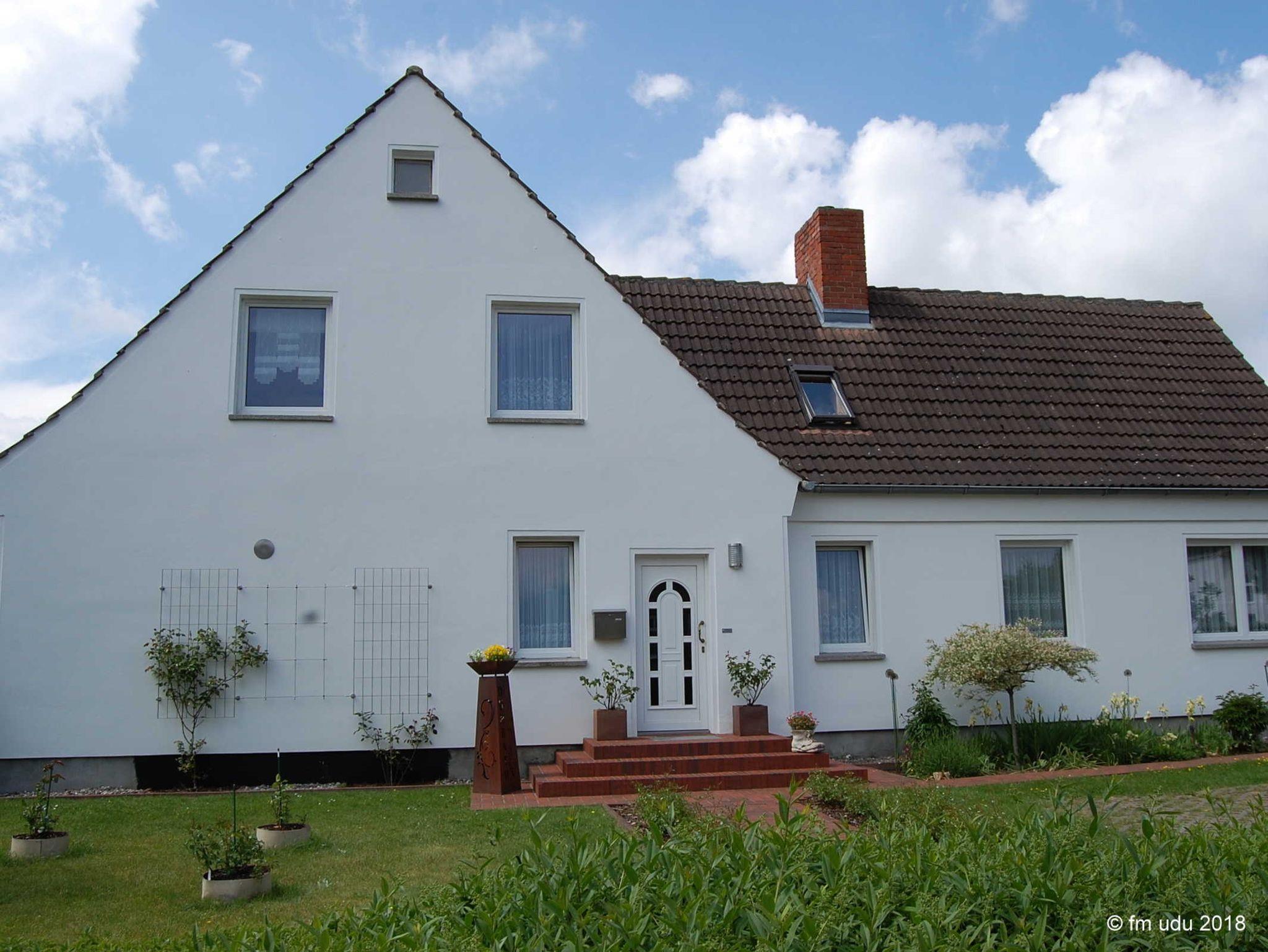 Die Wohnfläche des Ferienhauses beträgt ca. 105 m². Ebenerdig befinden sich der Flur, ein Wohnraum mit Sitzmöbeln, Flachbildschirm-TV, Radio, eine offene Küchenzeile, komplett ausgestattet mit zum Beispiel E-Herd, Backofen, Mikrowelle und Geschirrspüler, ein Schlafzimmer mit Doppelbett und ein kleines Bad mit Dusche und WC.