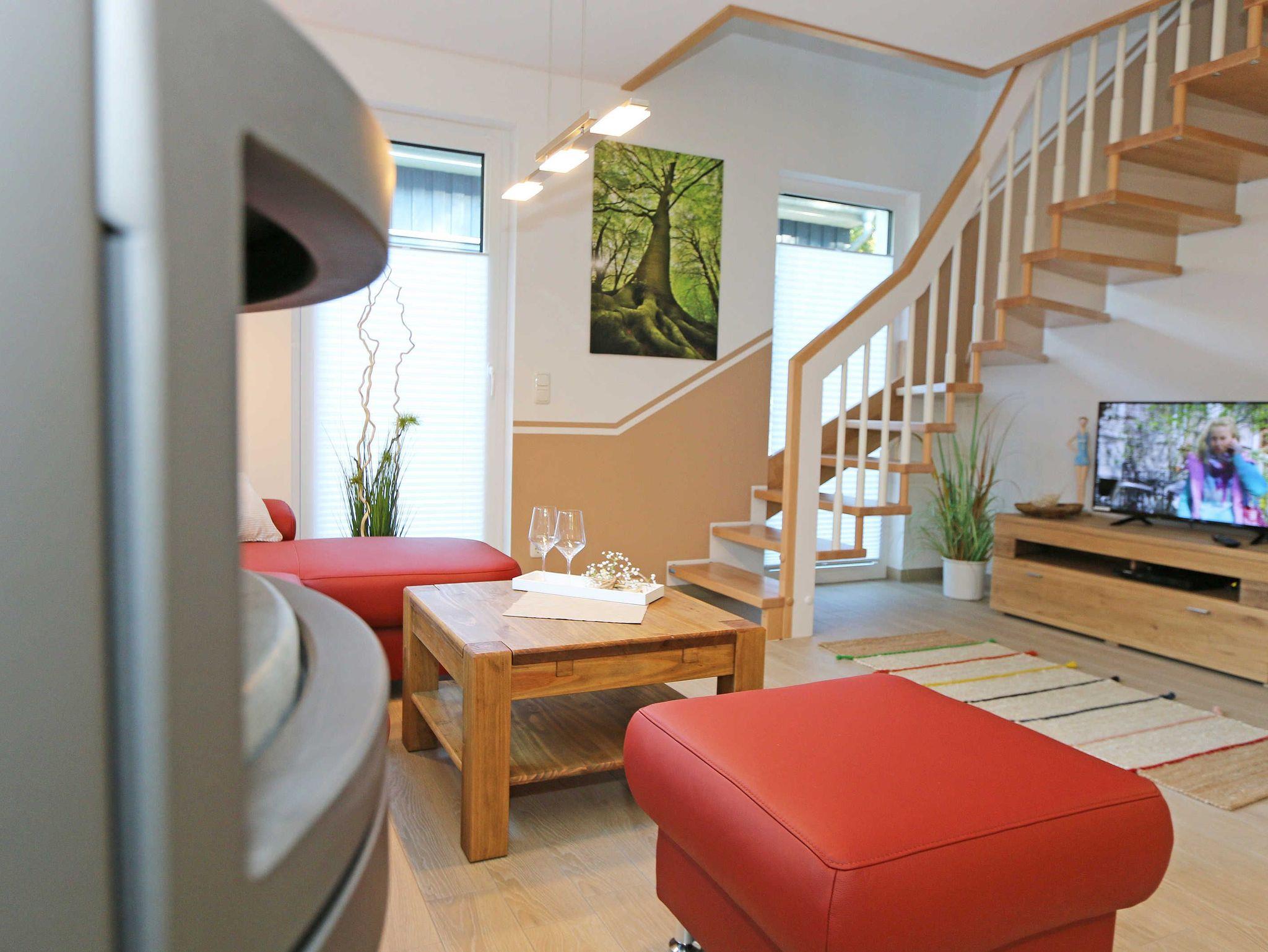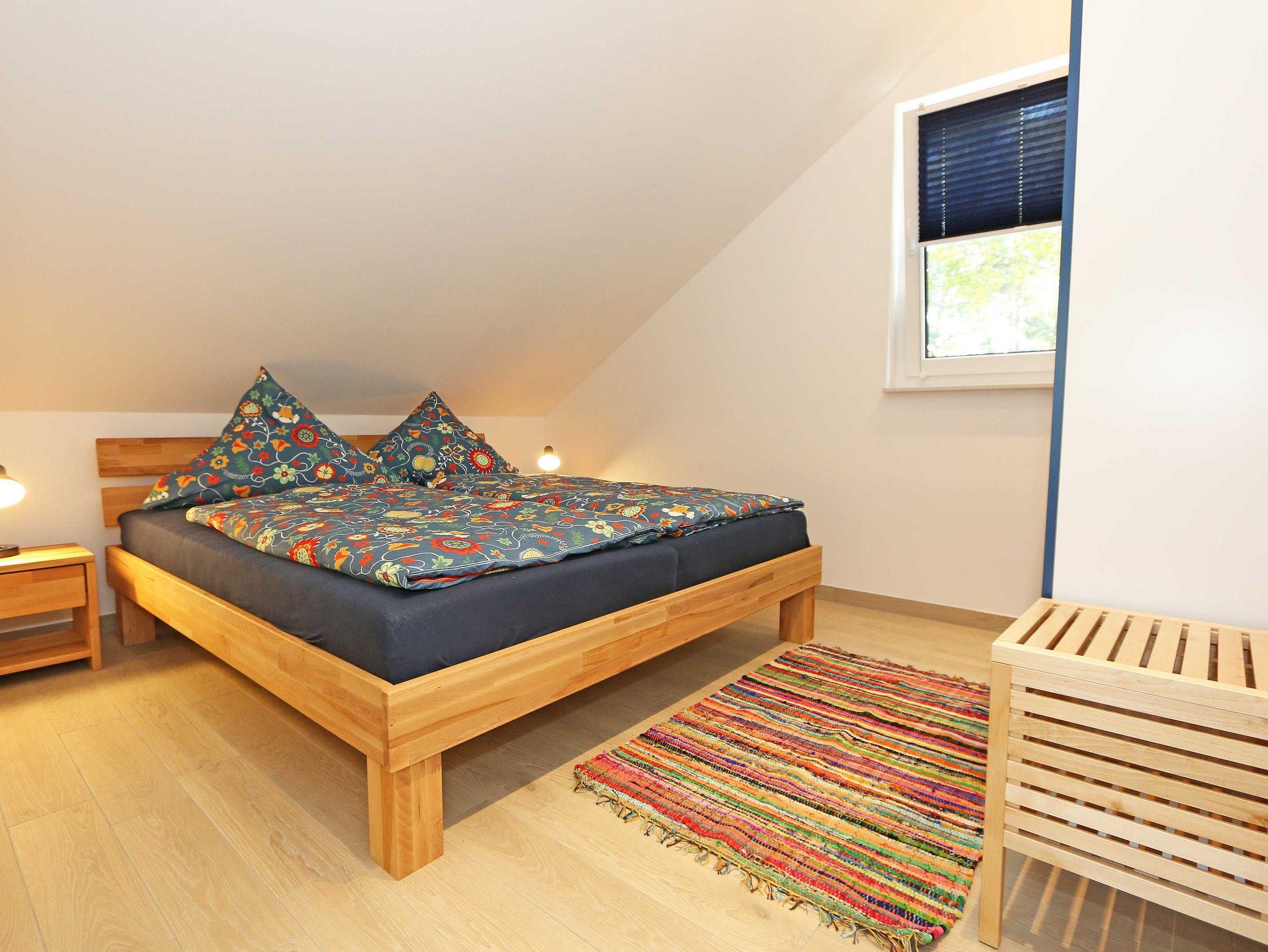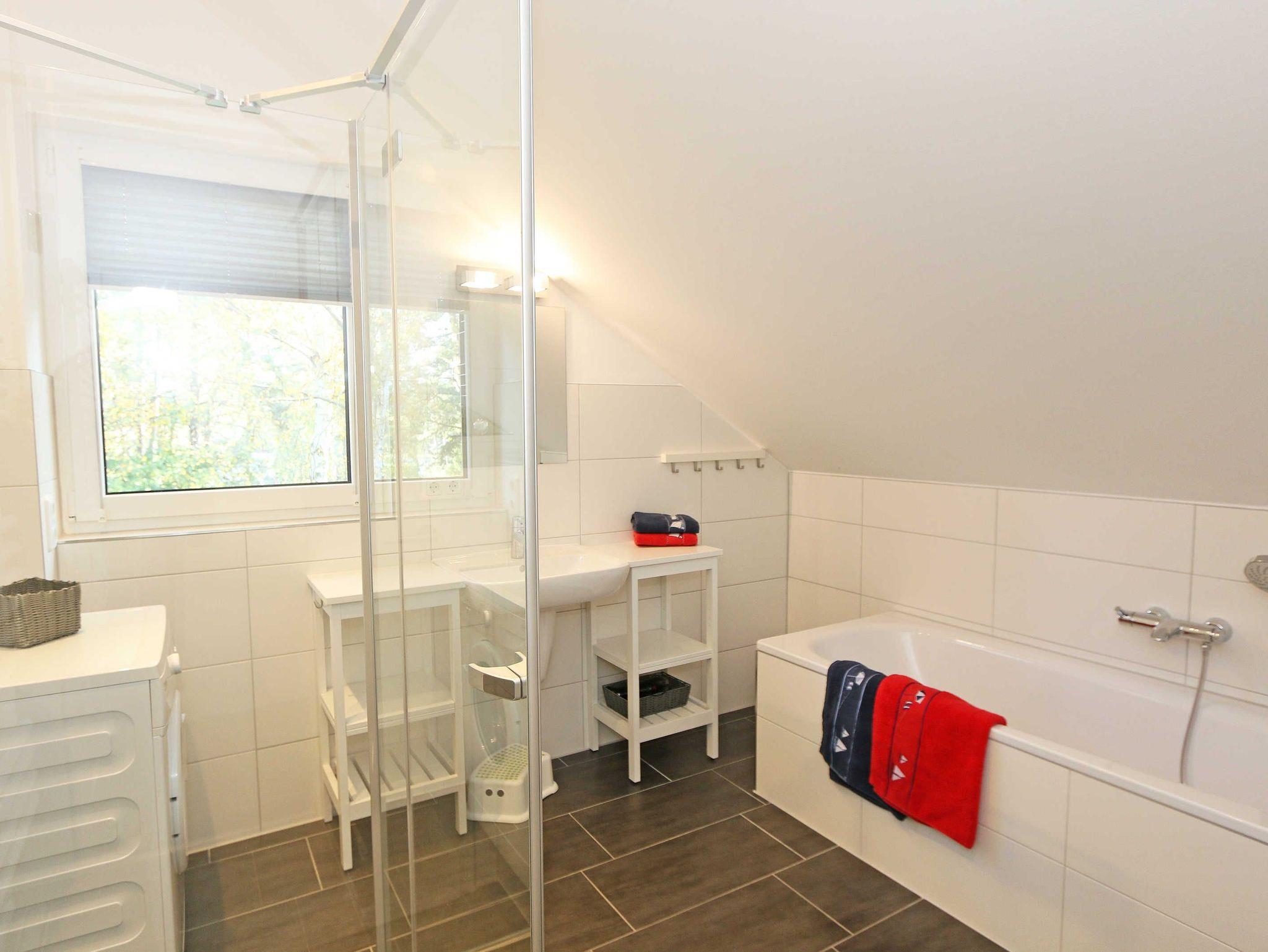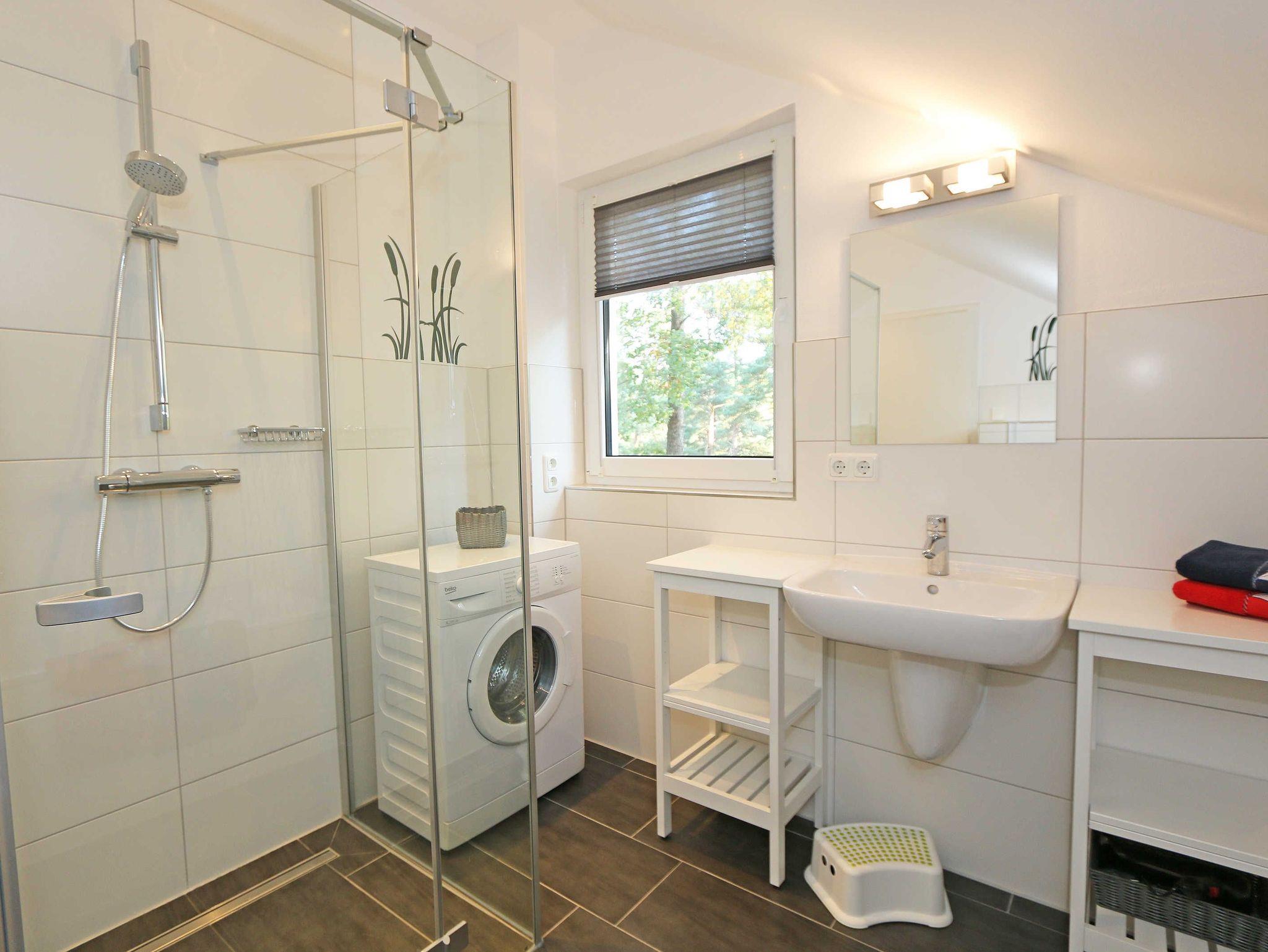 Das gemütliche ca. 95 qm große Nichtraucher Ferienhaus „Traumland“ im skandinavischen Stil mit Kamin und Sauna ist optimal geeignet für 6 Erwachsene und 1 Kleinkind bis 3 Jahre im Kinderreisebett. Durch einen kleinen Eingangsflur mit Garderobe und Schuhregalen betreten Sie Ihr Strandhaus. Im Erdgeschoss befindet sich der Wohn-/Essbereich mit gemütlicher Ledercouchecke, Barvitrine, Highboard mit Smart-TV, Blu-Ray-Player und Mini-Stereoanlage. Auch auf einen Internetzugang (WLAN) brauchen Sie nicht verzichten. Dieser ist für Sie inklusive. Wer es abends gern noch ein bisschen gemütlicher mag, der zündet den Kamin im Wohnraum an und lässt den Tag ausklingen. Dem Wohnbereich angeschlossen ist die Einbauküche, die mit allen Geräten ausgestattet ist, wie Sie es von zu Hause kennen: Geschirrspüler, Kühlschrank mit Gefrierfach, Ceranherd mit Backofen, Mikrowelle, Senseo Padmaschine, Kaffeemaschine, Wasserkocher, Toaster, Stabmixer und ambitionierte Hobbyköche finden eine große Auswahl an Küchenutensilien. Der große Esstisch bietet Platz für 6 Personen. Vom Wohnbereich gibt es einen direkten Zugang zur gen Süden gelegenen Terrasse, welche mit bequemen Terrassenmöbeln ausgestattet ist. Zum Grillen können Sie den Steingrill nutzen. Das freundlich eingerichtete Schlafzimmer im Erdgeschoss ist mit einem Doppelbett (1,60 m x 2,00 m) mit verstellbaren Lattenrosten, Nachttischkonsolen, Leseleuchten und Kleiderschrank ausgestattet. Das Bad auf gleicher Ebene verfügt über eine ebenerdige Dusche und Sauna, welches Ihr „Wellnessbereich“ zum Verwöhnen ist! Auch ein Waschplatz, WC und Fön gehören dazu. Über eine Buchenholztreppe erreichen Sie das lichtdurchflutete Obergeschoss. In der maritim gestalteten Galerie gibt es eine kuschlige Relax-Ecke, Leseleuchte und Highboard mit Smart-TV. Für Ihre Kleinen haben wir eine kleine Kinderspielecke mit Tisch und Stühlen eingerichtet. Zwei weitere Schlafzimmer mit großen Doppelbetten (1,80 m x 2,00 m) mit verstellbaren Lattenrosten, Kleiderschränken, Ablagen mit Leseleuchten sowie ein zweites großes Bad mit ebenerdiger Dusche, WC, Waschplatz, Kosmetikspiegel, Badewanne und Waschmaschine sind ebenfalls im Obergeschoss untergebracht. Das Haus verfügt in allen Räumlichkeiten über eine Fußbodenheizung. In den Schlafräumen, Bädern und der Galerie finden Sie Insektenschutzgitter. Für die kleinen Gäste halten wir 1x Hochstuhl, Bettgitter, 1x Kinderreisebett (ohne Zusatzmatratze/ Inlett) und ein Treppenschutzrollo (im Obergeschoss) bereit. Auf dem Grundstück steht unseren Gästen ein PKW-Stellplatz (Nr. 5) zur Verfügung. Ihre geliehenen oder mitgebrachten Fahrräder können Sie am Haus (einbetonierter Fahrradbügel) abstellen oder im Außenabstellraum verschließen. 1 Haustier ist mit seinem eigenen Schlafplatz gegen eine Gebühr ein gern gesehener Gast. Die Erstausstattung eines Wäschepaketes (komplette Bettwäsche, 1 Duschhandtuch, 2 kleine Handtücher) können Sie bis 14 Tage vor Anreise gegen einen Aufpreis dazu buchen oder durch eigene ergänzen. Ab 2 gebuchten Paketen erhalten Sie einmalig 1 Geschirrhandtuch und 1 Duschvorleger dazu.