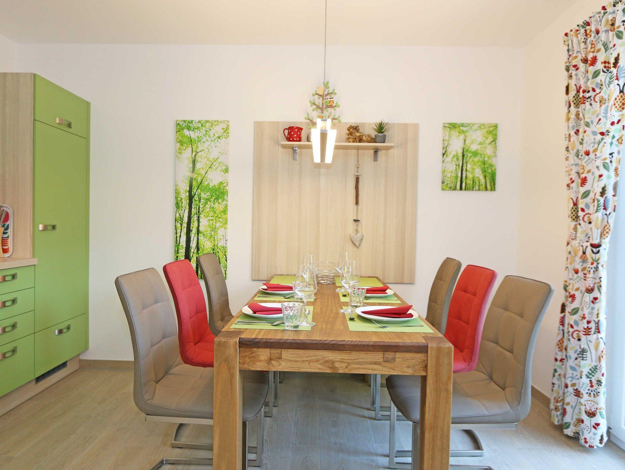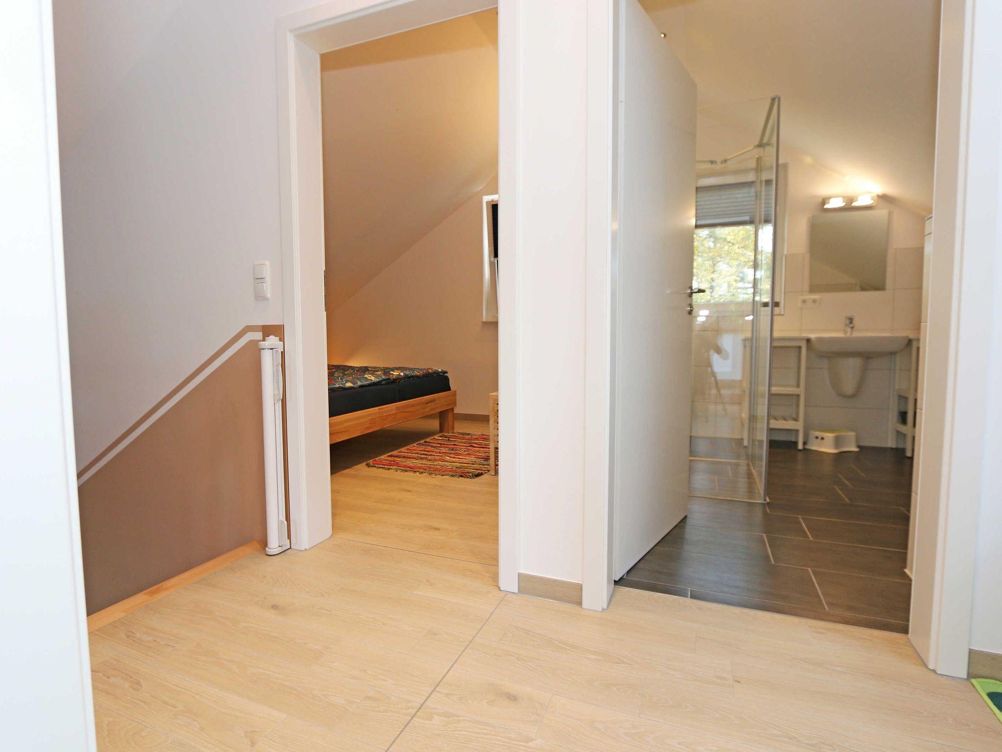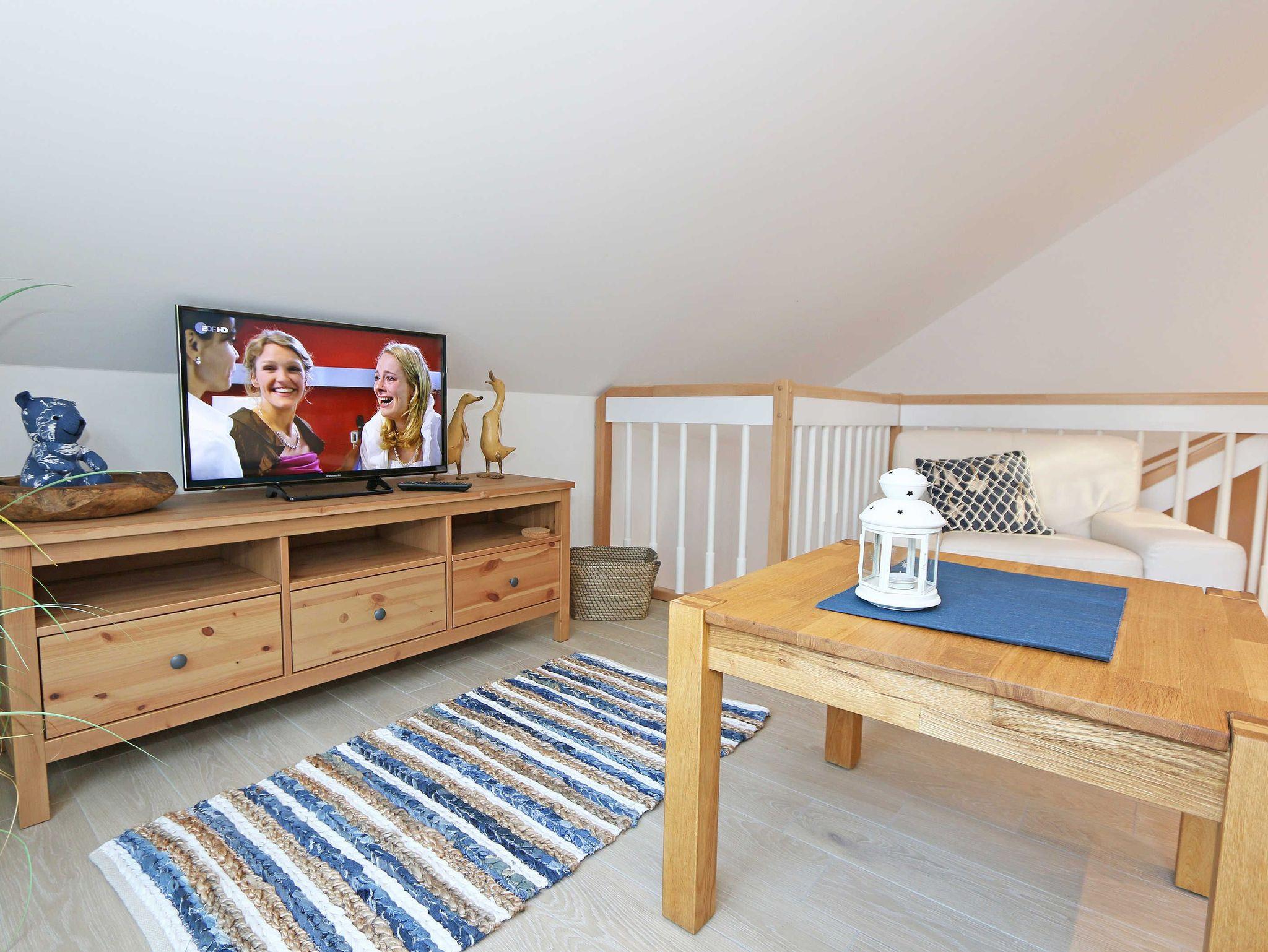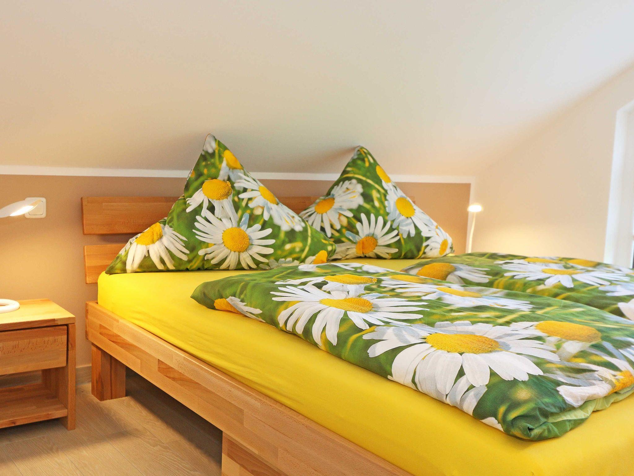 Das gemütliche ca. 95 qm große Nichtraucher Ferienhaus „Traumland“ im skandinavischen Stil mit Kamin und Sauna ist optimal geeignet für 6 Erwachsene und 1 Kleinkind bis 3 Jahre im Kinderreisebett. Durch einen kleinen Eingangsflur mit Garderobe und Schuhregalen betreten Sie Ihr Strandhaus. Im Erdgeschoss befindet sich der Wohn-/Essbereich mit gemütlicher Ledercouchecke, Barvitrine, Highboard mit Smart-TV, Blu-Ray-Player und Mini-Stereoanlage. Auch auf einen Internetzugang (WLAN) brauchen Sie nicht verzichten. Dieser ist für Sie inklusive. Wer es abends gern noch ein bisschen gemütlicher mag, der zündet den Kamin im Wohnraum an und lässt den Tag ausklingen. Dem Wohnbereich angeschlossen ist die Einbauküche, die mit allen Geräten ausgestattet ist, wie Sie es von zu Hause kennen: Geschirrspüler, Kühlschrank mit Gefrierfach, Ceranherd mit Backofen, Mikrowelle, Senseo Padmaschine, Kaffeemaschine, Wasserkocher, Toaster, Stabmixer und ambitionierte Hobbyköche finden eine große Auswahl an Küchenutensilien. Der große Esstisch bietet Platz für 6 Personen. Vom Wohnbereich gibt es einen direkten Zugang zur gen Süden gelegenen Terrasse, welche mit bequemen Terrassenmöbeln ausgestattet ist. Zum Grillen können Sie den Steingrill nutzen. Das freundlich eingerichtete Schlafzimmer im Erdgeschoss ist mit einem Doppelbett (1,60 m x 2,00 m) mit verstellbaren Lattenrosten, Nachttischkonsolen, Leseleuchten und Kleiderschrank ausgestattet. Das Bad auf gleicher Ebene verfügt über eine ebenerdige Dusche und Sauna, welches Ihr „Wellnessbereich“ zum Verwöhnen ist! Auch ein Waschplatz, WC und Fön gehören dazu. Über eine Buchenholztreppe erreichen Sie das lichtdurchflutete Obergeschoss. In der maritim gestalteten Galerie gibt es eine kuschlige Relax-Ecke, Leseleuchte und Highboard mit Smart-TV. Für Ihre Kleinen haben wir eine kleine Kinderspielecke mit Tisch und Stühlen eingerichtet. Zwei weitere Schlafzimmer mit großen Doppelbetten (1,80 m x 2,00 m) mit verstellbaren Lattenrosten, Kleiderschränken, Ablagen mit Leseleuchten sowie ein zweites großes Bad mit ebenerdiger Dusche, WC, Waschplatz, Kosmetikspiegel, Badewanne und Waschmaschine sind ebenfalls im Obergeschoss untergebracht. Das Haus verfügt in allen Räumlichkeiten über eine Fußbodenheizung. In den Schlafräumen, Bädern und der Galerie finden Sie Insektenschutzgitter. Für die kleinen Gäste halten wir 1x Hochstuhl, Bettgitter, 1x Kinderreisebett (ohne Zusatzmatratze/ Inlett) und ein Treppenschutzrollo (im Obergeschoss) bereit. Auf dem Grundstück steht unseren Gästen ein PKW-Stellplatz (Nr. 5) zur Verfügung. Ihre geliehenen oder mitgebrachten Fahrräder können Sie am Haus (einbetonierter Fahrradbügel) abstellen oder im Außenabstellraum verschließen. 1 Haustier ist mit seinem eigenen Schlafplatz gegen eine Gebühr ein gern gesehener Gast. Die Erstausstattung eines Wäschepaketes (komplette Bettwäsche, 1 Duschhandtuch, 2 kleine Handtücher) können Sie bis 14 Tage vor Anreise gegen einen Aufpreis dazu buchen oder durch eigene ergänzen. Ab 2 gebuchten Paketen erhalten Sie einmalig 1 Geschirrhandtuch und 1 Duschvorleger dazu.