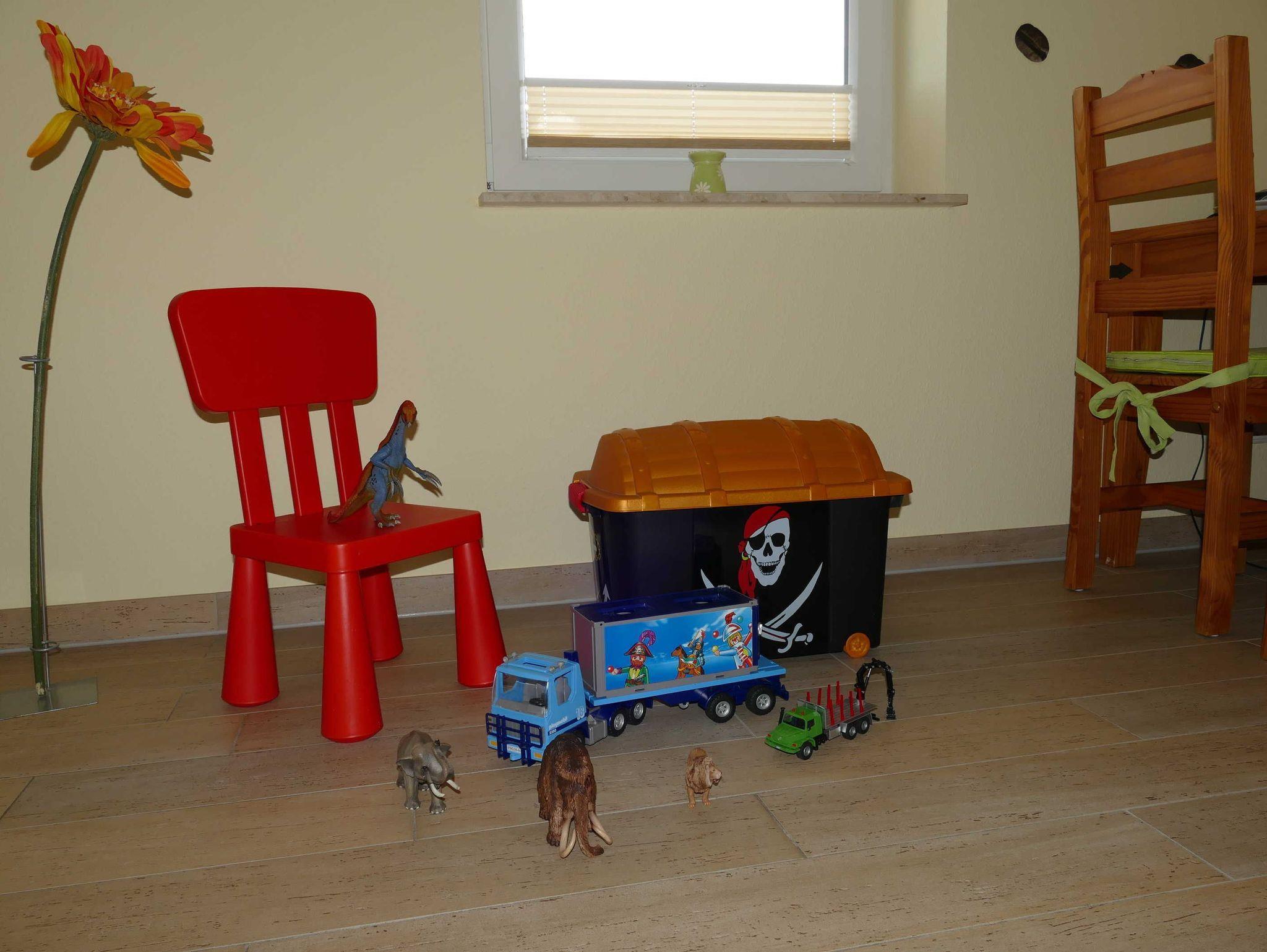 In der kleinen Spielecke sind die Kinder die Helden im Kampf mit den Dinos und die Führer ihrer Fahrzeuge. Vorhänge und Rollos an allen Fenstern runden die gemütliche Wohnatmosphäre in Ihrem Zuhause auf Zeit ab.