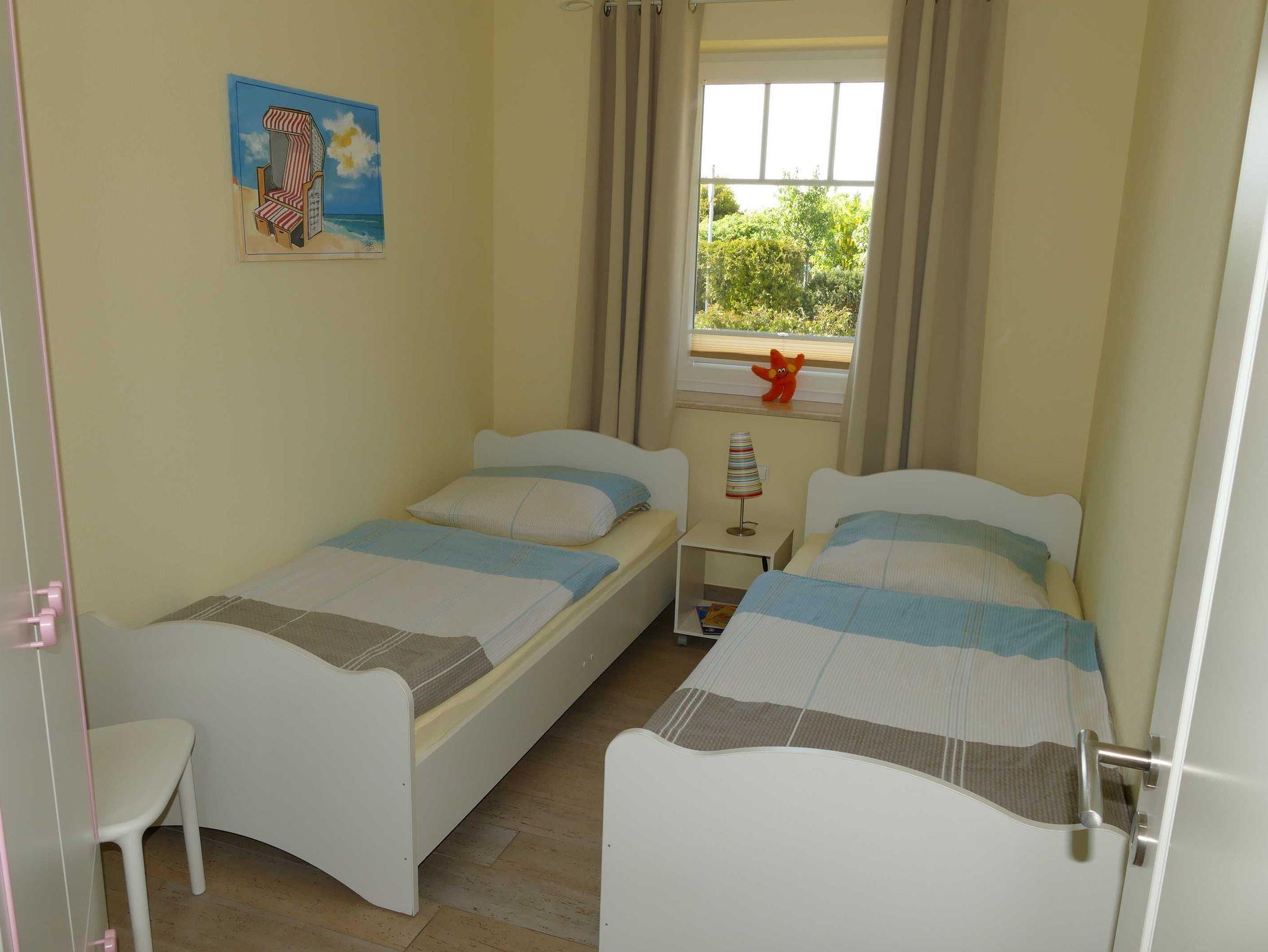 Das 2. Schlafzimmer, welches am 1. Schlafzimmer gelegen ist, wirkt durch zwei Einzelbetten (0,90 m x 2,00 m), Nachtischanlage, einem Kleiderschrank sowie einem Stuhl, der Ihre Kleidungsstücke aufnehmen kann ganz besonders einladend. Hier verschließen Verdunklungsvorhänge das Eindringen der Sonne am frühen Morgen sowie das Fliegengitter das Eindringen von Insekten.