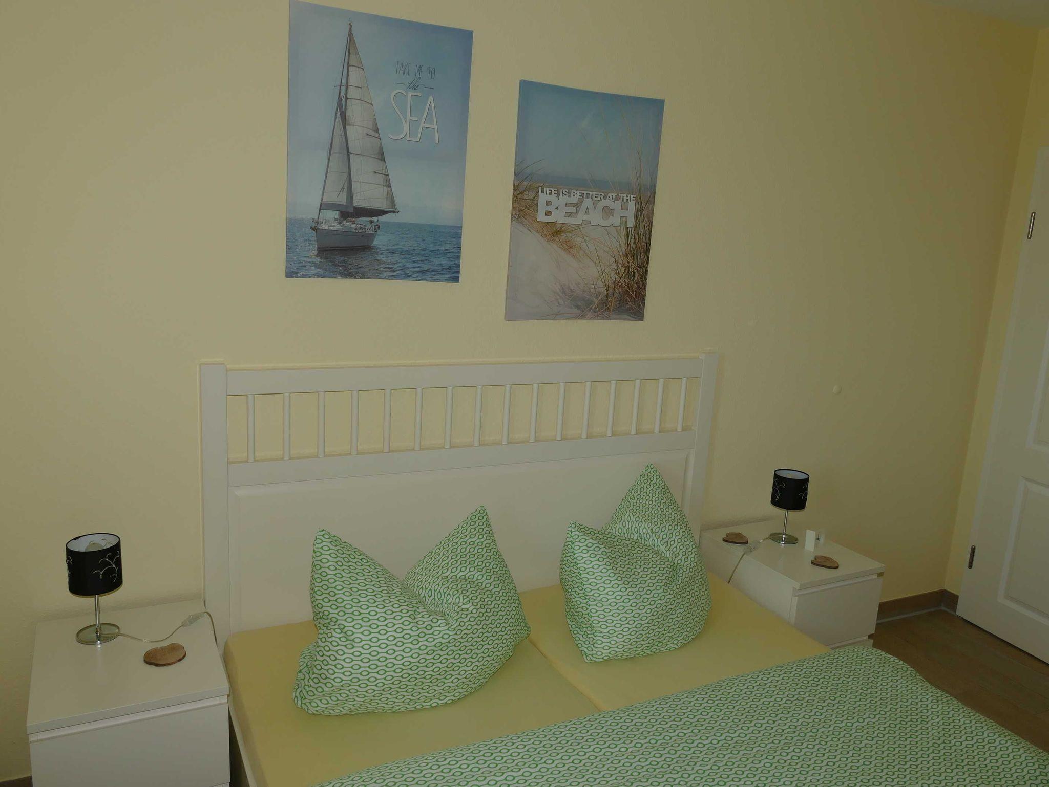 Der gesamte Fußbodenbereich ist mit modernen Fliesen in heller Holzoptik und Fußbodenheizung versehen und unterstreicht den wohnlichen Charakter. Die Ferienwohnung verfügt über zwei Schlafzimmer, einem geräumigen Wohn- und Essbereich sowie einem Bad mit ebenerdiger/barrierefrei Dusche und Fön.