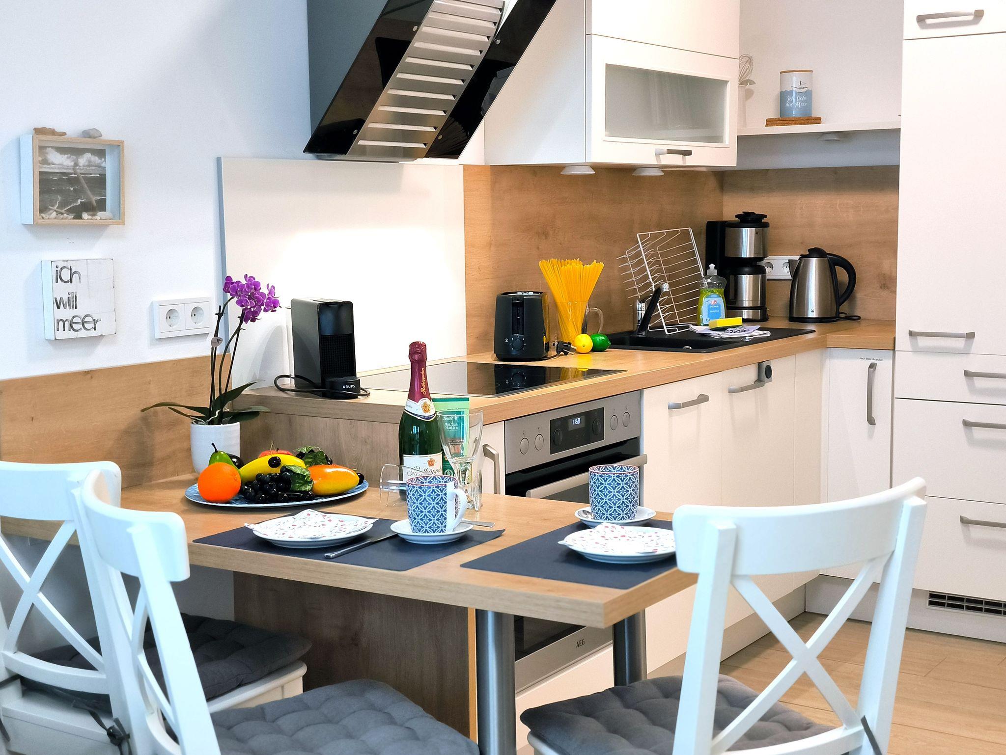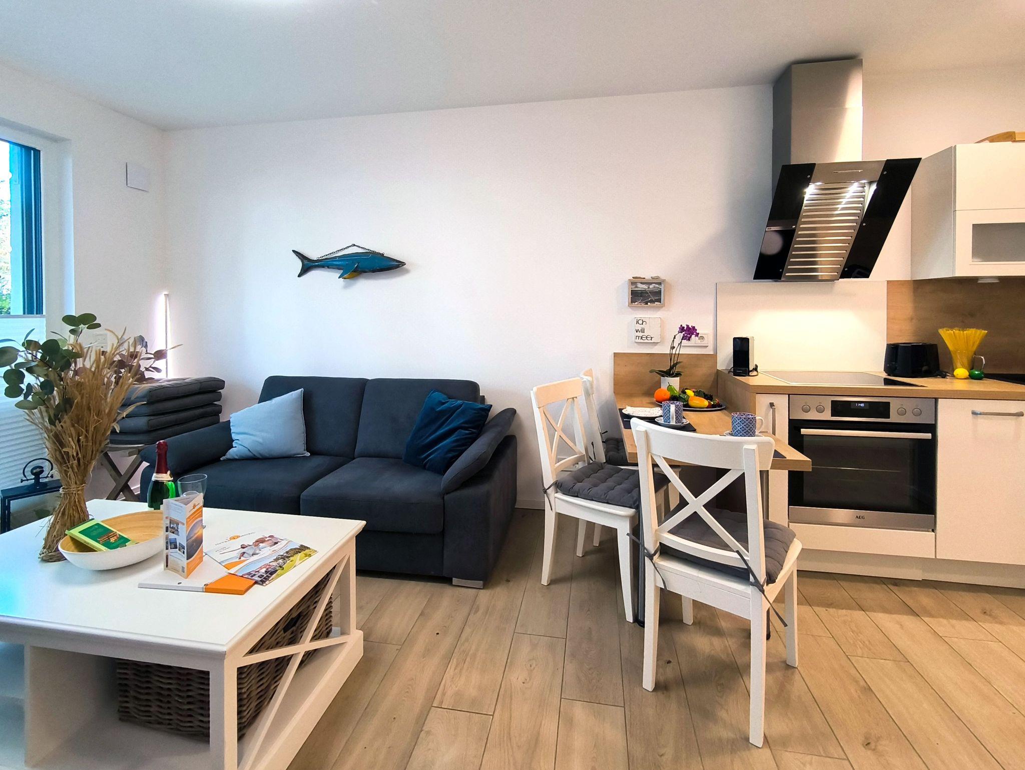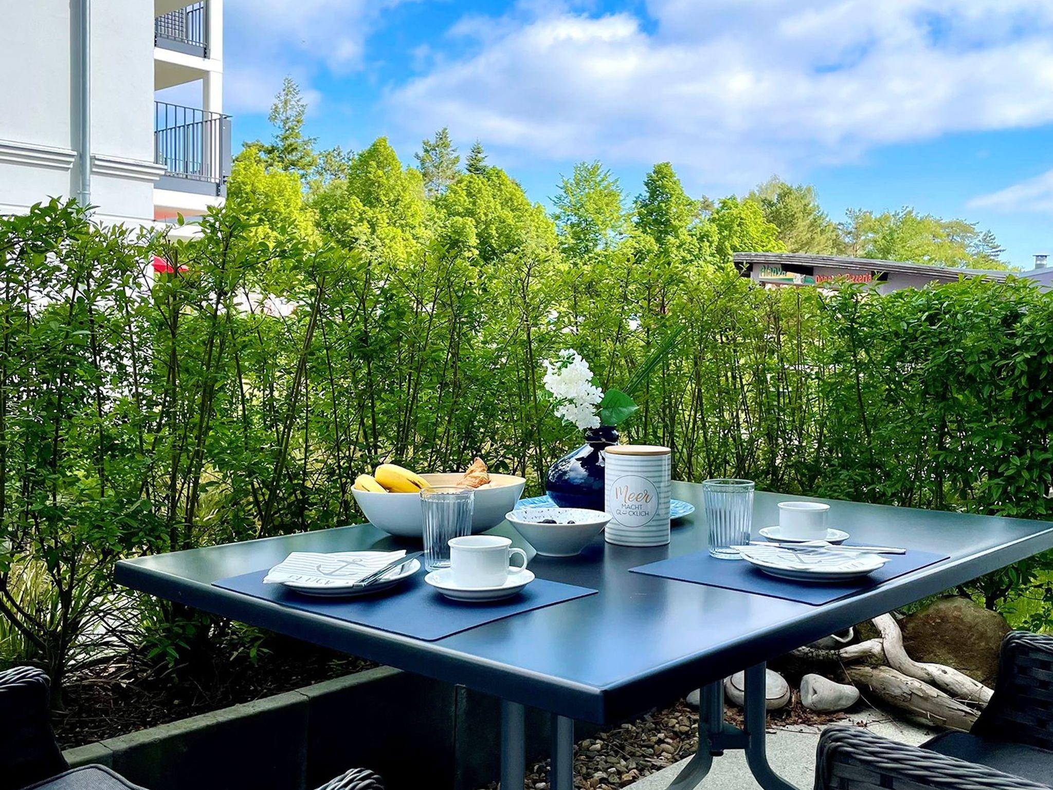 Kleine, moderne und hell eingerichtete Ferienwohnung im Erdgeschoss des 2019 neu eröffneten Villen-Ensemble. Genießen Sie den zur Wohnung gehörenden kleinen Garten und die direkte Nähe zum Strand und Meer.