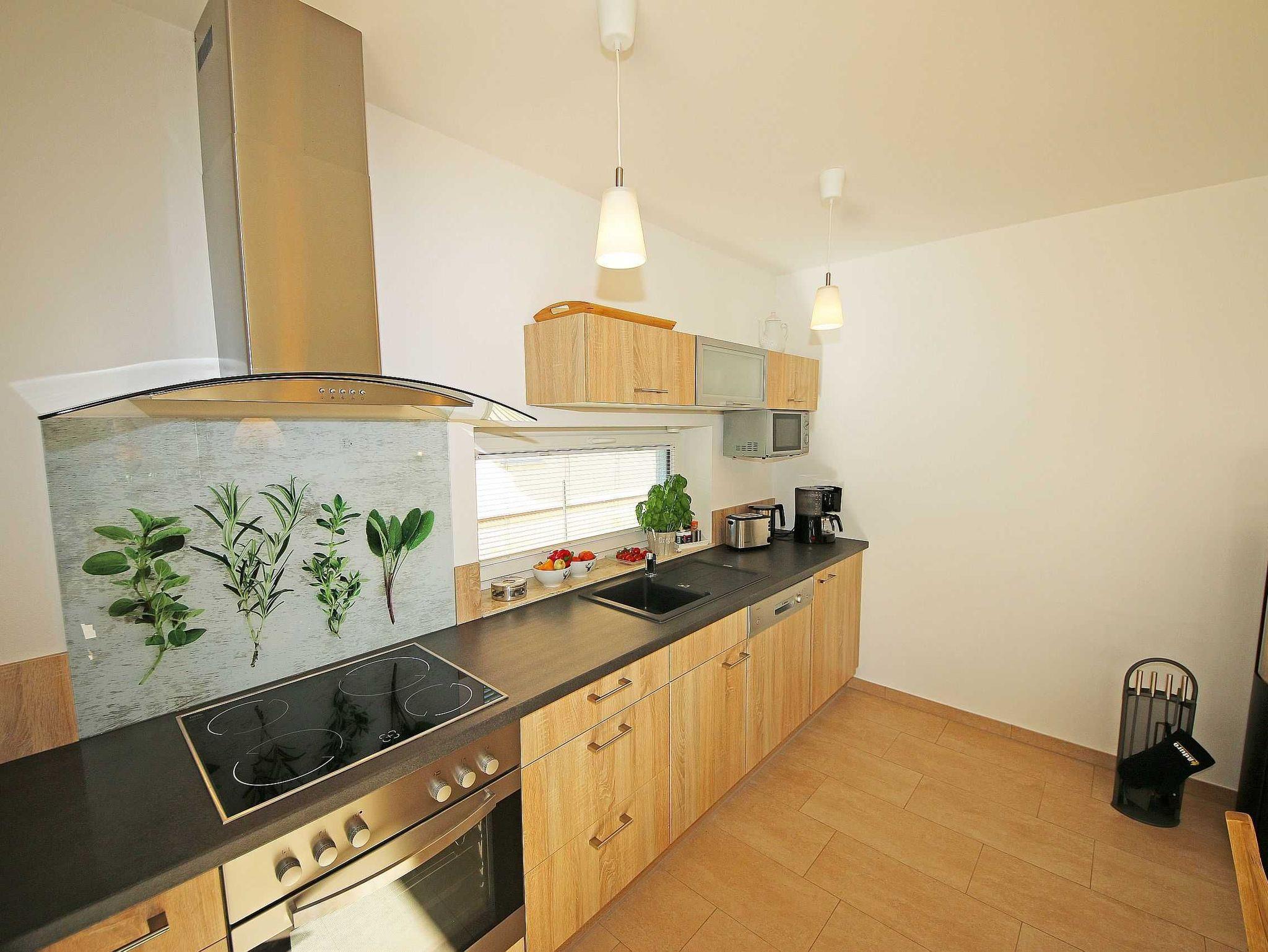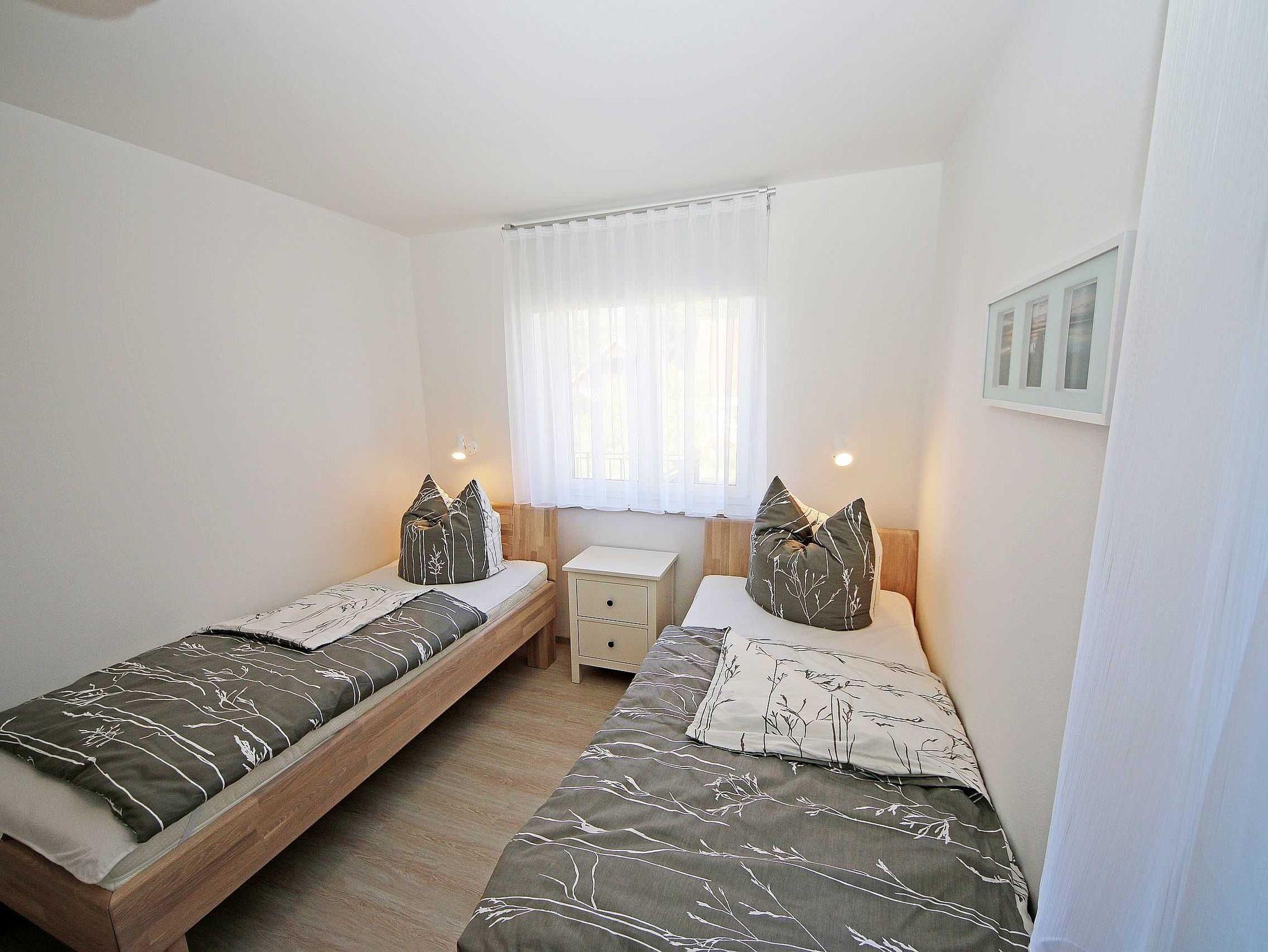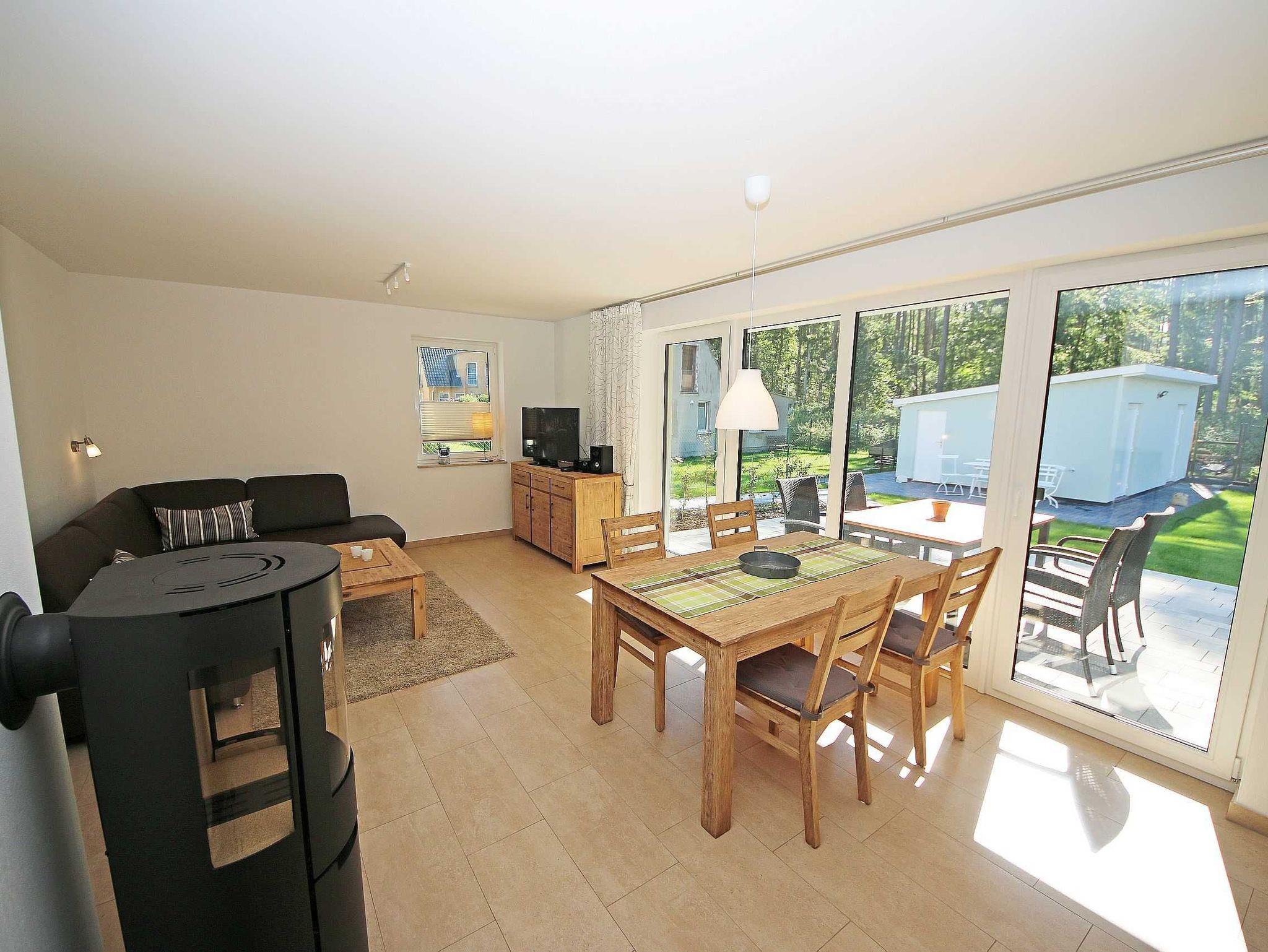 Die gebaute, modern eingerichtete Ferienwohnung hat eine Größe von ca. 65 qm und ist mit ausgewählten Stilelementen versehen. Sie bietet Platz für 2 bis 4 Erwachsene und 1 Kleinkind bis 3 Jahre im Kinderreisebett. Die Allergikerfreundliche Nichtraucherwohnung befindet sich im Erdgeschoss und ist daher gut für Familien mit Kindern und für ältere Gäste geeignet. Zu der Wohnung gehört eine bestuhlte, mit Sonnenschirm überdachte Terrasse mit Blick in den Küstenwald sowie ein zusätzlicher Grillplatz. Der Wohnbereich ist mit einer gemütlichen Eckcouch (Leder), Couchtisch, Leselampe sowie Sideboard ausgestattet. Zu den Unterhaltungsmöglichkeiten in den Abendstunden oder bei schlechtem Wetter gehören ein Smart-TV, Blu-Ray-Player sowie eine Hi-Fi Kompaktanlage mit CD- und USB-Anschluss. Auch auf einen Internetanschluss (WLAN) brauchen Sie nicht verzichten. Dieser ist inklusive. Ein Kaminofen für wohlige Wärme rundet die Gemütlichkeit ab. Kaminholz ist nicht inklusive. Die komplett ausgestattete Küchenzeile mit Ceranfeld, Backofen, Geschirrspüler, Kühlschrank mit Eisfach, Mikrowelle, Kaffeemaschine, Wasserkocher, Toaster, diverse Küchenutensilien wird durch den Essplatz am Panoramafenster komplettiert. Einer der 2 Schlafräume ist mit einem Doppelbett (1,80m x 2,00m), Nachttischablagen und einem geräumigen Kleiderschrank ausgestattet. Das zweite Schlafzimmer hat zwei Einzelbetten (0,90m x 2,00m), Nachttischablagen und einen Kleiderschrank sowie einen LCD-TV. Die Schlafräume sind mit einem modernen Vinylbelag versehen. Die Schlafräume sind für einen angenehmen Schlaf abdunkelbar und mit Insektenschutzgittern versehen. In allen anderen Räumlichkeiten sind Fliesen verlegt worden. Für eine angenehme Wärme sorgt die im ganzen Haus verlegte Fußbodenheizung. Das Tageslichtbad wird durch eine flache Duschwanne, einen Waschtisch, ein WC, Fön und einem beheizten Handtuchhalter abgerundet. Das Gäste-WC wurde zusätzlich mit einem beheizten Handtuchtrockner ausgestattet. Beide Bäder sind ebenfalls mit Insektenschutzgittern versehen. Für unsere kleinen Gäste ist 1x Hochstuhl inklusive. Haustiere sind nicht erlaubt. Ein PKW-Stellplatz befindet sich auf dem Grundstück. Mitgebrachte oder geliehene Fahrräder können Sie im hauseigenen Abstellraum unterbringen. Die Erstausstattung eines Wäschepaketes (komplette Bettwäsche, 1 Duschhandtuch, 1 kleines Handtuch) können Sie bis 14 Tage vor Anreise gegen einen Aufpreis dazu buchen oder durch eigene ergänzen. Ab 2 gebuchten Paketen erhalten Sie einmalig 1 Geschirrhandtuch und 1 Duschvorleger hinzu.
