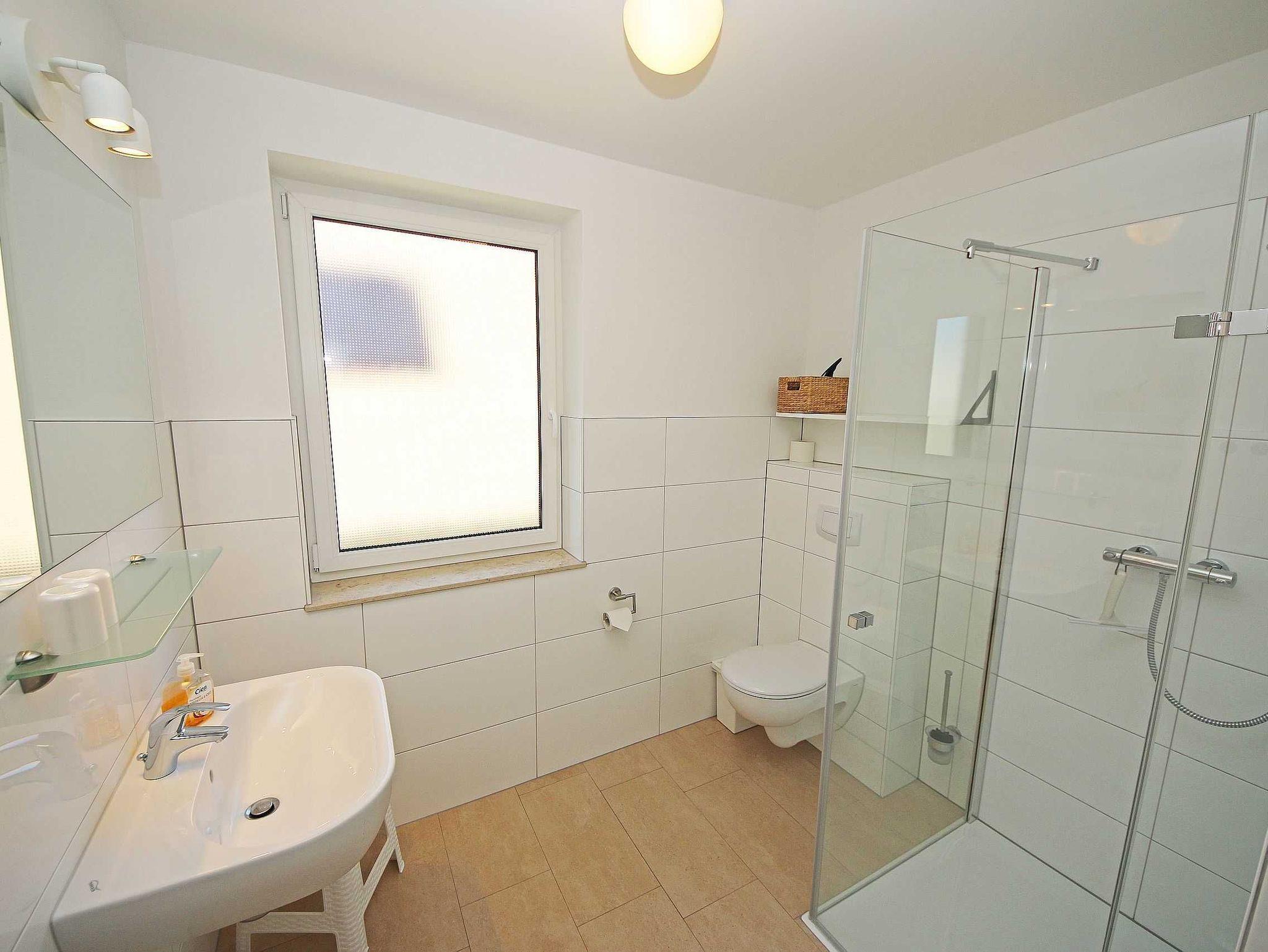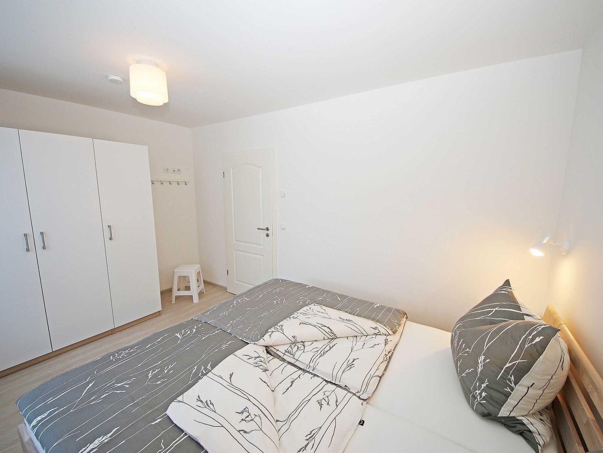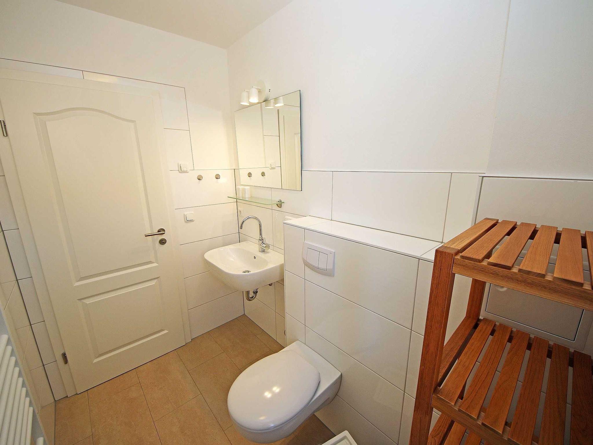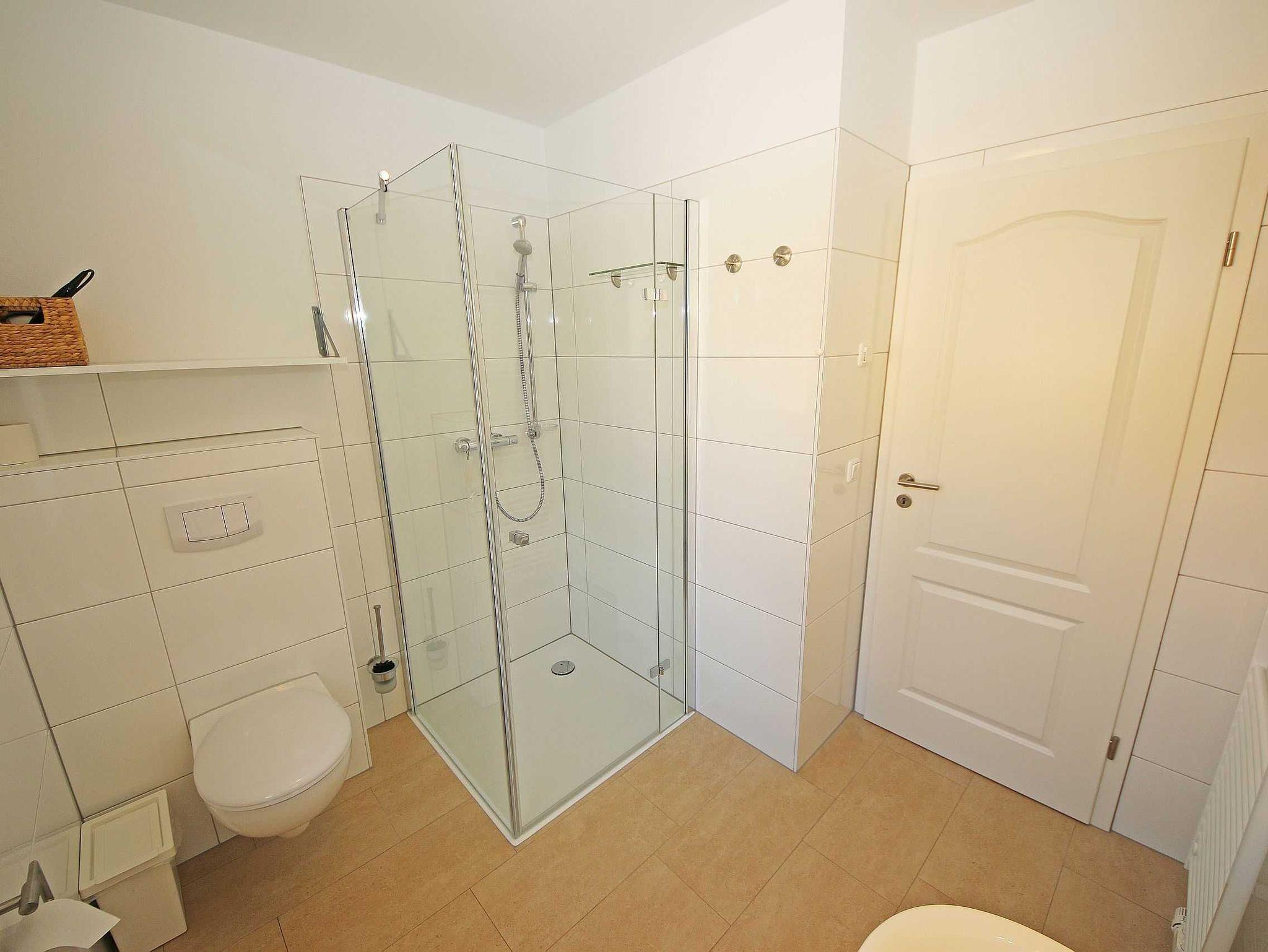 Die gebaute, modern eingerichtete Ferienwohnung hat eine Größe von ca. 65 qm und ist mit ausgewählten Stilelementen versehen. Sie bietet Platz für 2 bis 4 Erwachsene und 1 Kleinkind bis 3 Jahre im Kinderreisebett. Die Allergikerfreundliche Nichtraucherwohnung befindet sich im Erdgeschoss und ist daher gut für Familien mit Kindern und für ältere Gäste geeignet. Zu der Wohnung gehört eine bestuhlte, mit Sonnenschirm überdachte Terrasse mit Blick in den Küstenwald sowie ein zusätzlicher Grillplatz. Der Wohnbereich ist mit einer gemütlichen Eckcouch (Leder), Couchtisch, Leselampe sowie Sideboard ausgestattet. Zu den Unterhaltungsmöglichkeiten in den Abendstunden oder bei schlechtem Wetter gehören ein Smart-TV, Blu-Ray-Player sowie eine Hi-Fi Kompaktanlage mit CD- und USB-Anschluss. Auch auf einen Internetanschluss (WLAN) brauchen Sie nicht verzichten. Dieser ist inklusive. Ein Kaminofen für wohlige Wärme rundet die Gemütlichkeit ab. Kaminholz ist nicht inklusive. Die komplett ausgestattete Küchenzeile mit Ceranfeld, Backofen, Geschirrspüler, Kühlschrank mit Eisfach, Mikrowelle, Kaffeemaschine, Wasserkocher, Toaster, diverse Küchenutensilien wird durch den Essplatz am Panoramafenster komplettiert. Einer der 2 Schlafräume ist mit einem Doppelbett (1,80m x 2,00m), Nachttischablagen und einem geräumigen Kleiderschrank ausgestattet. Das zweite Schlafzimmer hat zwei Einzelbetten (0,90m x 2,00m), Nachttischablagen und einen Kleiderschrank sowie einen LCD-TV. Die Schlafräume sind mit einem modernen Vinylbelag versehen. Die Schlafräume sind für einen angenehmen Schlaf abdunkelbar und mit Insektenschutzgittern versehen. In allen anderen Räumlichkeiten sind Fliesen verlegt worden. Für eine angenehme Wärme sorgt die im ganzen Haus verlegte Fußbodenheizung. Das Tageslichtbad wird durch eine flache Duschwanne, einen Waschtisch, ein WC, Fön und einem beheizten Handtuchhalter abgerundet. Das Gäste-WC wurde zusätzlich mit einem beheizten Handtuchtrockner ausgestattet. Beide Bäder sind ebenfalls mit Insektenschutzgittern versehen. Für unsere kleinen Gäste ist 1x Hochstuhl inklusive. Haustiere sind nicht erlaubt. Ein PKW-Stellplatz befindet sich auf dem Grundstück. Mitgebrachte oder geliehene Fahrräder können Sie im hauseigenen Abstellraum unterbringen. Die Erstausstattung eines Wäschepaketes (komplette Bettwäsche, 1 Duschhandtuch, 1 kleines Handtuch) können Sie bis 14 Tage vor Anreise gegen einen Aufpreis dazu buchen oder durch eigene ergänzen. Ab 2 gebuchten Paketen erhalten Sie einmalig 1 Geschirrhandtuch und 1 Duschvorleger hinzu.