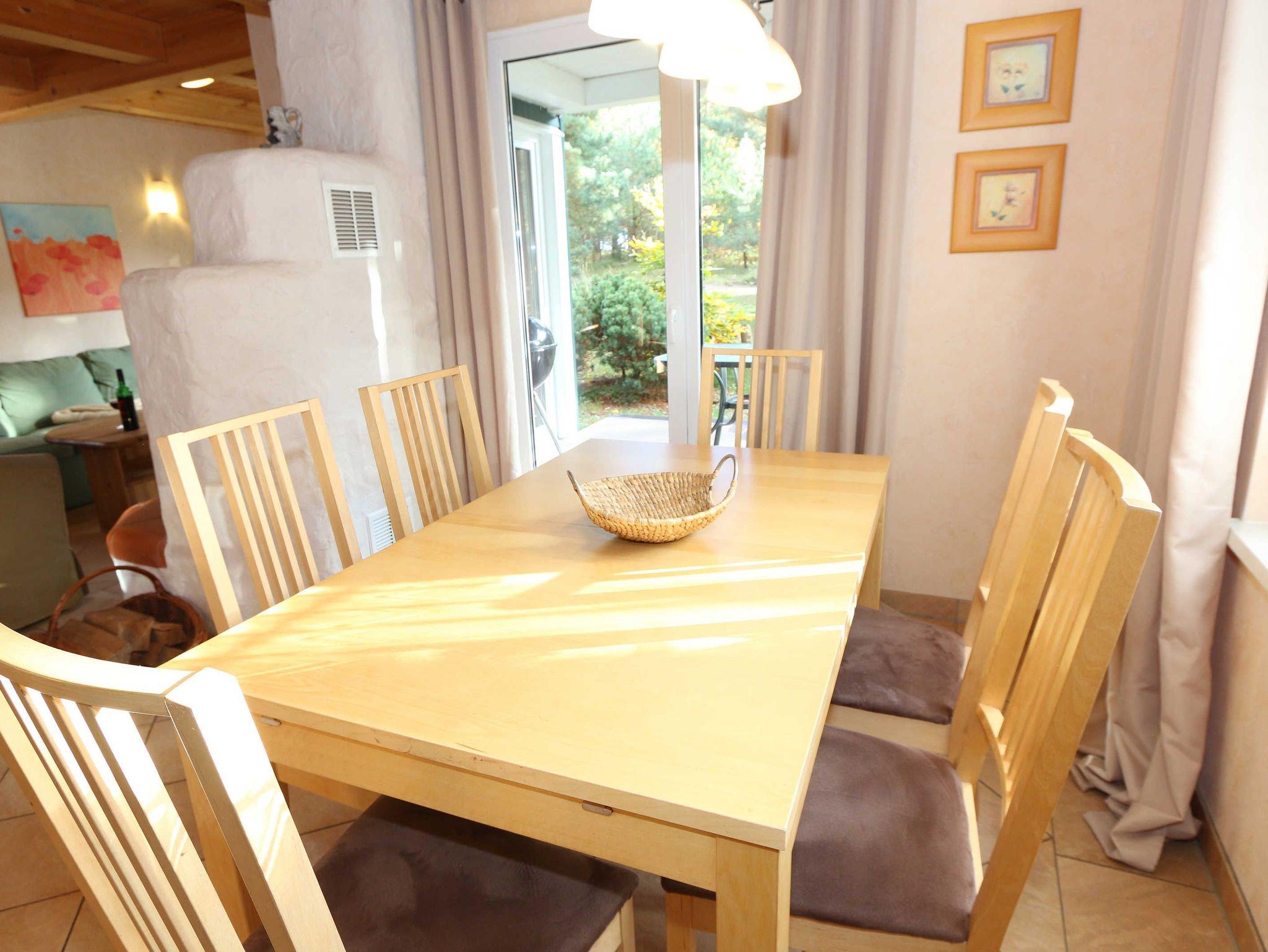 Herzlich Willkommen in unserem Strandhaus im schönen Ostseebad Baabe auf Rügen! Unser 70 m² großes alleinstehendes Standhaus im Schwedenstil (Nichtraucher, 2 bis 6 Erwachsene + 1 Kleinkind bis 3 Jahre im Kinderreisebett) liegt sehr nah am Strand, direkt im Dünenwald von Baabe. Das Holzhaus ist gemütlich mit viel hellem Naturholz eingerichtet und gleichzeitig modern, komfortabel und voll ausgestattet. Dazu zählen wir sowohl die moderne Komfortküche mit Ceran-Herd, Backofen, Mikrowelle, Geschirrspüler, Kühlschrank mit Eisfach, Getränkekühlschrank, Kaffeemaschine, Wasserkocher, Toaster, Reinigungsutensilien und mehr als auch den Wohnkomfort einer Fußbodenheizung, der LCD-Fernseher in HD-Qualität, Satelliten-Anschluss für hohe Programmvielfalt und ein DVD-Player mit Radio. Ein gemütlicher großer Wohnbereich und Kamin (Kaminholz inklusive) mit Sichtfenster rundet unsere Einrichtung ab. Und damit Sie Ihren Urlaub bei uns ganz entspannt genießen können, sind alle Kosten für Strom, Wasser und Heizung sowie das WLAN bereits im Preis inklusive! Das Haus verfügt über insgesamt drei Schlafzimmer im Obergeschoss. Zwei Schlafzimmer sind mit Doppelbett (2 x Boxspringbetten je 0,80 m x 2,00 m zusammengestellt) und Kleiderschrank ausgestattet und bieten ausreichend Platz für 1 zusätzliches Kinderreisebett (inklusive Matratze). Das dritte Schlafzimmer verfügt über zwei Boxspringbetten (je 0,80 m x 2,00 m) ? die man auch zusammenstellen kann und Kleiderschrank Im Erd- sowie im Obergeschoss befinden sich je ein Tageslicht-Bad mit großem Spiegel, WC, Dusche und Haartrockner. Am Wohn-/ Essbereich schließt sich die überdachte Terrasse (Süd/Ost) mit Tisch, Stühlen und Gartengrill an. Von dort blicken Sie direkt zur Düne, hinter der sich der weiße Sandstrand anschließt. Ein Waschhaus mit Waschmaschine steht Ihnen zur Nutzung (inklusive) zur Verfügung. Ein eigener PKW-Stellplatz Nr. 17b gehört zum Strandhaus. Haben Sie ein Haustier, das Sie mitbringen möchten? Gerne ist dies gegen eine Gebühr möglich. In unserem Backshop selbst erhalten Sie In der Saison täglich frisch: Brötchen, Lebensmittel, Tageszeitungen, Frühstück, Kaffee & Kuchen und mehr (Schließzeiten immer vom 07.01. - 1 Woche vor Ostern). Die Erstausstattung eines Wäschepaketes (komplette Bettwäsche, 1 Duschhandtuch, 2 kleine Handtücher) können Sie bis 14 Tage vor Anreise gegen einen Aufpreis dazu buchen oder durch eigene ergänzen. Ab 2 gebuchten Paketen erhalten Sie einmalig 1 Geschirrhandtuch und 1 Duschvorleger hinzu. Wir freuen uns auf Ihren Besuch!