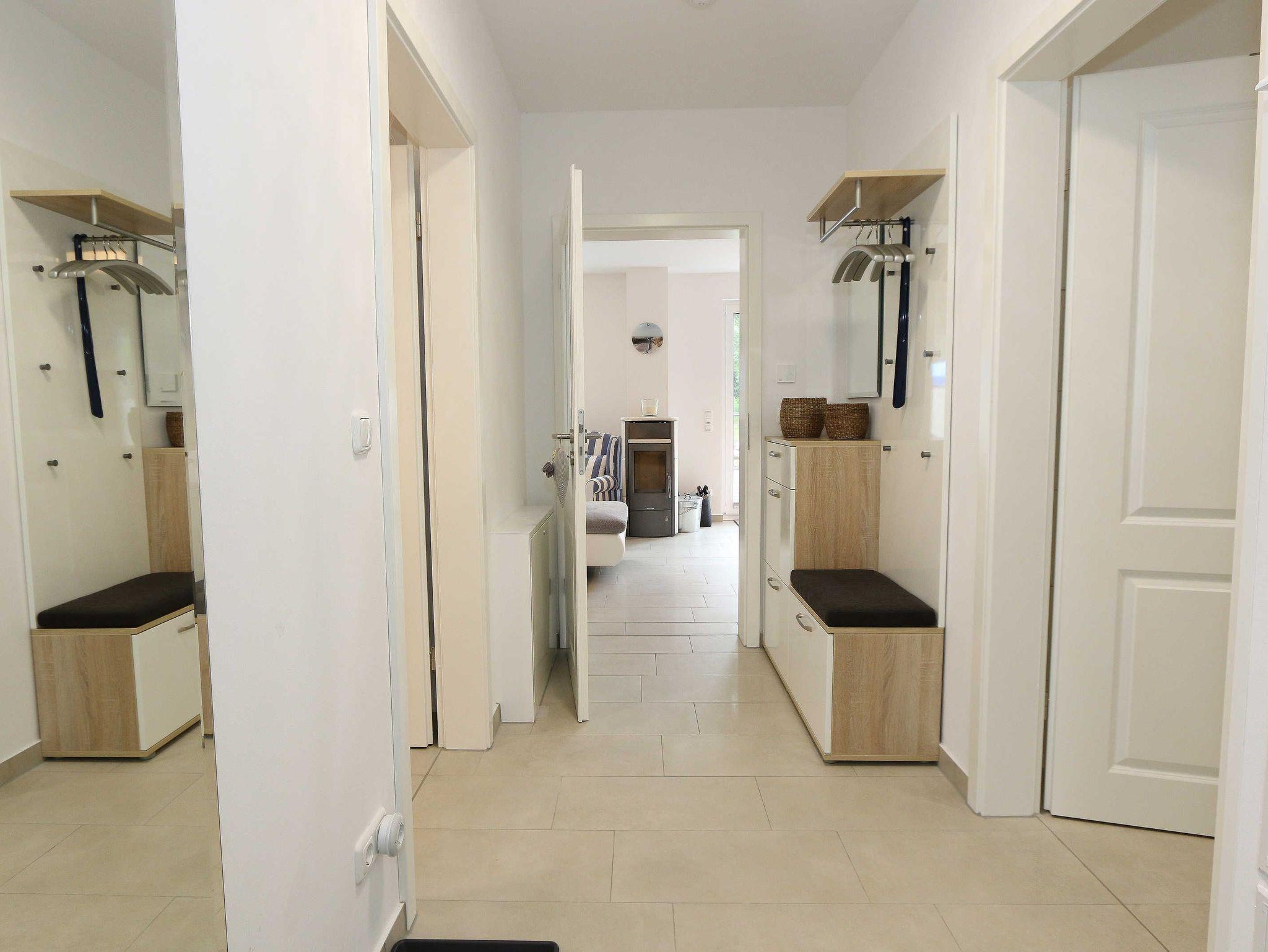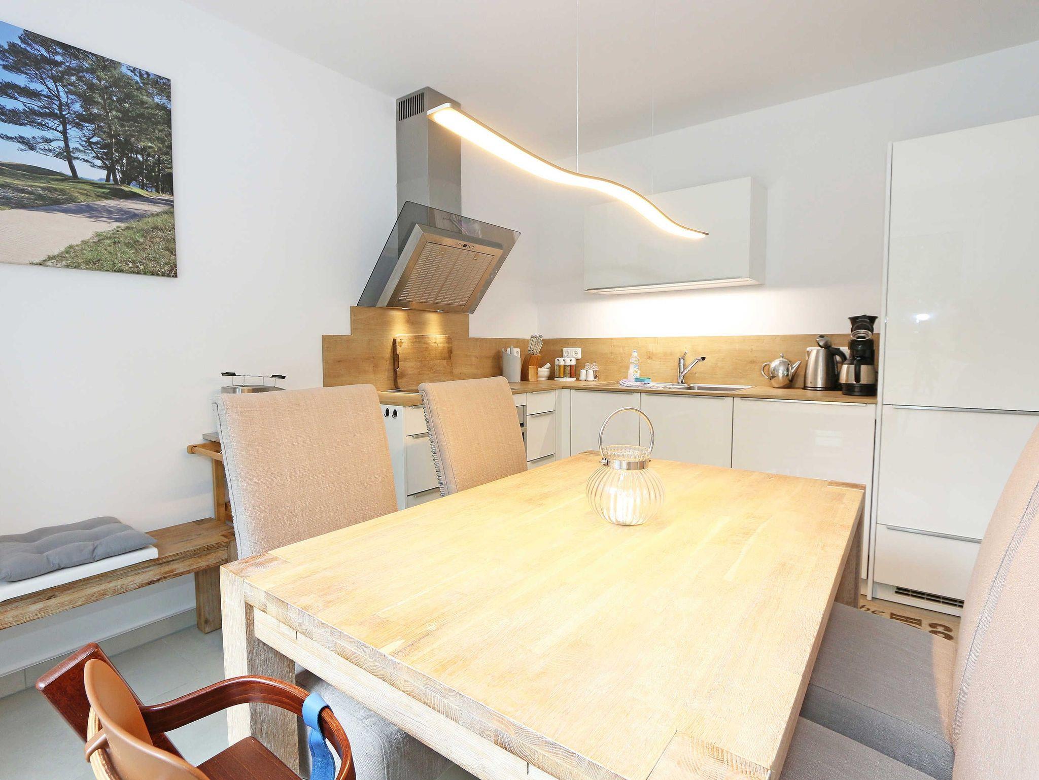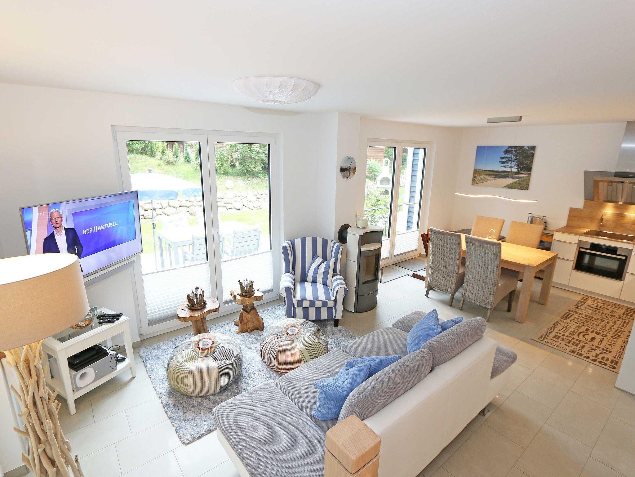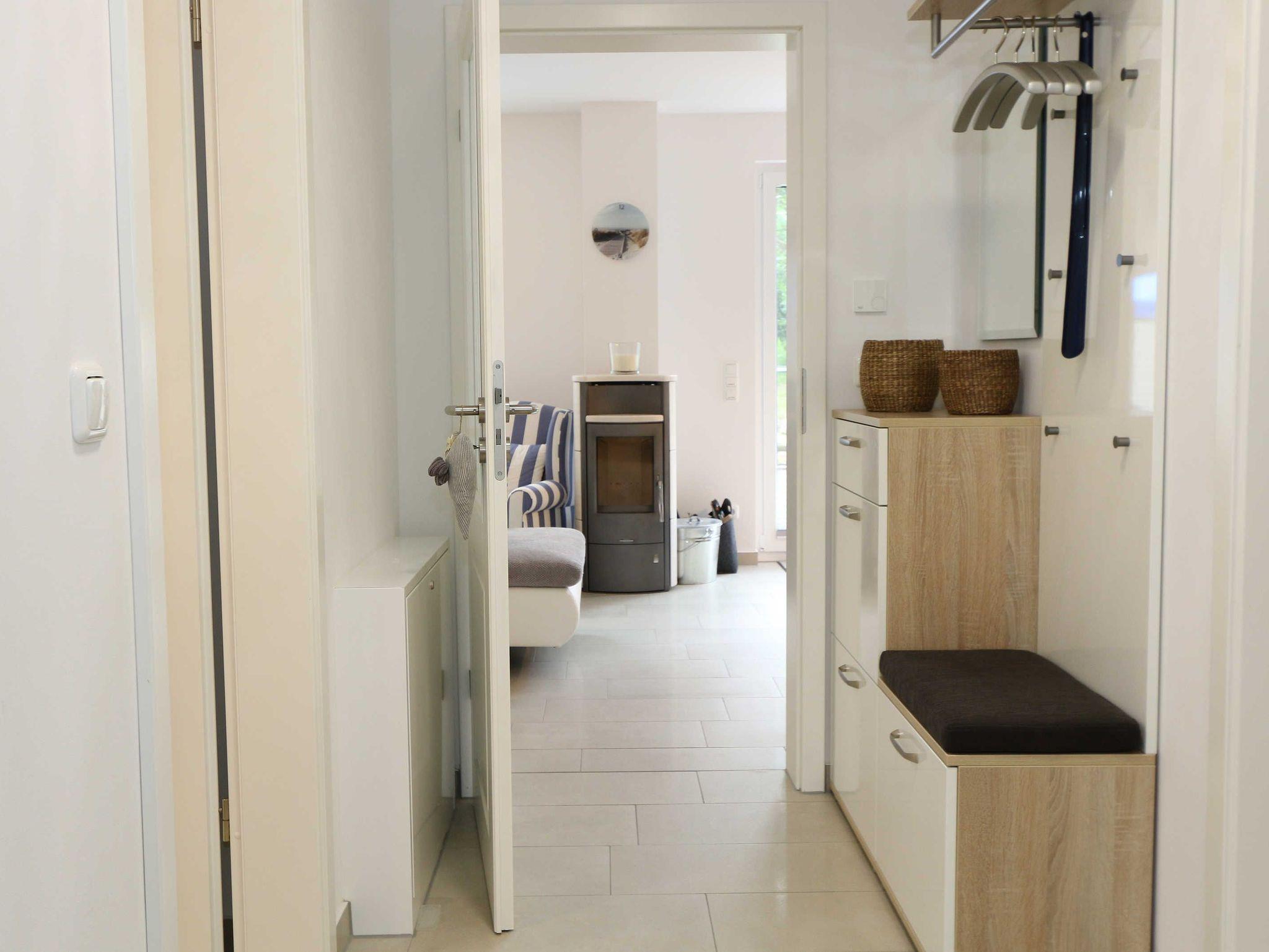 Das Nichtraucherferienhaus „Blaue Welle“ befindet sich in einzigartiger Lage, im Dünenpark Baabe. Durch die großzügige Wohnfläche von ca. 95 qm, welche sich über 2 Etagen erstreckt, bietet Ihnen das Haus ausreichend Platz für max. 5 Erwachsene und 1 Kleinkind bis 3 Jahre im Kinderreisebett. Die Innenausstattung wird Ihr Herz höher schlagen lassen, denn durch die angefertigten Echtholzmöbel sowie die Einbauküche aus dem Hause Leicht werden besondere Akzente im Haus gesetzt. Der kombinierte Wohn-/Essbereich wurde mit einer gemütlichen Couchecke, Couchtisch, einem Hocker, Leselampe sowie ein Sideboard ausgestattet. Für gemütliche Abende dient ein Flachbild-TV mit passender Soundbar von SONY, ein DVD-Player durch die PS4 und ein moderner Kaminofen mit großem Sichtfenster. Auch auf einen Internetanschluss (WLAN) brauchen Sie nicht verzichten dieser ist für Sie inklusive. Die angrenzende Einbauküche lässt keine Wünsche offen mit einem Kühlschrank inklusive großem Eisfach, ein Cerankochfeld, einer Dunstabzugshaube, ein kombinierter Backofen mit Mikrowelle, einem Geschirrspüler, einer Duo-Kaffeemaschine (Pads und Filter/Phillips Senseo Thermo Duo), einem Toaster, einem Wasserkocher, einem Handrührgerät, einem Pürierstab sowie vielen Küchenhelfer. Vom Wohnbereich gelangen Sie auf die großflächige und beleuchtete Terrasse (Süd/West) mit robuster Bestuhlung. Im Gartenbereich wartet zusätzlich ein Ostseestrandkorb sowie ein Steingrill auf Sie. Im Erdgeschoss befindet sich eines von insgesamt 3 Schlafzimmern, welches mit einem Queensize-Bett (1,40 m x 2,00 m), 2 kleinen Schränken, 2 kleinen Sesseln und einem Flachbild-TV ausgestattet ist. Gleich gegenüber befindet sich das ebenerdige Badezimmer mit einer Echtglasdusche, WC, Fön, Waschtisch sowie einer hauseigenen Sauna. Über die Treppe gelangen Sie vom Wohnbereich in die 1. Etage des Hauses, wo Sie eine lichtdurchflutete und offene Galerie erwartet. Hier lässt es sich wunderbar mit einem Buch relaxen. 2 weitere Schlafzimmer sind hier hell und freundlich eingerichtet worden und bieten Ihnen jeweils 1 Doppelbett (1,80 m x 2,00 m), 2 Nachttischablagen, ein Flachbild-TV und Echtholzkommoden. Bei geöffnetem Fenster können Sie dem Wellenspiel der Ostsee zuhören. Alle Schlafräume sind mit verdunkelnden Rollos oder Plissee und Insektenschutzgitter versehen, so dass einem ruhigen Ausschlafen nichts im Wege steht. Das 2. Tageslichtbad wird durch eine ebenerdige Dusche, eine formschöne Badewanne, ein WC, einen Fön, einen Waschtisch sowie einen Waschtrockner abgerundet. Für eine angenehme Wärme sorgt in allen Räumlichkeiten die Fußbodenheizung. Zusätzliche Highlights sind eine Entkalkungsanlage sowie eine verbrauchsarme Gasbrennwerttherme. Für unsere kleinen Gäste stehen 1x Tripp-Trapp Hochstuhl und 1x Kinderreisebett (mit Zusatzkindermatratze / ohne Bett-Inlett) kostenfrei zur Verfügung. Auch 2 vorhandene Fallschutzgitter für die Treppe oder auch Steckdosenschutz sind vorhanden. Haustiere sind nicht erlaubt. Zum Ferienhaus gehören 2 nebeneinander gelegene PKW-Stellplätze (Blaue Welle). Die Erstausstattung eines Wäschepaketes (komplette Bettwäsche, 1 Duschhandtuch, 2 kleine Handtücher) können Sie bis 14 Tage vor Anreise gegen einen Aufpreis dazu buchen oder durch eigene ergänzen. Ab 2 gebuchten Paketen erhalten Sie einmalig 1 Geschirrhandtuch und 1 Duschvorleger hinzu.