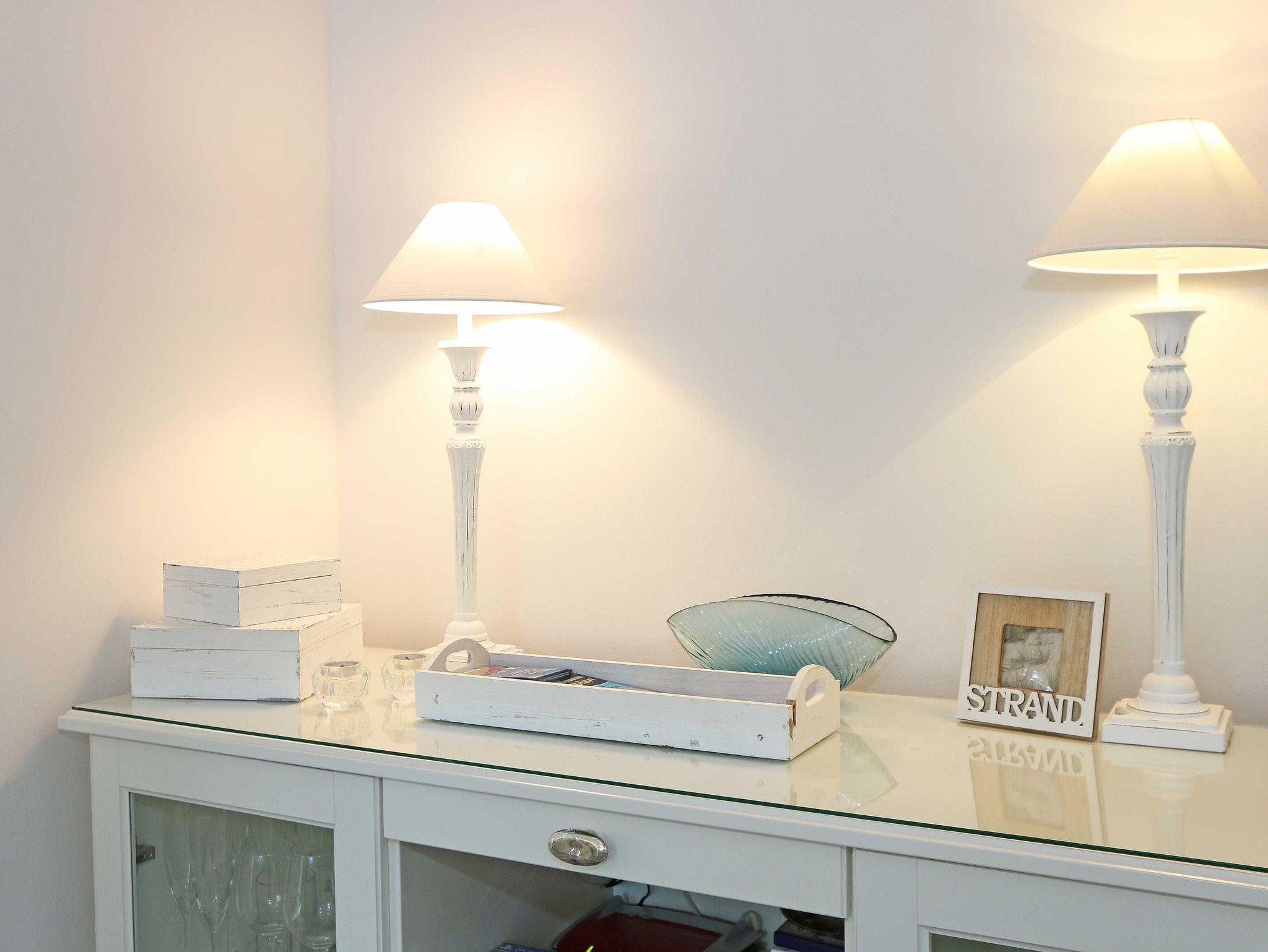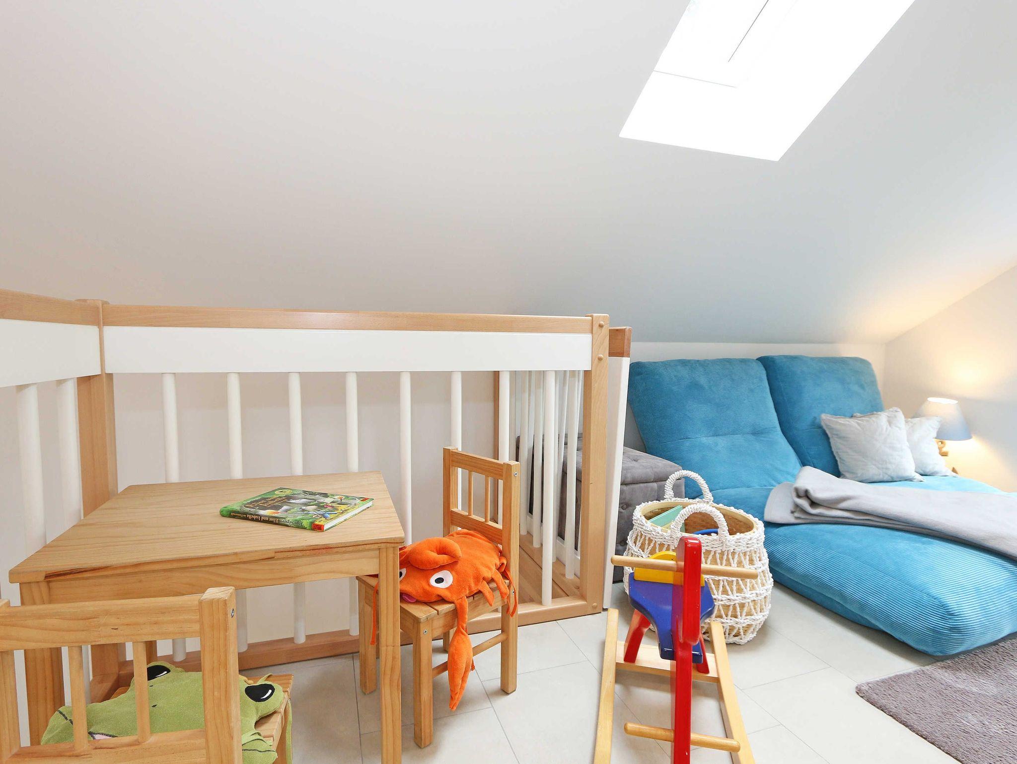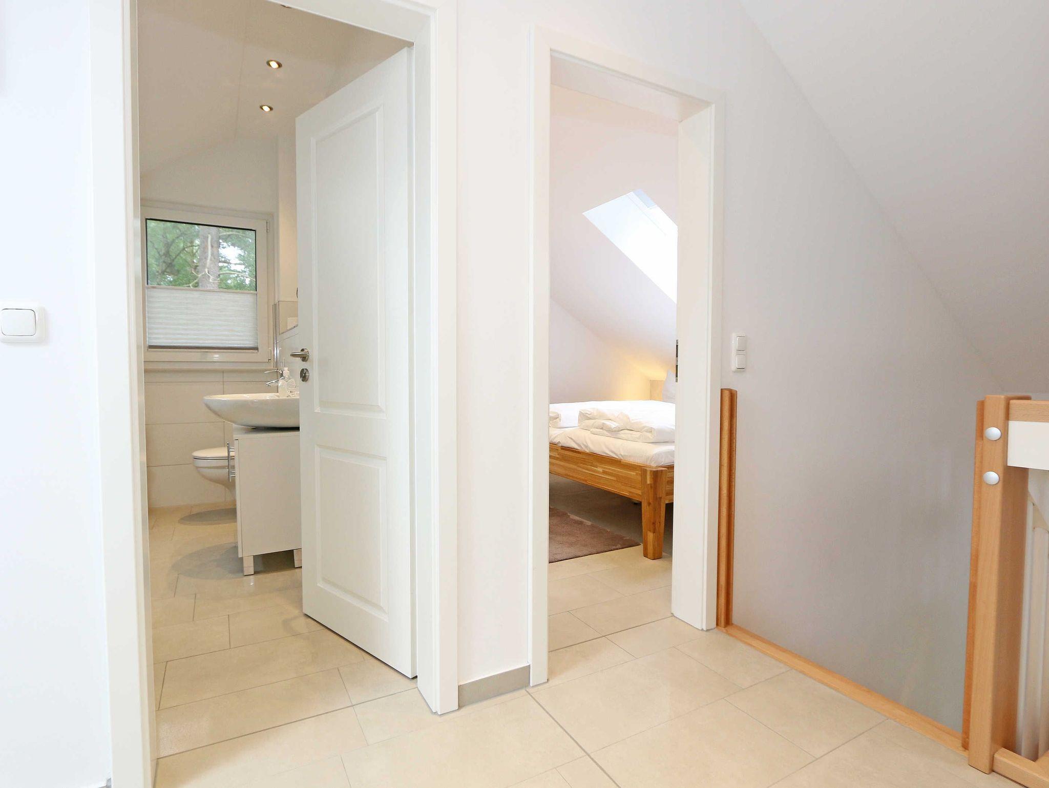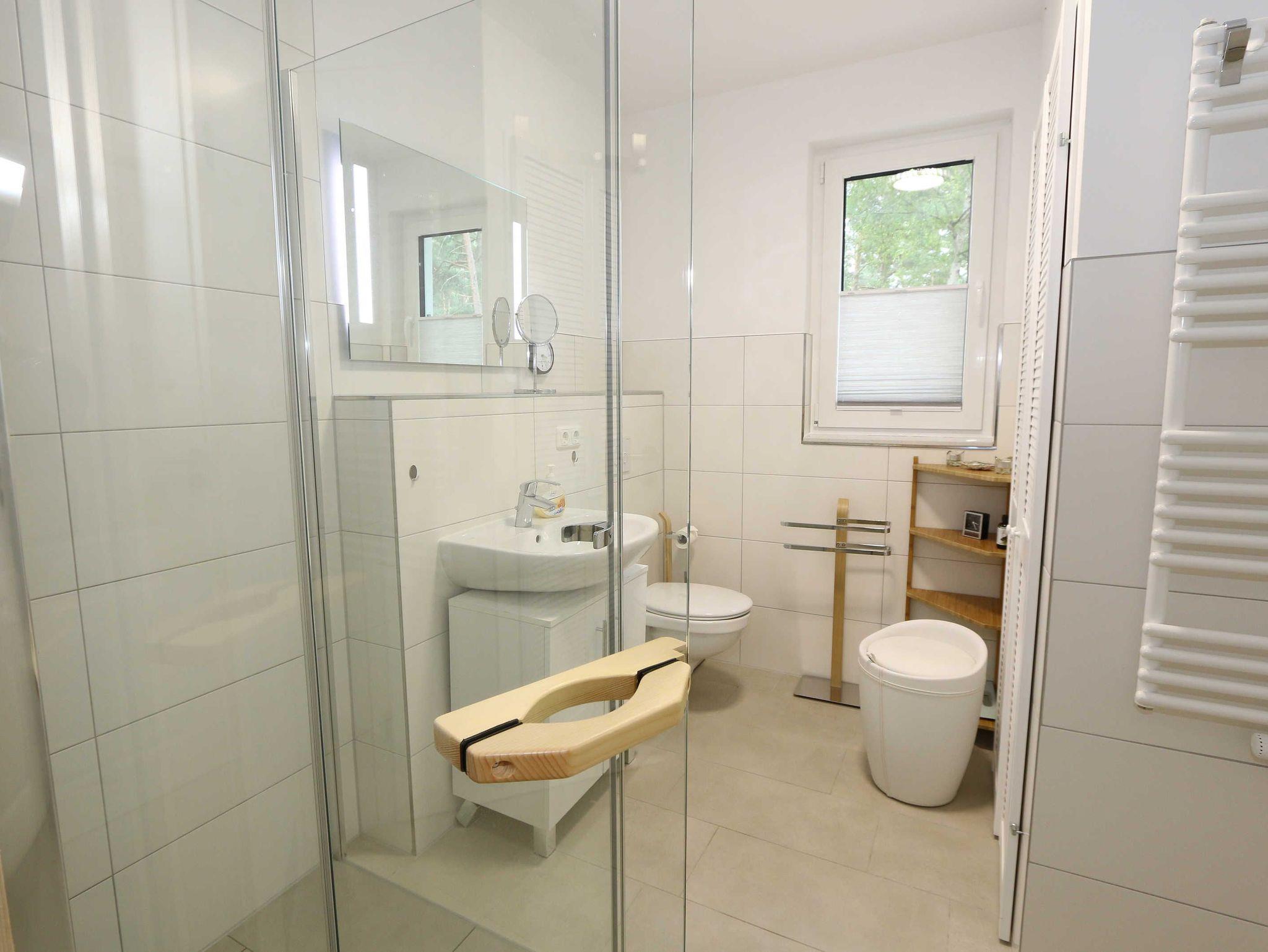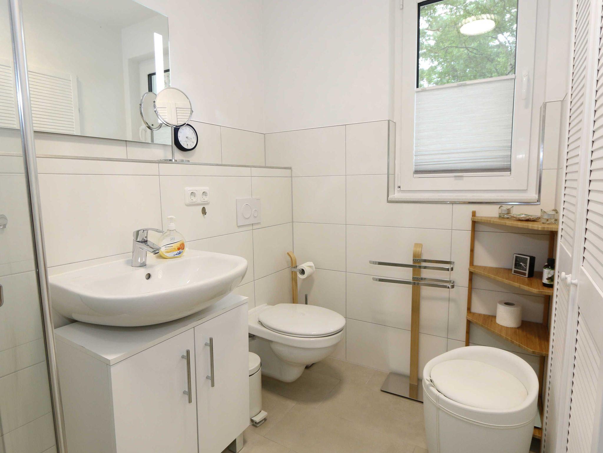 Das Nichtraucherferienhaus „Blaue Welle“ befindet sich in einzigartiger Lage, im Dünenpark Baabe. Durch die großzügige Wohnfläche von ca. 95 qm, welche sich über 2 Etagen erstreckt, bietet Ihnen das Haus ausreichend Platz für max. 5 Erwachsene und 1 Kleinkind bis 3 Jahre im Kinderreisebett. Die Innenausstattung wird Ihr Herz höher schlagen lassen, denn durch die angefertigten Echtholzmöbel sowie die Einbauküche aus dem Hause Leicht werden besondere Akzente im Haus gesetzt. Der kombinierte Wohn-/Essbereich wurde mit einer gemütlichen Couchecke, Couchtisch, einem Hocker, Leselampe sowie ein Sideboard ausgestattet. Für gemütliche Abende dient ein Flachbild-TV mit passender Soundbar von SONY, ein DVD-Player durch die PS4 und ein moderner Kaminofen mit großem Sichtfenster. Auch auf einen Internetanschluss (WLAN) brauchen Sie nicht verzichten dieser ist für Sie inklusive. Die angrenzende Einbauküche lässt keine Wünsche offen mit einem Kühlschrank inklusive großem Eisfach, ein Cerankochfeld, einer Dunstabzugshaube, ein kombinierter Backofen mit Mikrowelle, einem Geschirrspüler, einer Duo-Kaffeemaschine (Pads und Filter/Phillips Senseo Thermo Duo), einem Toaster, einem Wasserkocher, einem Handrührgerät, einem Pürierstab sowie vielen Küchenhelfer. Vom Wohnbereich gelangen Sie auf die großflächige und beleuchtete Terrasse (Süd/West) mit robuster Bestuhlung. Im Gartenbereich wartet zusätzlich ein Ostseestrandkorb sowie ein Steingrill auf Sie. Im Erdgeschoss befindet sich eines von insgesamt 3 Schlafzimmern, welches mit einem Queensize-Bett (1,40 m x 2,00 m), 2 kleinen Schränken, 2 kleinen Sesseln und einem Flachbild-TV ausgestattet ist. Gleich gegenüber befindet sich das ebenerdige Badezimmer mit einer Echtglasdusche, WC, Fön, Waschtisch sowie einer hauseigenen Sauna. Über die Treppe gelangen Sie vom Wohnbereich in die 1. Etage des Hauses, wo Sie eine lichtdurchflutete und offene Galerie erwartet. Hier lässt es sich wunderbar mit einem Buch relaxen. 2 weitere Schlafzimmer sind hier hell und freundlich eingerichtet worden und bieten Ihnen jeweils 1 Doppelbett (1,80 m x 2,00 m), 2 Nachttischablagen, ein Flachbild-TV und Echtholzkommoden. Bei geöffnetem Fenster können Sie dem Wellenspiel der Ostsee zuhören. Alle Schlafräume sind mit verdunkelnden Rollos oder Plissee und Insektenschutzgitter versehen, so dass einem ruhigen Ausschlafen nichts im Wege steht. Das 2. Tageslichtbad wird durch eine ebenerdige Dusche, eine formschöne Badewanne, ein WC, einen Fön, einen Waschtisch sowie einen Waschtrockner abgerundet. Für eine angenehme Wärme sorgt in allen Räumlichkeiten die Fußbodenheizung. Zusätzliche Highlights sind eine Entkalkungsanlage sowie eine verbrauchsarme Gasbrennwerttherme. Für unsere kleinen Gäste stehen 1x Tripp-Trapp Hochstuhl und 1x Kinderreisebett (mit Zusatzkindermatratze / ohne Bett-Inlett) kostenfrei zur Verfügung. Auch 2 vorhandene Fallschutzgitter für die Treppe oder auch Steckdosenschutz sind vorhanden. Haustiere sind nicht erlaubt. Zum Ferienhaus gehören 2 nebeneinander gelegene PKW-Stellplätze (Blaue Welle). Die Erstausstattung eines Wäschepaketes (komplette Bettwäsche, 1 Duschhandtuch, 2 kleine Handtücher) können Sie bis 14 Tage vor Anreise gegen einen Aufpreis dazu buchen oder durch eigene ergänzen. Ab 2 gebuchten Paketen erhalten Sie einmalig 1 Geschirrhandtuch und 1 Duschvorleger hinzu.