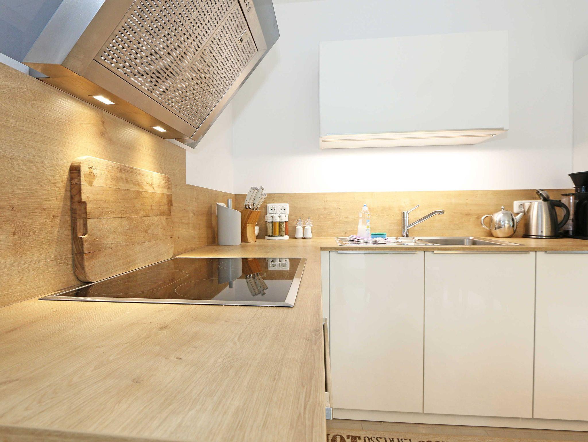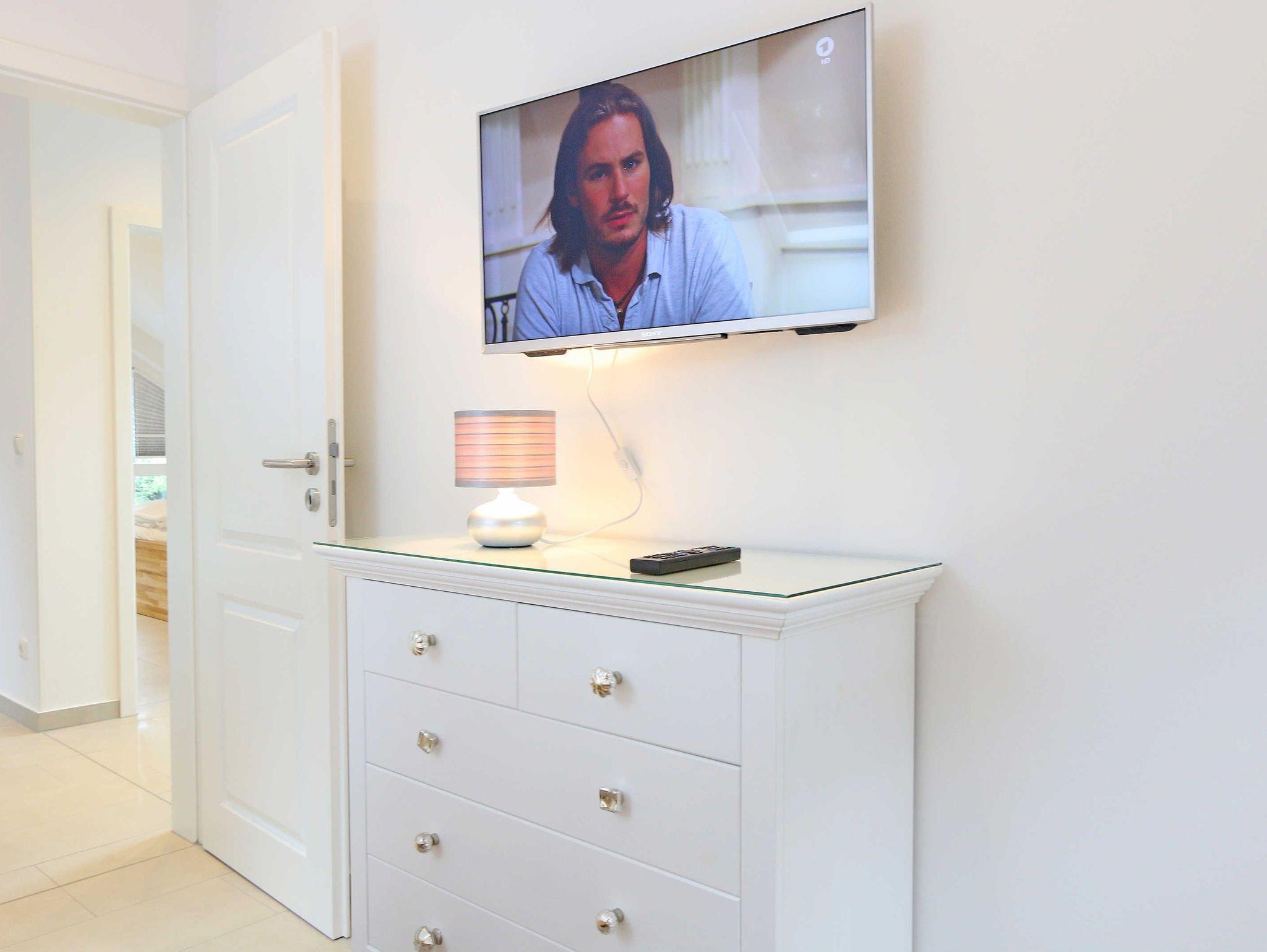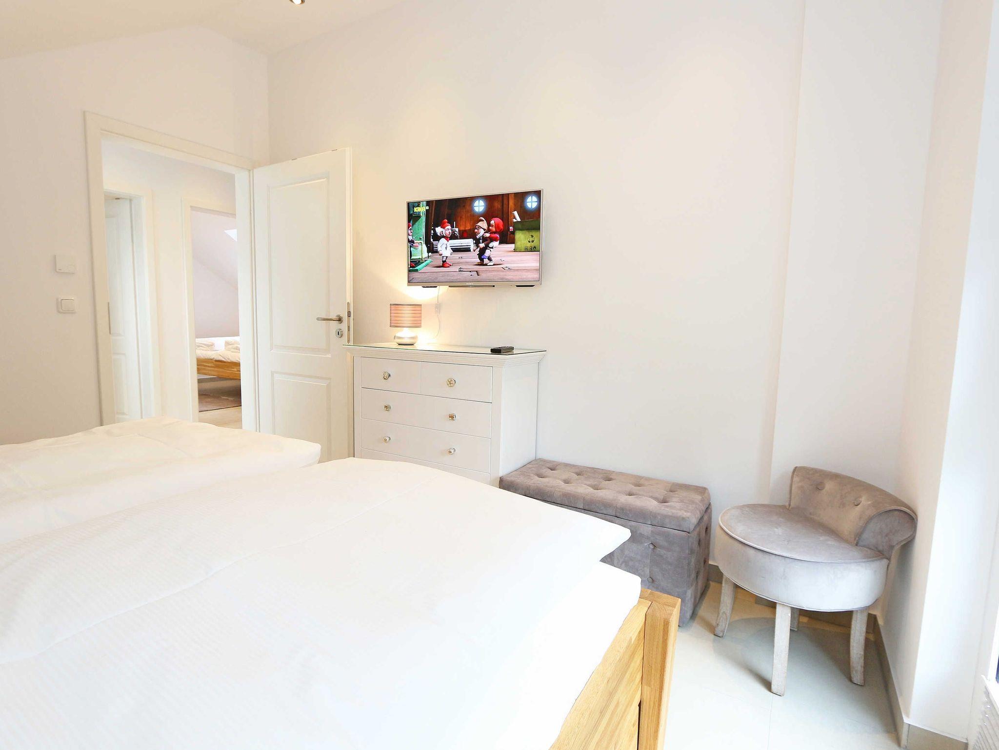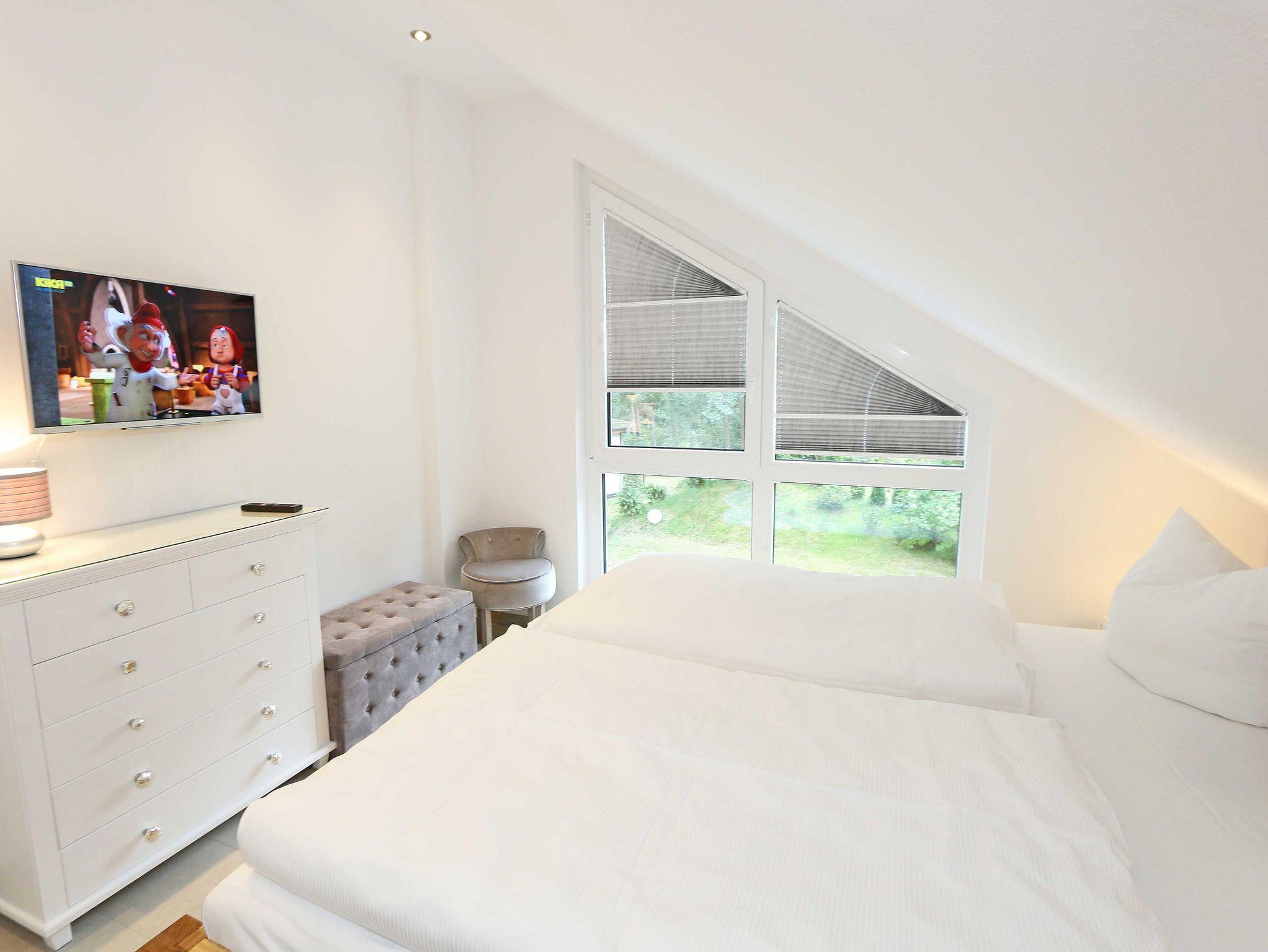 Das Nichtraucherferienhaus „Blaue Welle“ befindet sich in einzigartiger Lage, im Dünenpark Baabe. Durch die großzügige Wohnfläche von ca. 95 qm, welche sich über 2 Etagen erstreckt, bietet Ihnen das Haus ausreichend Platz für max. 5 Erwachsene und 1 Kleinkind bis 3 Jahre im Kinderreisebett. Die Innenausstattung wird Ihr Herz höher schlagen lassen, denn durch die angefertigten Echtholzmöbel sowie die Einbauküche aus dem Hause Leicht werden besondere Akzente im Haus gesetzt. Der kombinierte Wohn-/Essbereich wurde mit einer gemütlichen Couchecke, Couchtisch, einem Hocker, Leselampe sowie ein Sideboard ausgestattet. Für gemütliche Abende dient ein Flachbild-TV mit passender Soundbar von SONY, ein DVD-Player durch die PS4 und ein moderner Kaminofen mit großem Sichtfenster. Auch auf einen Internetanschluss (WLAN) brauchen Sie nicht verzichten dieser ist für Sie inklusive. Die angrenzende Einbauküche lässt keine Wünsche offen mit einem Kühlschrank inklusive großem Eisfach, ein Cerankochfeld, einer Dunstabzugshaube, ein kombinierter Backofen mit Mikrowelle, einem Geschirrspüler, einer Duo-Kaffeemaschine (Pads und Filter/Phillips Senseo Thermo Duo), einem Toaster, einem Wasserkocher, einem Handrührgerät, einem Pürierstab sowie vielen Küchenhelfer. Vom Wohnbereich gelangen Sie auf die großflächige und beleuchtete Terrasse (Süd/West) mit robuster Bestuhlung. Im Gartenbereich wartet zusätzlich ein Ostseestrandkorb sowie ein Steingrill auf Sie. Im Erdgeschoss befindet sich eines von insgesamt 3 Schlafzimmern, welches mit einem Queensize-Bett (1,40 m x 2,00 m), 2 kleinen Schränken, 2 kleinen Sesseln und einem Flachbild-TV ausgestattet ist. Gleich gegenüber befindet sich das ebenerdige Badezimmer mit einer Echtglasdusche, WC, Fön, Waschtisch sowie einer hauseigenen Sauna. Über die Treppe gelangen Sie vom Wohnbereich in die 1. Etage des Hauses, wo Sie eine lichtdurchflutete und offene Galerie erwartet. Hier lässt es sich wunderbar mit einem Buch relaxen. 2 weitere Schlafzimmer sind hier hell und freundlich eingerichtet worden und bieten Ihnen jeweils 1 Doppelbett (1,80 m x 2,00 m), 2 Nachttischablagen, ein Flachbild-TV und Echtholzkommoden. Bei geöffnetem Fenster können Sie dem Wellenspiel der Ostsee zuhören. Alle Schlafräume sind mit verdunkelnden Rollos oder Plissee und Insektenschutzgitter versehen, so dass einem ruhigen Ausschlafen nichts im Wege steht. Das 2. Tageslichtbad wird durch eine ebenerdige Dusche, eine formschöne Badewanne, ein WC, einen Fön, einen Waschtisch sowie einen Waschtrockner abgerundet. Für eine angenehme Wärme sorgt in allen Räumlichkeiten die Fußbodenheizung. Zusätzliche Highlights sind eine Entkalkungsanlage sowie eine verbrauchsarme Gasbrennwerttherme. Für unsere kleinen Gäste stehen 1x Tripp-Trapp Hochstuhl und 1x Kinderreisebett (mit Zusatzkindermatratze / ohne Bett-Inlett) kostenfrei zur Verfügung. Auch 2 vorhandene Fallschutzgitter für die Treppe oder auch Steckdosenschutz sind vorhanden. Haustiere sind nicht erlaubt. Zum Ferienhaus gehören 2 nebeneinander gelegene PKW-Stellplätze (Blaue Welle). Die Erstausstattung eines Wäschepaketes (komplette Bettwäsche, 1 Duschhandtuch, 2 kleine Handtücher) können Sie bis 14 Tage vor Anreise gegen einen Aufpreis dazu buchen oder durch eigene ergänzen. Ab 2 gebuchten Paketen erhalten Sie einmalig 1 Geschirrhandtuch und 1 Duschvorleger hinzu.