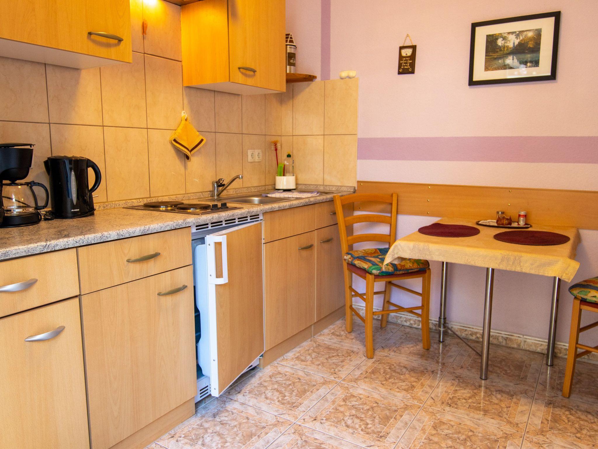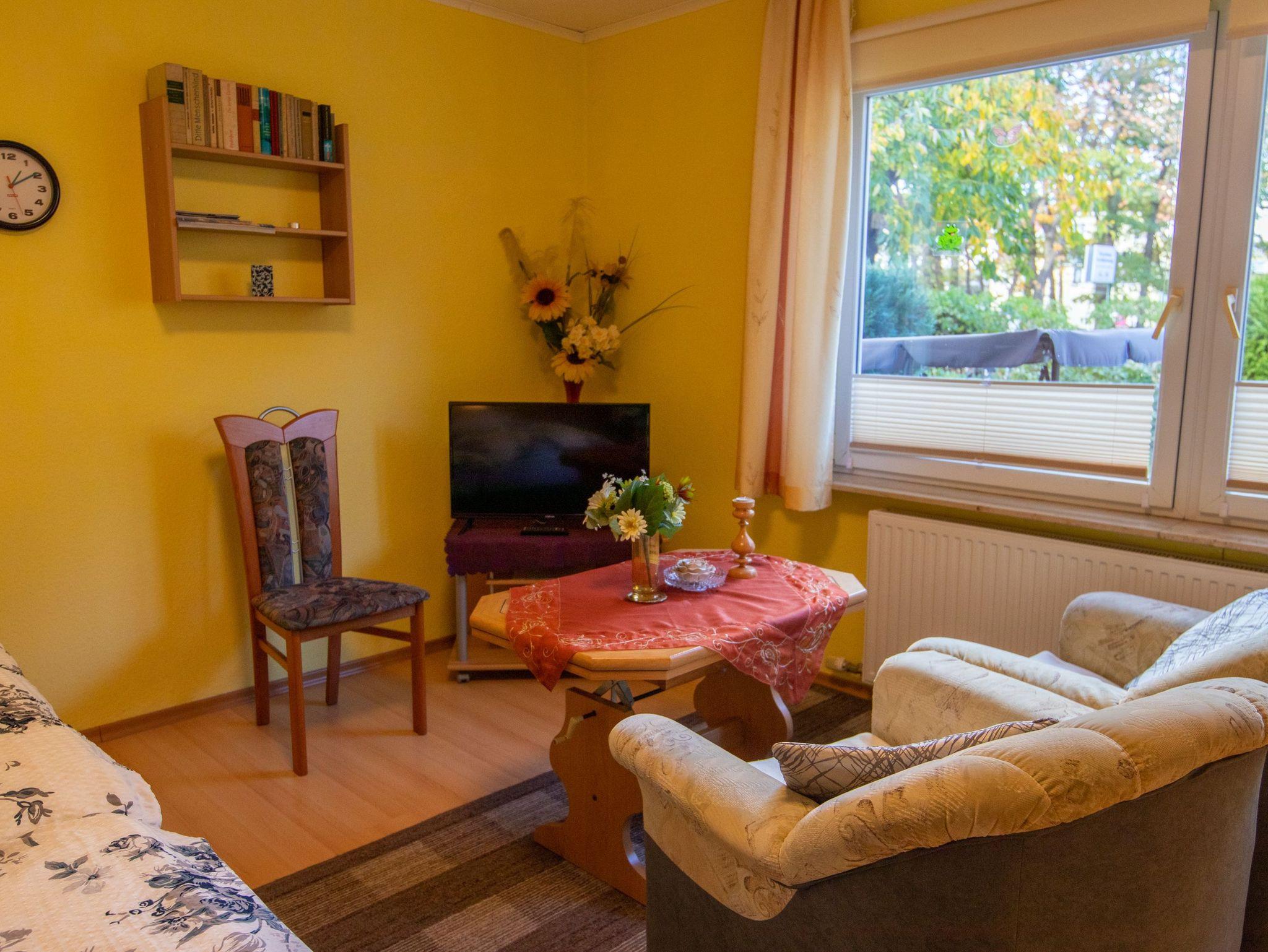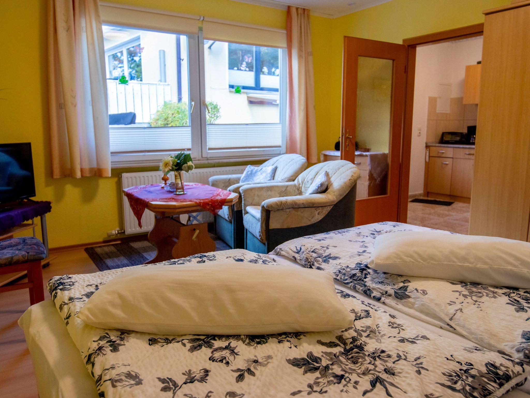 Der Bungalow 4 befindet sich auf dem Grundstück der Vermieter im Ostseebad Baabe und liegt direkt neben dem Bungalow 3. Mit jeweils 30 m² ist der Bungalow für 2 Personen geeignet und verfügt über ein kombiniertes Wohn-Schlafzimmer mit Doppelbett (180x200), TV und zwei Sesseln. Die Pantry-Küche ist mit einem Kühlschrank mit Gefrierfach, Minibackofen, Wasserkocher, Kaffemaschine, Toaster und einem Essbereich ausgestattet. Das Tageslicht-Bad verfügt über eine Dusche und WC.