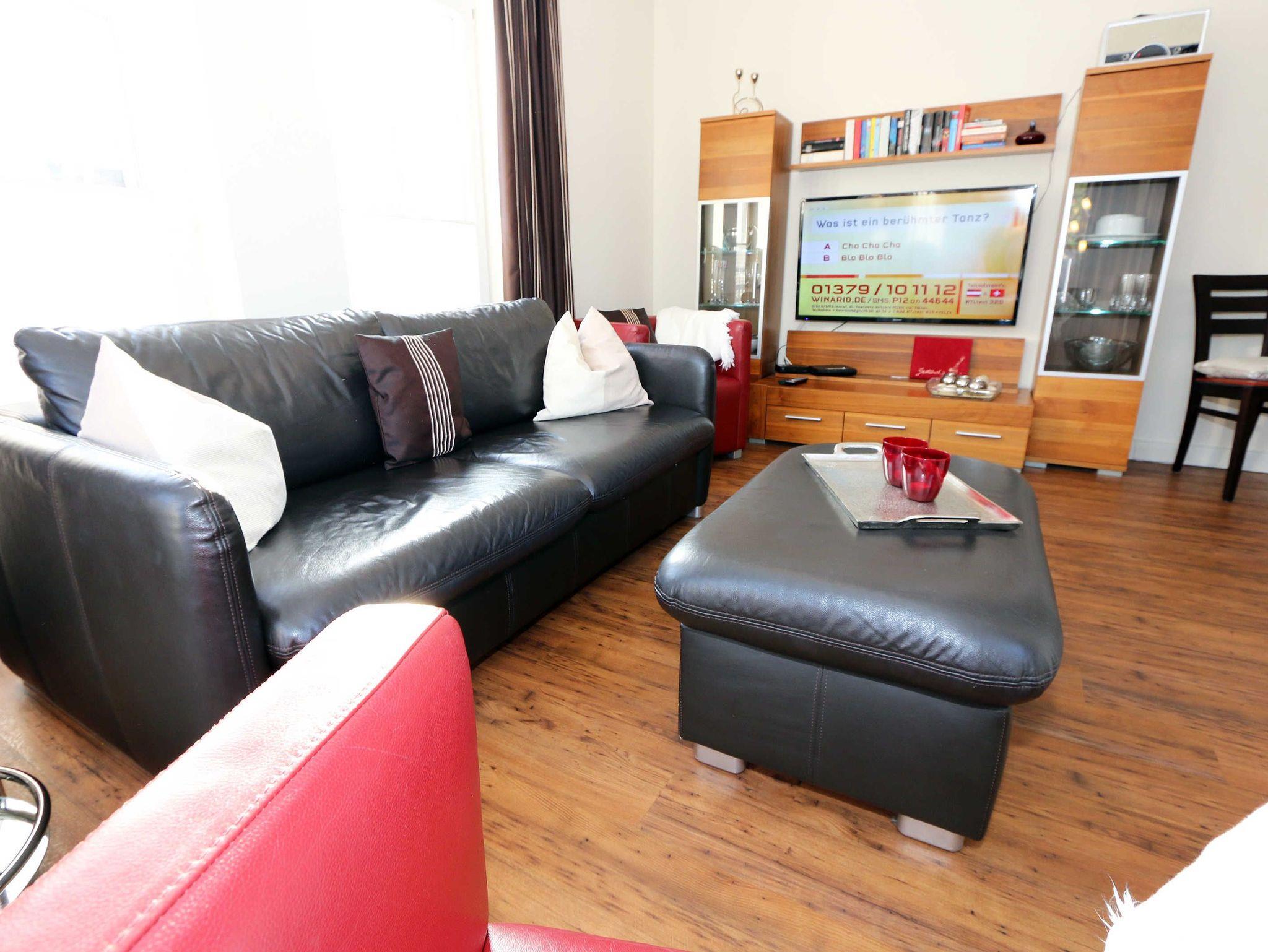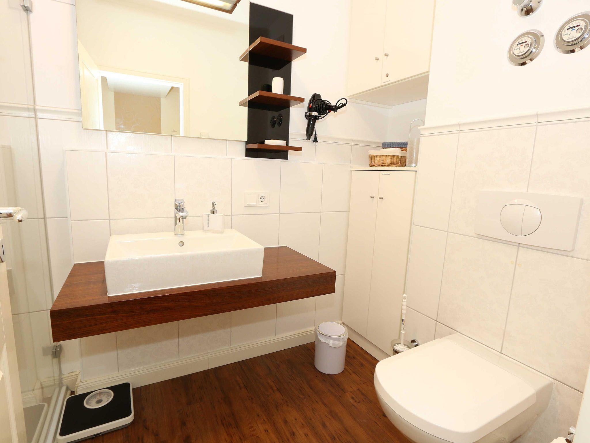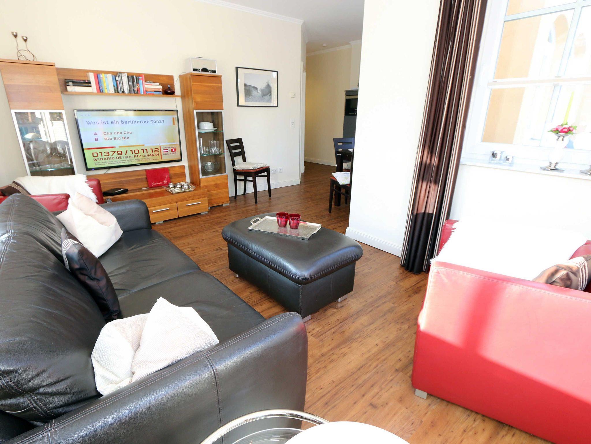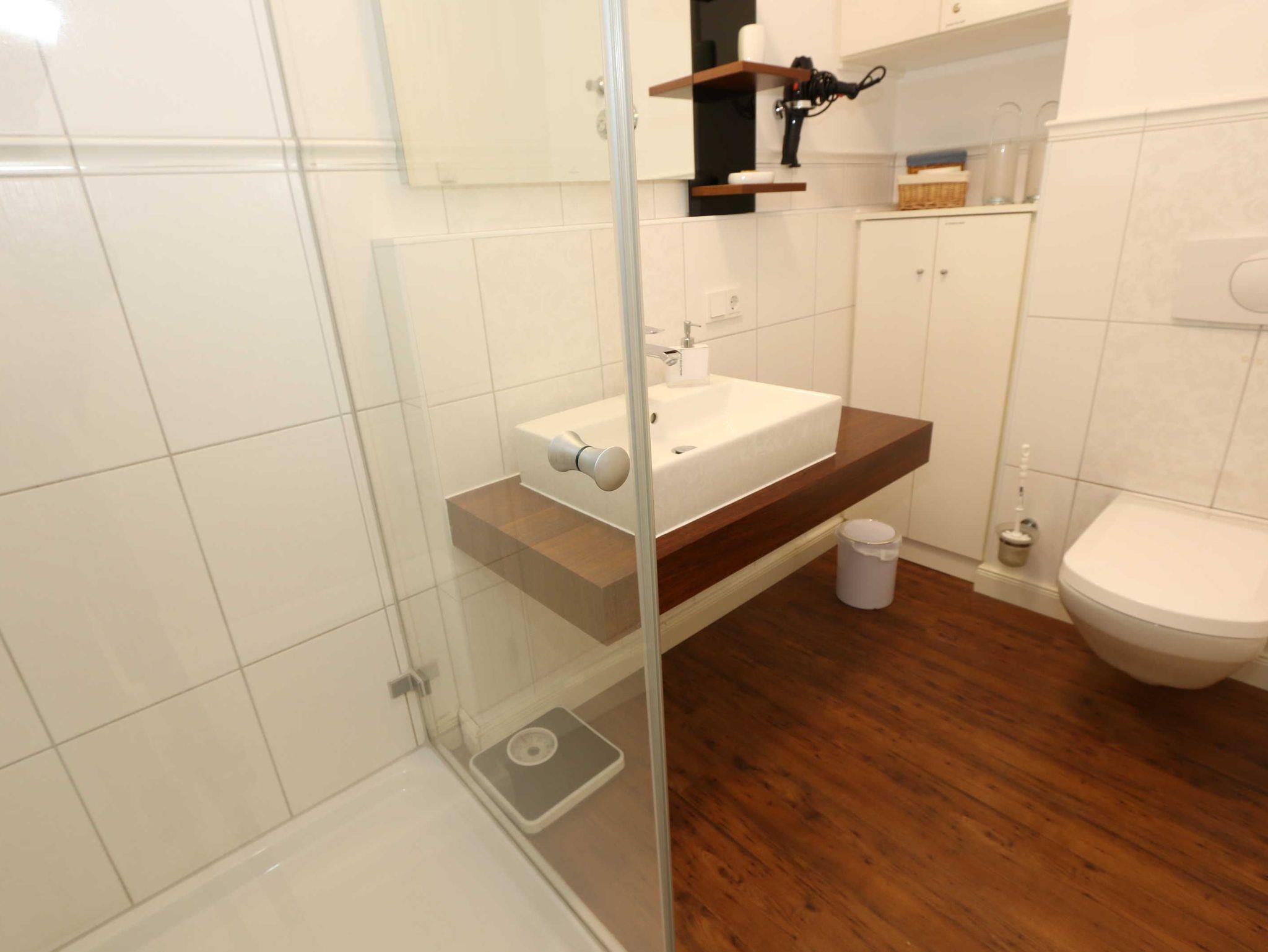 Ihre Nichtraucher/Ferienwohnung ist exklusiv mit viel Liebe zum Detail ausgestattet. Sie wohnen in einer 45 qm 2-Zimmer Wohnung für 2-3 Personen. Vom Balkon im 2. OG aus genießen Sie den Blick auf den Kurpark. Weiterhin finden Sie eine hochwertige, voll ausgestattete Pantry-Küche (Siemens-Küchengeräte, Herd, Backofen, Mikrowelle, Kühlschrank, Geschirrspülmaschine, Kaffeemaschine, Toaster, Wasserkocher, Mixer) mit einer Essecke für drei Personen. In der gemütlichen Sitzecke bestehend aus Ledercouch (ausklappbar mit Lattenrost und Matratze 1,40m x 2,00m) und zwei Sesseln können Sie es sich gemütlich machen. Dort steht Ihnen ein Smart-TV zur Verfügung. Das separate Schlafzimmer ist mit einem Doppelbett (2x0,90m x2,00m mit Sommer-und Winterbett in Übergrößen), ebenfalls Flachbildfernseher sowie geräumigem Schrank mit Bügelbrett und Bügeleisen ausgestattet. Das hochwertige Bad verfügt über Dusche, WC, Kosmetikspiegel, Fön und Handtuchheizkörper sowie einen exklusiven Waschtisch mit passenden Wandfliesen von Villeroy + Boch. Auch im Urlaub brauchen Sie in der Wohnung nicht auf einen Internetanschluss (WLAN) verzichten. Dieser ist für Sie inklusive!!! Für unsere kleinen Gäste ist ein Kinderreisebett (ohne Matratze und Bett Inlett) inklusive vorhanden. Ein Hochstuhl kann nicht gestellt werden. Im Keller des Hauses befindet sich eine Waschmaschine und ein Trockner, der gegen Gebühr genutzt werden kann. Die Erstausstattung eines Wäschepaketes (komplette Bettwäsche, 1 Duschhandtuch, 2 kleine Handtücher) können Sie bis 14 Tage vor Anreise gegen einen Aufpreis dazu buchen oder durch eigene ergänzen. Ab 2 gebuchten Paketen erhalten Sie einmalig 1 Geschirrhandtuch und 1 Duschvorleger hinzu. Zur Wohnung gehört ein Außenstellplatz Nr. 14. Im Preis inbegriffen ist ein Strandkorb (von ca. Mai bis September), in dem Sie die See auch bei einer steifen Brise genießen können. Wir freuen uns auf Sie und heißen Sie herzlich willkommen in Baabe!