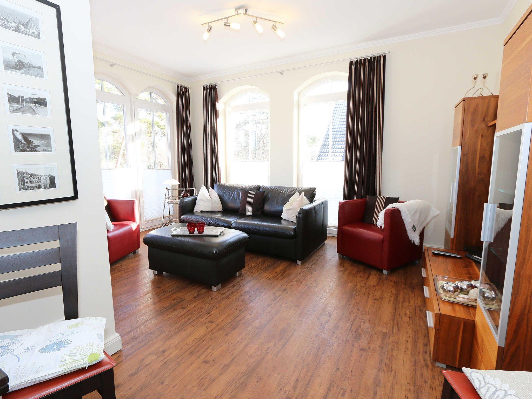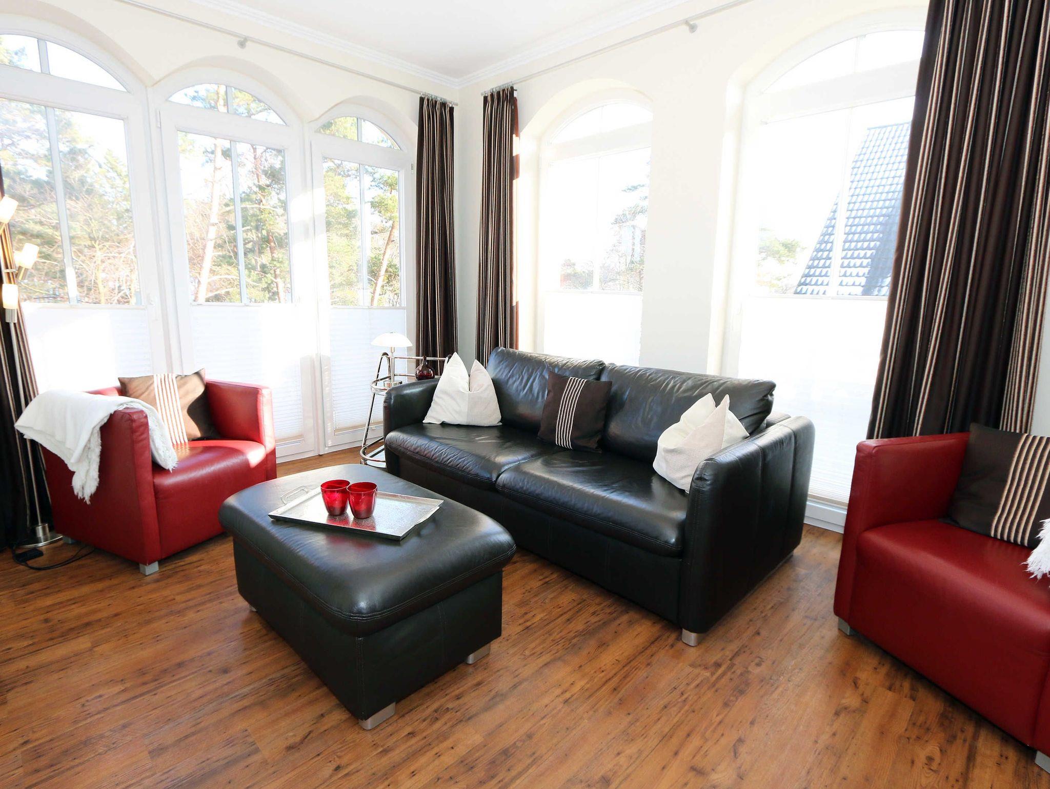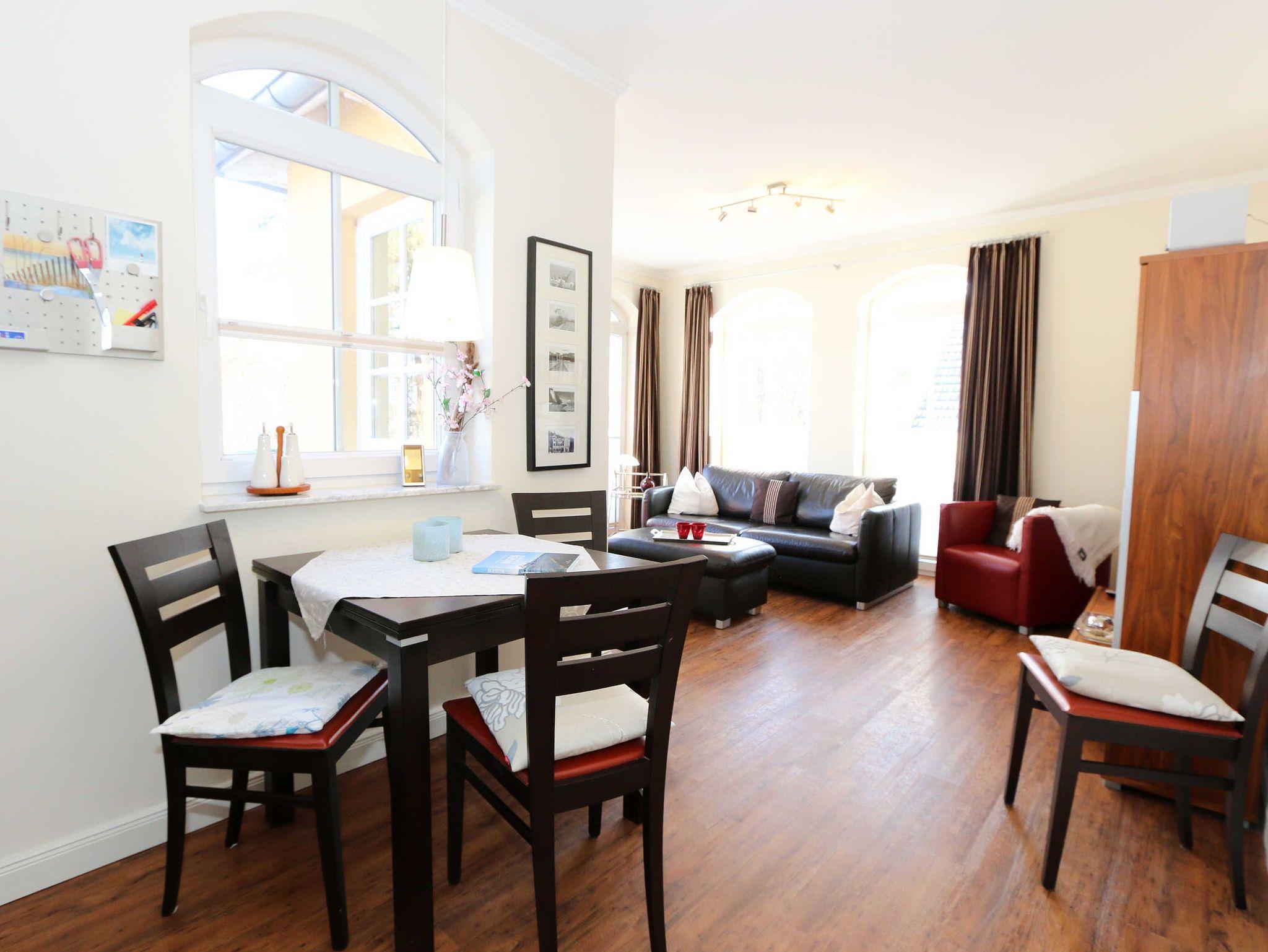 Möchten Sie Ihren Urlaub in wunderschöner Umgebung und sehr strandnah verbringen? Dann ist diese komfortable Wohnung für Sie genau das Richtige. Allein die Anfahrt durch Baumalleen über die Bäderstraße leitet eine naturverbundene Erholungszeit ein. Die Kurparkresidenz wurde in einem modernen, mediterranen Baustil errichtet. Sie liegt in erster Reihe direkt an der Kurpromenade, nur 50 m vom feinen breiten Sandstrand entfernt. Von diesem trennt Sie nur der Kurpark. Aufzug und Fußbodenheizung sind angenehme Ausstattungselemente. Einkaufsmöglichkeiten und Restaurants sowie Cafes erreichen Sie fußläufig in kürzester Zeit.