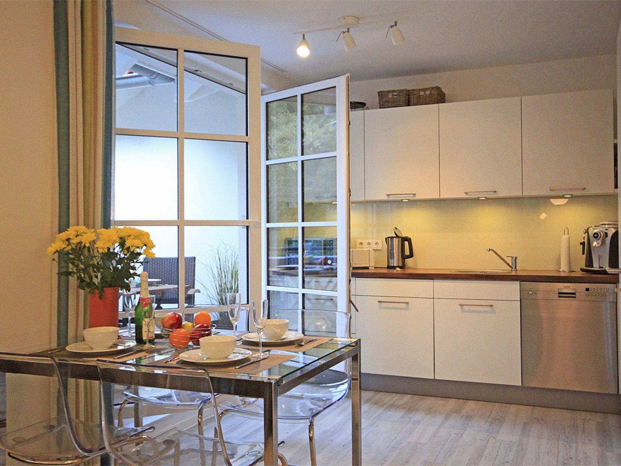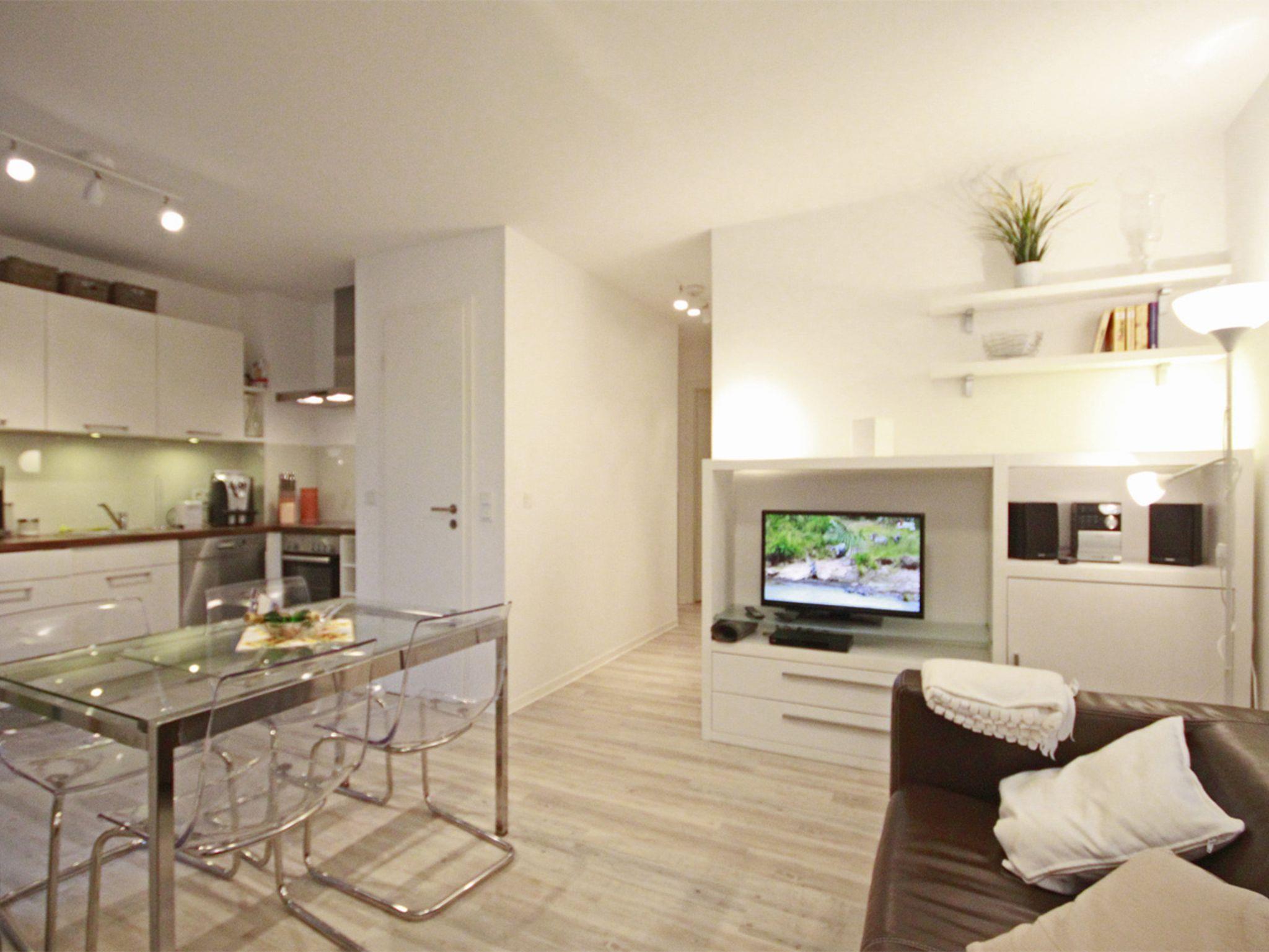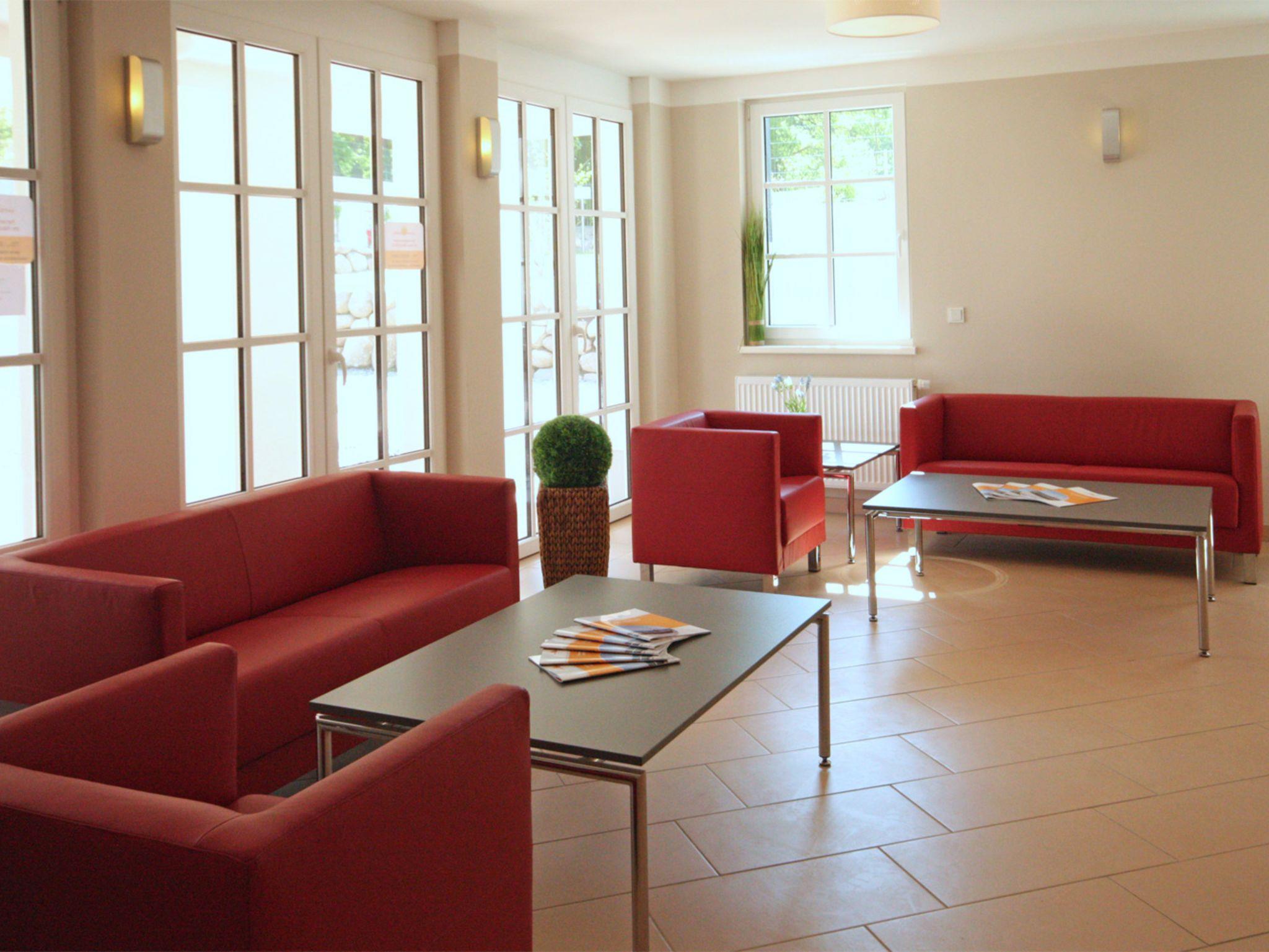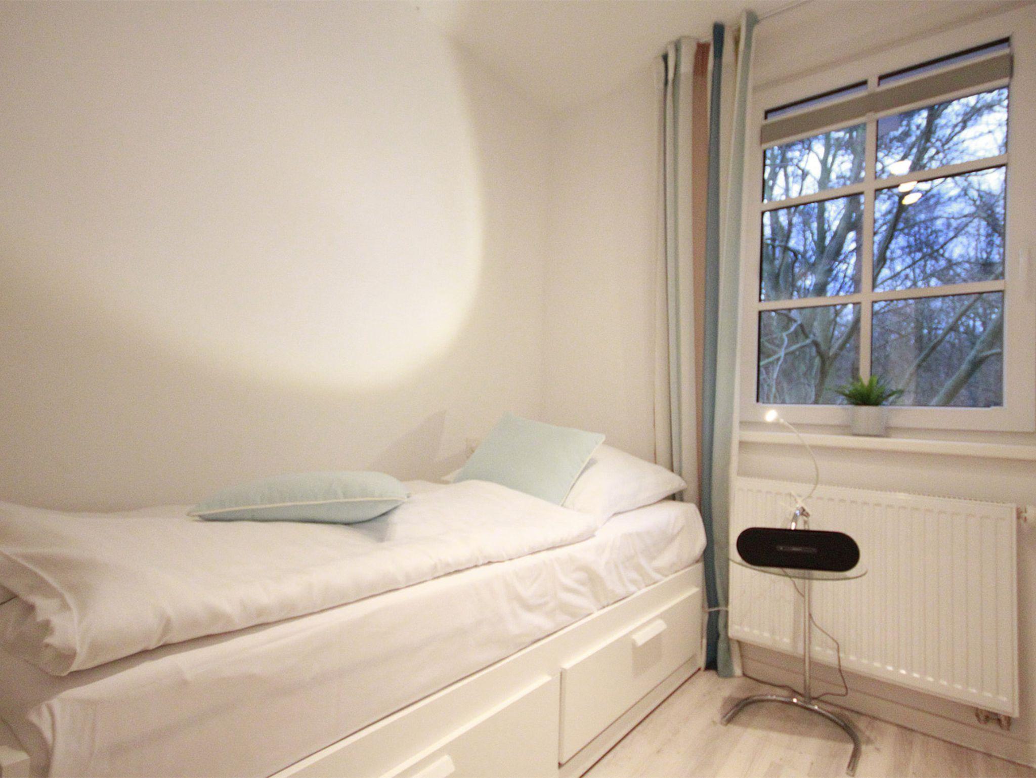 Genießen Sie von der vierten Etage aus die Nähe zum angrenzenden Kiefernwäldchen, und machen Sie es sich mit 2-4 Personen gemütlich in einem Wohn-/Essbereich, der mit TV, Radio, CD- und DVD-Player sowie WLAN ausgestattet ist.
