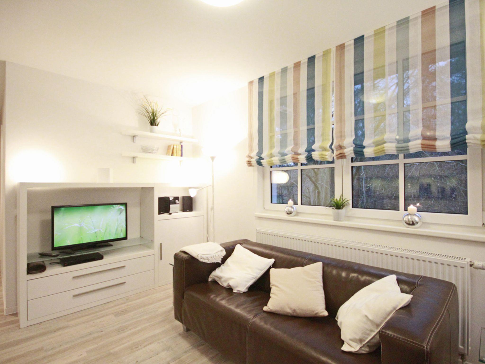 Buchen Sie die Auszeit - eine 3-Zimmerwohnung mit einem von außen nicht einsehbaren Balkon in der Ferienresidenz Haus Meeresblick. Genießen Sie von der vierten Etage aus die Nähe zum angrenzenden Kiefernwäldchen, und machen Sie es sich mit 2-4 Personen gemütlich in einem Wohn-/Essbereich, der mit TV, Radio, CD- und DVD-Player sowie WLAN ausgestattet ist.