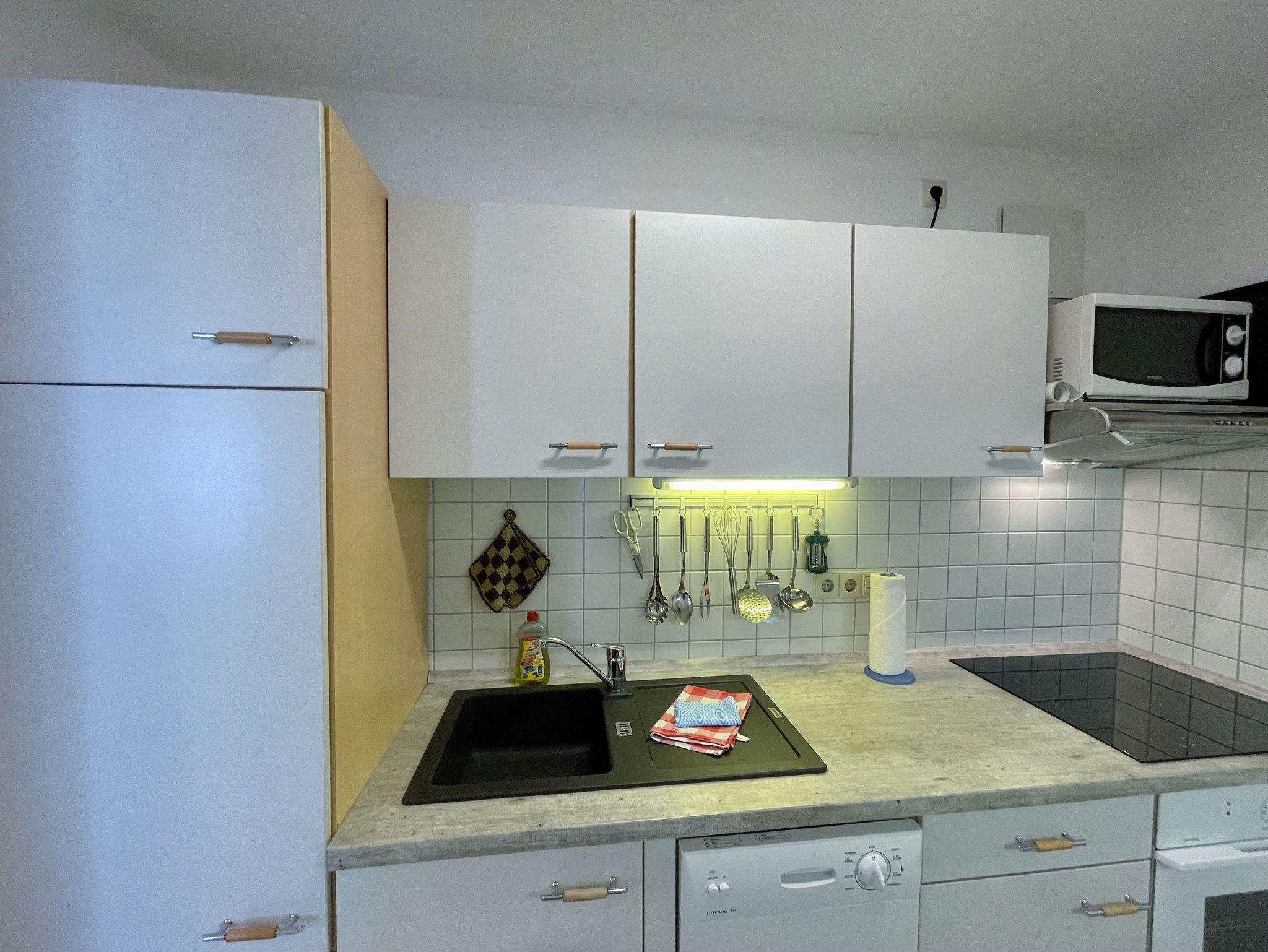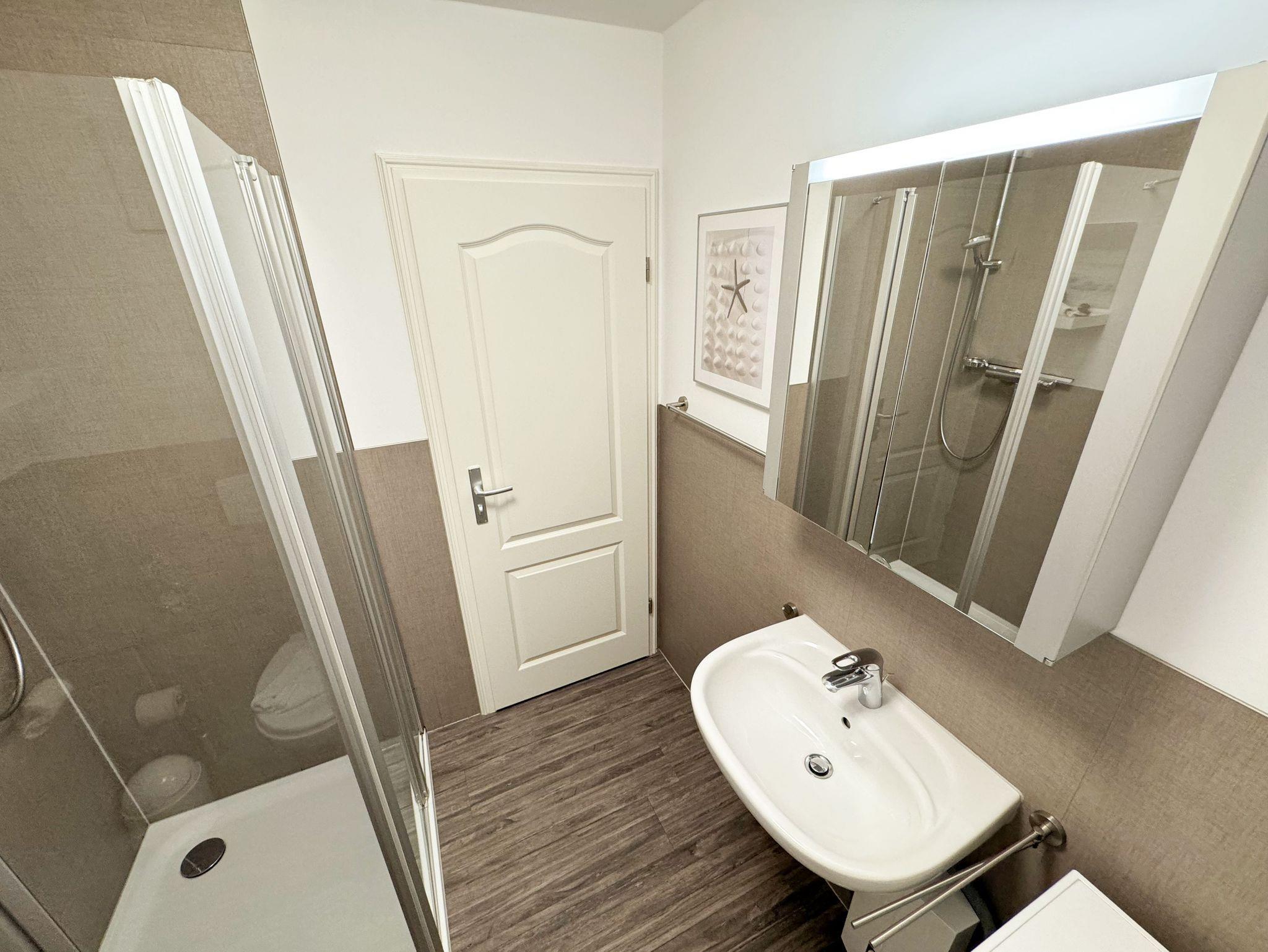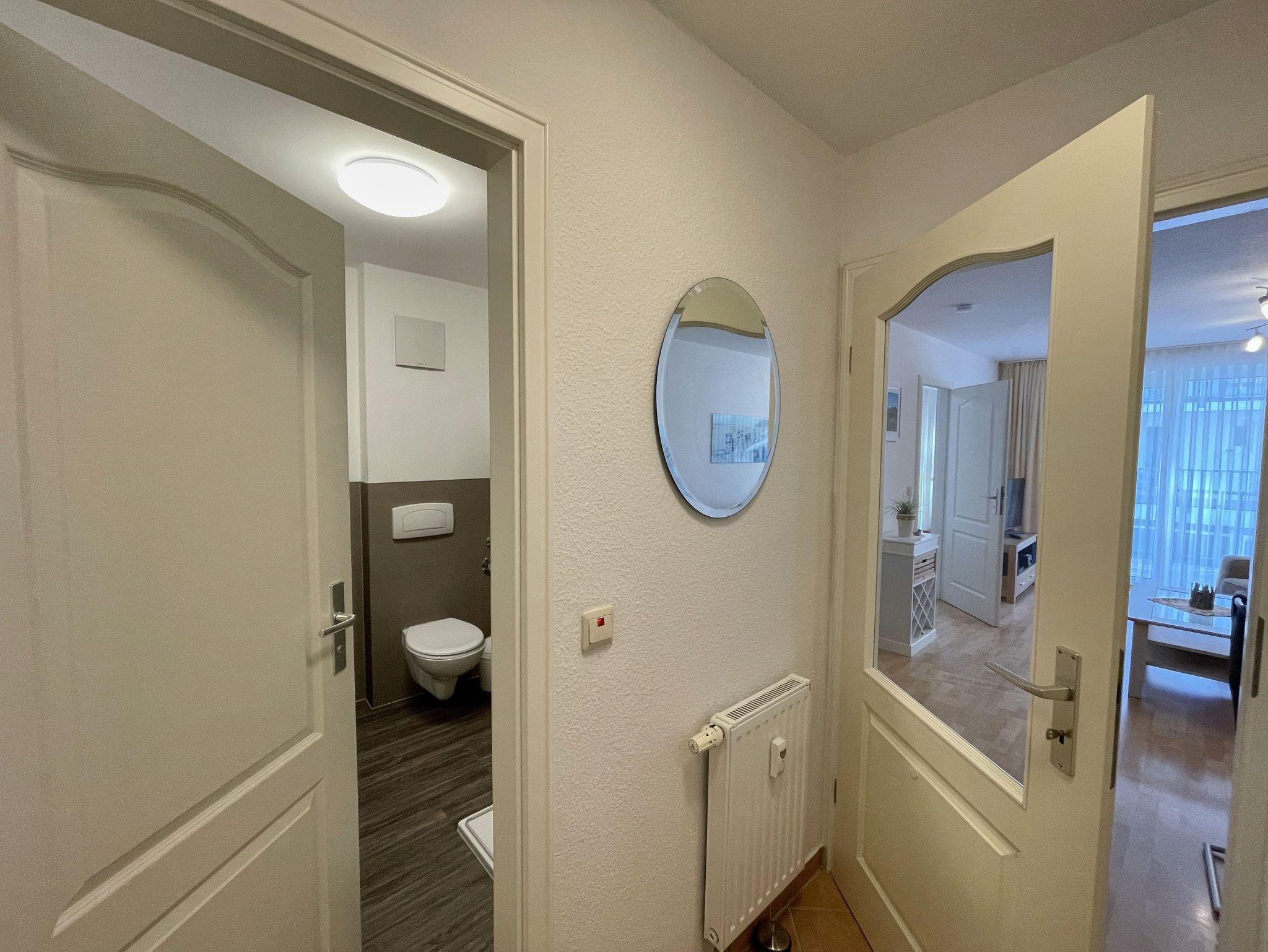 Die ca. 40 qm große Nichtraucherwohnung liegt im ersten Stock und ist bequem mit dem Aufzug zu erreichen, der bis in die Tiefgarage führt. Die Ferienwohnung ist aufgrund ihrer hohen Fenster hell und freundlich und besitzt einen Balkon mit ca. 7qm. Sie wurde modern eingerichtet und ist für maximal 2 Erwachsene ausgelegt. Der Wohnbereich bietet Ihnen eine gemütliche Couch, Couchtisch und kleiner Anrichte. Zu Ihrer Unterhaltung dienen Ihnen ein LCD-Flachbildschirm, ein Blue-Ray-Player sowie ein Radio/CD-Player. Auch eine kleine Auswahl an Büchern, Gesellschaftsspielen und DVD´s sind für Sie vorhanden. Ein kostenloser Internetanschluss via WLAN steht Ihnen zusätzlich zur Verfügung. Die separate Küche, die Sie vom Wohnbereich erreichen verfügt über eine komplett ausgestattet Küchenzeile mit Geschirrspüler, Kühlschrank mit Eisfach, Mikrowelle, Cerankochfeld, Backofen, Wasserkocher, Toaster, Kaffeemaschine, Senseo-Padmaschine sowie viele kleine Küchenhelfer. Der Essplatz befindet sich im Wohnbereich. Das Schlafzimmer ist mit einem Doppelbett (1,80m x 2,00m/Kaltschaummatratzen), verstellbare Lattenroste, Nachttischablagen, Verdunklungsmöglichkeit und einem zweitürigen Kleiderschrank ausgestattet. Der Sanitärbereich wird durch eine Eckdusche, Waschplatz, WC, Fön, Kosmetikspiegel, Handtuchheizkörper und einer Waschmaschine (Nutzung inklusive) abgerundet. Ihren bestuhlten Balkon (Richtung Westen) mit Sonnenschirm erreichen Sie durch den Wohnbereich. Auch ein kleiner Abstellraum gehört zusätzlich zur Wohnung wo Sie Reinigungsutensilien sowie ein Bügelbrett und ein Bügeleisen finden. Ein Tiefgaragenstellplatz (Nr. 6, Einfahrtshöhe 1,90m) gehört zur Wohnung dazu, sowie ein abschließbarer Kellerraum (Nr. 6) wo Sie Ihre geliehenen oder mitgebrachten Fahrräder verschließen können. Haustiere sind nicht erlaubt. Die Erstausstattung eines Wäschepaketes (komplette Bettwäsche, 1 Duschhandtuch, 1 kleines Handtuch) können Sie bis 14 Tage vor Anreise gegen einen Aufpreis dazu buchen oder durch eigene ergänzen. Ab 2 gebuchten Paketen erhalten Sie einmalig 1 Geschirrhandtuch und 1 Duschvorleger hinzu.