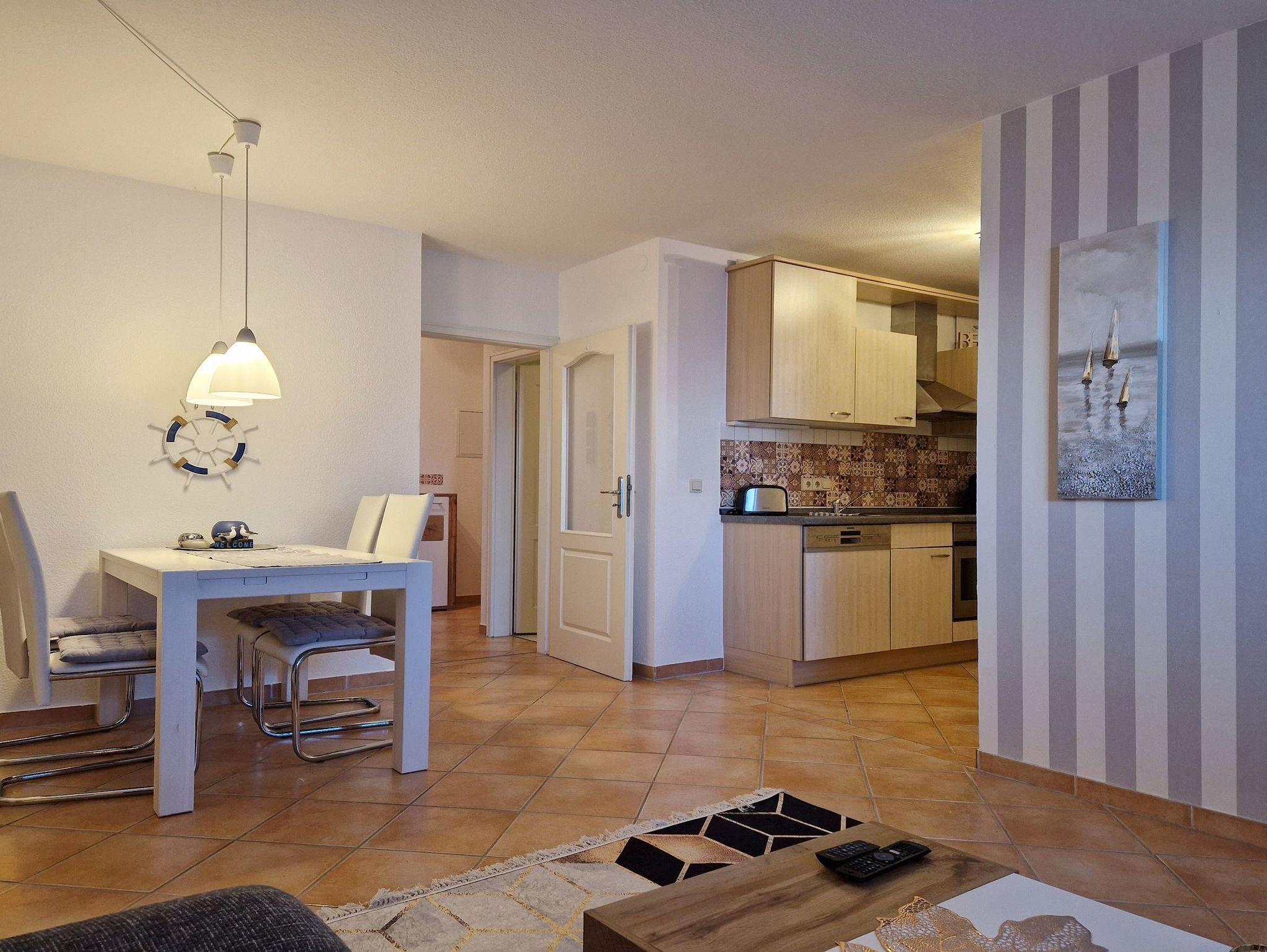 • ALLGEMEINE ECKDATEN: 2-Raum Ferienwohnung für bis zu 4 Gäste, 48m², Terrasse, umzäunter kleiner Garten, Fahrstuhl von der Tiefgarage zur Wohnung, ebenerdig