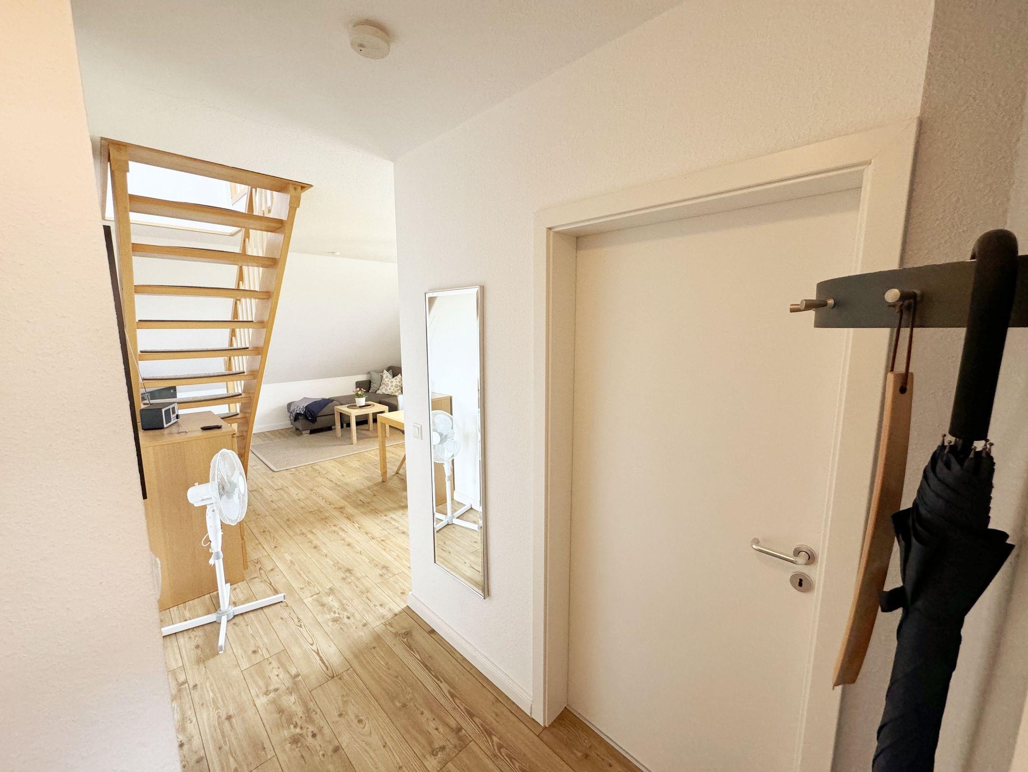 Die Ferienwohnung Fährmann`s Ausblick befindet sich im Obergeschoss des Gästehaus Am Brook. Der Name ist hier auch Programm, denn der Weitblick auf den Hafen von Baabe, Seedorf und zum Greifswalder Bodden ist traumhaft. Die 70 qm Nichtraucher-Maisonette-Wohnung ist modern und hell im skandinavischen Stil eingerichtet und bietet Platz für max. 4 Erwachsene und zwei Kleinkinder bis 3 Jahre im Kinderreisebett. Fotografien der Insel lassen Sie beim Eintreten auf der Insel ankommen. Über einen kleinen Flur mit Garderobe gelangen Sie direkt in den großen Wohn- und Essbereich mit Einbauküche. Die bodentiefen Fenster mit Absturzsicherung und Insektenschutzgittern haben Südausrichtung und sorgen für viel Tageslicht. Der Wohnbereich ist gemütlich gestaltet und lädt zum Entspannen ein. Es verfügt über eine bequeme Eckcouch mit variablem Fußteil, einen Couchtisch, eine Stehlampe und einen Sessel. Hier können Sie es sich gemütlich machen, einen Film auf dem 55-Zoll-Smart-TV genießen oder der Musik aus dem Bluetooth-Radio lauschen. Ein WLAN-Anschluss rundet den technischen Bereich ab. In dem Sideboard finden Sie ausreichend Stauraum für Ihre persönlichen Gegenstände. Zusätzlich befindet sich dort eine Spielesammlung für die ganze Familie sowie eine kleine Auswahl an Büchern. Die Einbauküche beinhaltet alles, was Sie zur Zubereitung Ihrer Mahlzeiten benötigen. Wie ein Induktionsherd, ein Kühlschrank mit Gefrierfach, eine Mikrowelle und ein Geschirrspüler. Darüber hinaus steht Ihnen sowohl eine Filter-Kaffeemaschine als auch eine Nespresso-Kapselmaschine, ein Wasserkocher, ein Toaster, ein Messerblock sowie viele Kochutensilien zur Verfügung. Ein Esstisch rundet den Küchenbereich ab. Von hier aus gelangen Sie über eine Treppe mit Treppenschutz in den oberen Schlafbereich. Hier befindet sich ein Doppelbett (1,80m x 2,00 m) mit Nachttischablagen, verstellbare Lattenroste und Leseleuchten, ein Kleiderschrank sowie Verdunklungsrollo´s und Insektenschutzgitter. Dazu ist ein Kinderbett (160 x 70 cm) vorhanden. Der Raum bietet die Möglichkeit noch ein Kinderbett (optional) zu stellen. Das untere Schlafzimmer der Ferienwohnung verfügt über ein komfortables Doppelbett (1,60m x 2,00m), Wand-Nachttischlampen, Insektenschutzgitter sowie ein Kleiderschrank. Die bodentiefen Fenster sind mit Verdunklungsvorhängen ausgestattet, um Ihnen einen erholsamen Schlaf zu ermöglichen. Das kompakte Tageslicht-Bad ist funktional gestaltet und verfügt über eine Eck-Dusche, ein Fön, ein WC, ein Insektenschutzgitter und ein Waschplatz. Eine Ablage bietet Platz für Kosmetikutensilien und ein beleuchteter Spiegel sorgt für die richtige Ausleuchtung. Ebenso finden Sie in Ihrer Wohnung ein Wäscheständer, Reinigungsutensilien und ein Standventilator vor. Wenn es Sie nach draußen zieht, so steht Ihnen ein 2500 qm großer Gemeinschaftsgarten zur Verfügung, der zum Verweilen einlädt. Dort finden Sie Strandkörbe Sitzgelegenheiten sowie einen Grillplatz, den Sie gemeinsam mit anderen Gästen nutzen können. Ein Haustier ist gegen eine Gebühr ein gern gesehener Gast. Ihre mitgebrachten oder geliehenen Fahrräder können Sie auf dem Grundstück abstellen. Ein PKW-Stellplatz befindet sich direkt am Haus. Die Erstausstattung eines Wäschepaketes (komplette Bettwäsche, 1 Duschhandtuch, 2 kleine Handtücher) können Sie bis 14 Tage vor Anreise gegen einen Aufpreis dazu buchen oder durch eigene ergänzen. Ab 2 gebuchten Paketen erhalten Sie einmalig 1 Geschirrhandtuch und 1 Duschvorleger hinzu.