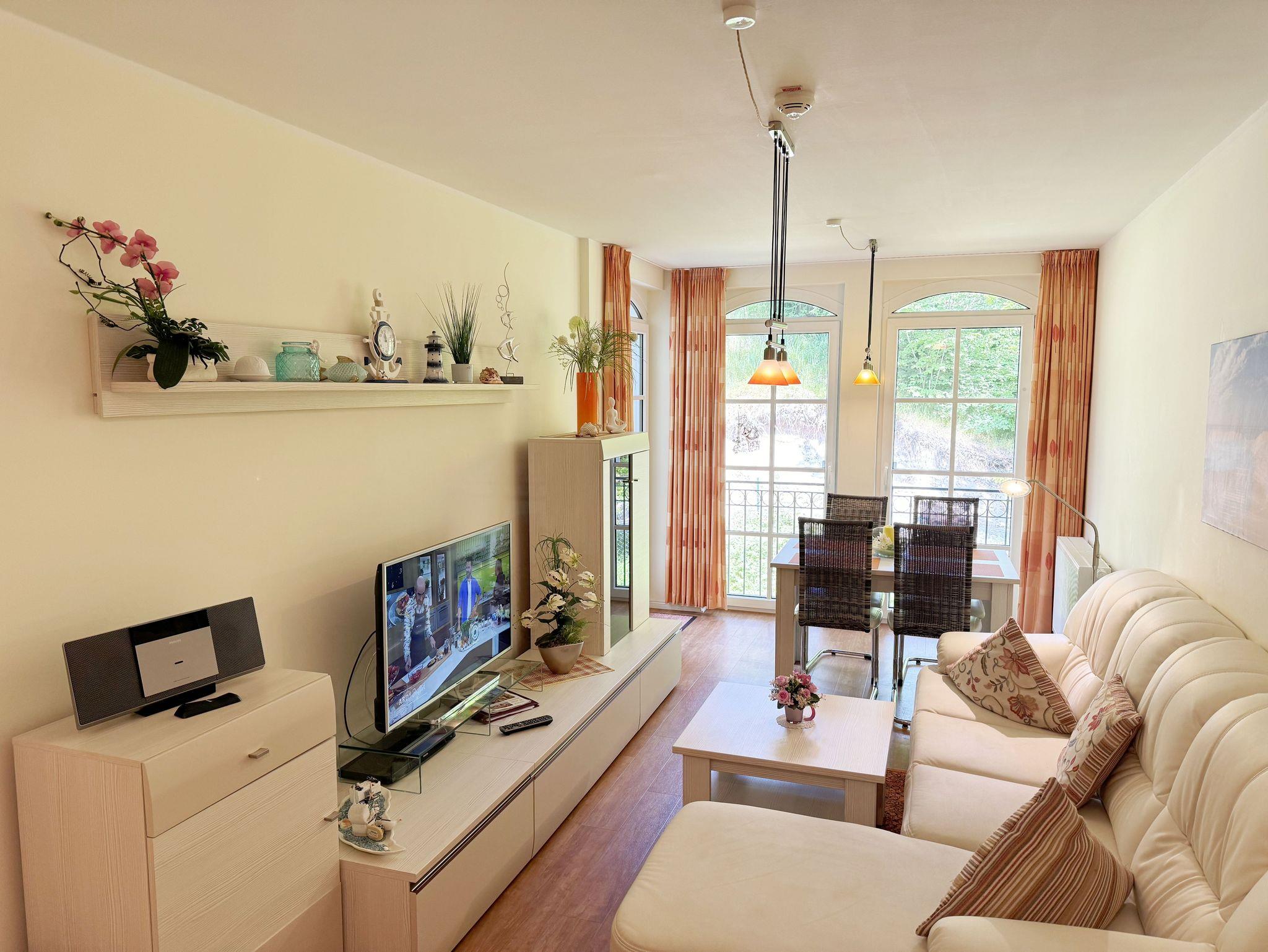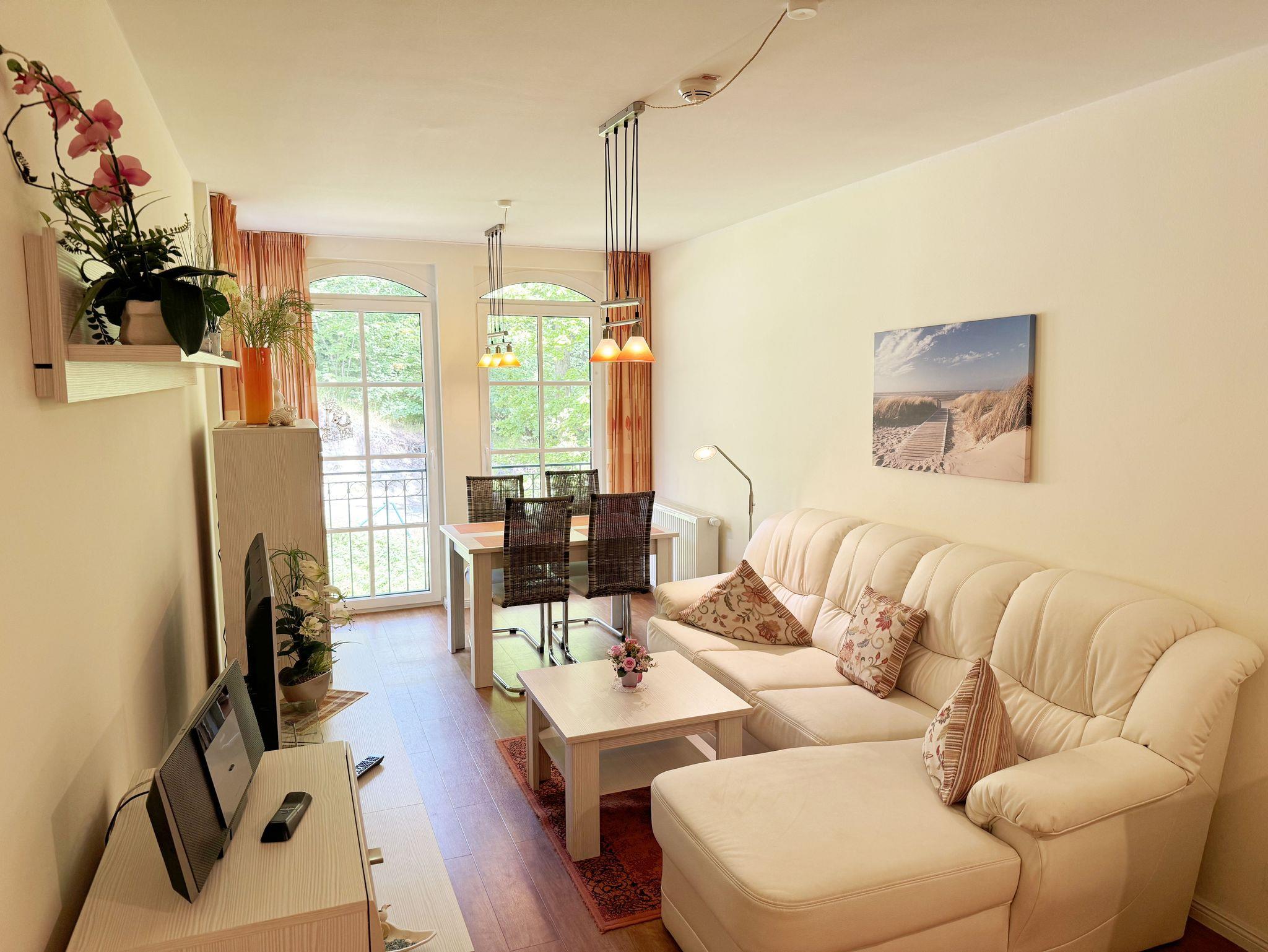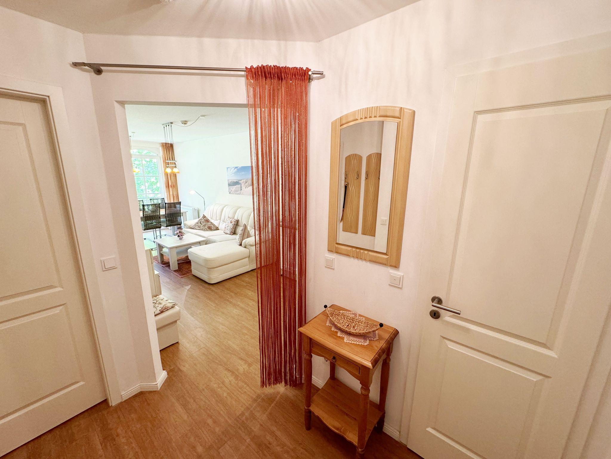 Herzlich Willkommen im Haus Meeresblick im Ostseebad Baabe. In dieser neu errichteten Anlage in bester Lage und schöner ruhiger Umgebung, werden Sie bestimmt unvergessliche Urlaubstage verbringen. Ihre Ferienwohnung liegt nur 80m vom schönen Sandstrand entfernt, inmitten des Kurparkes. Die Wohnungen Strandoase und Strandperle liegen in Nord-Westrichtung und durch die Strandkiefern hindurch hat man vom Balkon aus teilweise Meerblick. Ein Pool und ein Wellnessbereich im Haus mit Sauna (inklusive) laden ein. Kleine Geschäfte, Service- sowie Gastronomiereinrichtungen befinden sich in unmittelbarer Nähe. Zu jeder Ferienwohnung gehört ein eigener nummerierter Tiefgaragenstellplatz, von dem Sie bequem mit dem Fahrstuhl in die erste Etage gelangen. Damit Sie sich bei Ihrem Aufenthalt wohlfühlen, haben wir versucht mit der Einrichtung eine angenehme Atmosphäre zu schaffen.