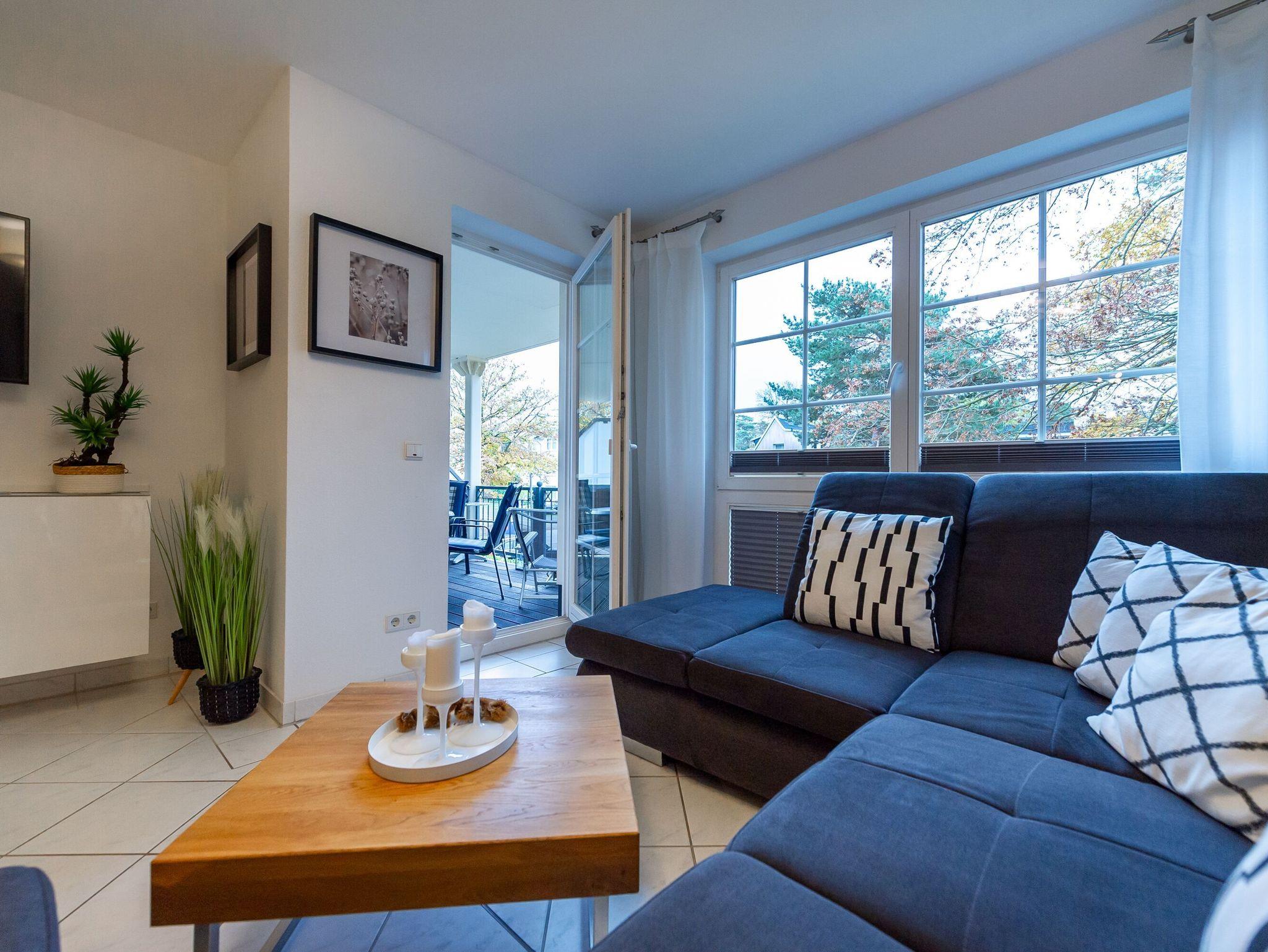 Der möblierte Balkon ist vom Wohn- und Schlafzimmer aus zu betreten. Hier können Sie in der gesunden Ostseeluft frühstücken, einfach die Seele baumeln und den Tag Revue passieren lassen.
