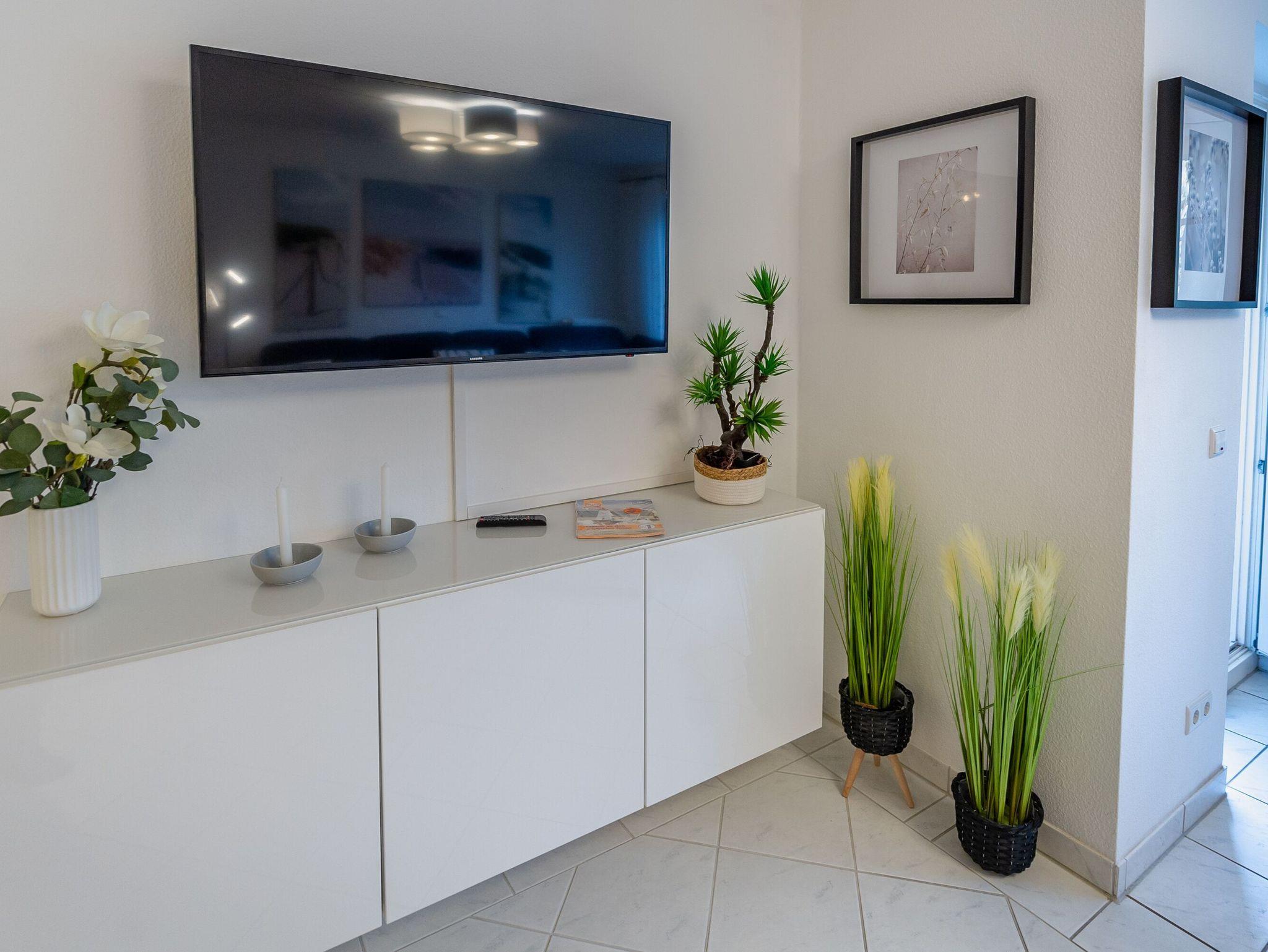 Im Schlafzimmer verspricht ein komfortables Boxspring-Doppelbett (1,80 x 2,00 m) süße Träume. Der Jahreszeit angepasste Sommer- bzw. Winterbetten sowie Verdunkelungsmöglichkeiten an den Fenstern sind selbstverständlich vorhanden. Der geräumige Kleiderschrank bietet Platz für Ihre Urlaubsgarderobe. Ein zweites Fernsehgerät und ein Internetradio sorgen für willkommene Abwechslung.