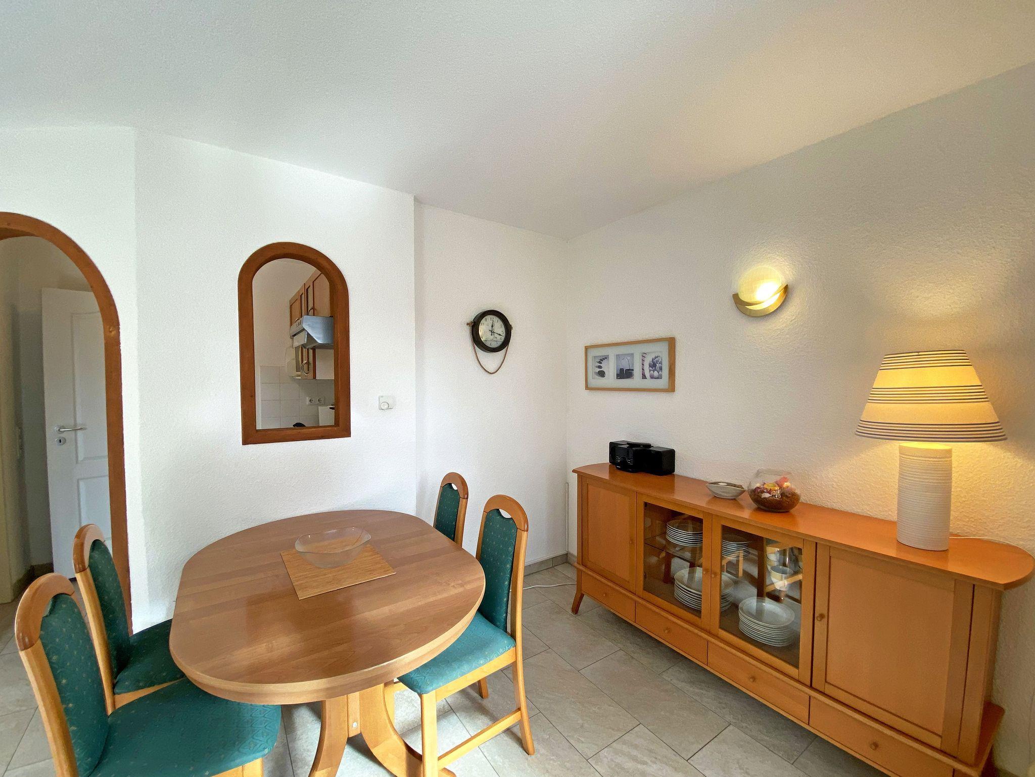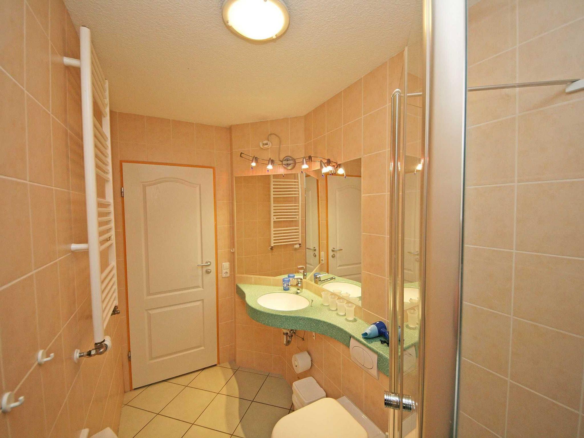 Herzlich Willkommen in Haus Rügenwind! Die 55qm große komfortable und voll ausgestattete 3-Zimmer Ferienwohnung in ruhiger Lage (Nichtraucher, 3 Erwachsene, 1 Kind bis 17 J.) befindet sich im Erdgeschoss mit einem im Bäderstil gestalteten überdachten Terrassenbereich (Südseite) sowie umliegender Grünfläche. Gartentisch, Gartenstühle sowie 2 Sonnenliegen vervollständigen Ihren Außenbereich. Grillen auf Ihrer Terrasse ist gestattet. Büsche und ein Sichtschutz zur Nachbarwohnung wahren Ihre Privatsphäre. Die Wohnung ist in allen Räumen mit Fußbodenheizung ausgestattet. Der Wohnbereich ist im Rügener Stil mit einer gemütlichen Couch, Korbsessel, Tisch, Sideboard sowie LCD-SatTV in HD Qualität und CD-Player mit Radio ausgestattet. Ihr Essbereich mit großem Tisch und vier Stühlen befindet sich direkt zwischen Terrasse und dem offenen, aber separaten Kochbereich, der mit 4 Kochplatten, Kühlschrank mit ***Gefrierteil, Geschirrspüler, Backofen, Mikrowelle, Kaffeemaschine, Toaster, Wasserkocher, usw. voll ausgestattet ist. Das große Schlafzimmer verfügt über ein Doppelbett (2x90x200cm x 200cm) in angenehmer Liegehöhe mit hochwertigen Matratzen in Hotel-Qualität und je einem eigenen Nachttisch mit Lampe. Der 2m breite Kleiderschrank (Spiegeltüren) bietet ausreichend Platz für Ihre gesamte Kleidung. Das Fenster kann abgedunkelt werden. Das zweite Schlafzimmer ohne Kleiderschrank ist mit zwei Einzelbetten über Eck ausgestattet (je 80x200 cm), wovon eins erhöht eingebaut ist (98 cm hoch). Leselampen, 2 Hocker und ein Schubladenelement und ebenfalls ein zuverlässig verdunkelndes Rollo runden die Einrichtung ab. Das Tageslicht-Badezimmer ist mit einer Glas-Dusche, Toilette, Fön, Handtuchhalter-Heizung und einem großen Waschtisch mit reichlich Ablageflächen ausgestattet. Der große eingelassene Spiegel bietet Platz für 2 Personen. Durch die massive Bauweise mit Kalksandstein bietet Haus Rügenwind zu jeder Jahreszeit ein angenehmes Raumklima und zusätzlich den idealen Schallschutz zwischen den Wohnungen. Zusätzlicher Service ist WLAN, welches Sie während des gesamten Aufenthaltes komplett kostenfrei nutzen dürfen. In einem Gemeinschaftsraum finden Sie zusätzlich eine Waschmaschine (Münzgeräte) (in den Monaten: November bis Ende März nicht im Betrieb). Für eine Kleinkind-Aufbettung (inklusive) stehen ein Kinderreisebett (mit Matratze, ohne Bett Inlett) sowie ein Hochstuhl für Sie bereit. Direkt am Haus befindet sich Ihr Parkplatz Nr. 1 (inklusive). Für Ihre Fahrräder gibt es direkt hinter dem Haus ebenfalls einen geeigneten Stellplatz. Haustiere sind gegen eine Gebühr willkommen, dürfen jedoch nicht die Schlafräume betreten. Die Erstausstattung eines Wäschepaketes (komplette Bettwäsche, 1 Duschhandtuch, 2 kleine Handtücher) können Sie bis 14 Tage vor Anreise gegen einen Aufpreis dazu buchen oder durch eigene ergänzen. Ab 2 gebuchten Paketen erhalten Sie einmalig 1 Geschirrhandtuch und 1 Duschvorleger hinzu. Wir freuen uns auf Ihren Besuch!